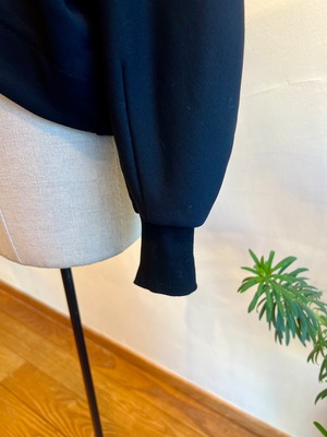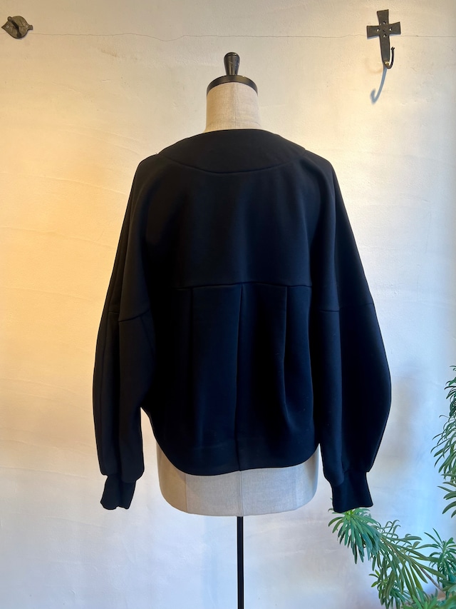 暖かく肌触りの良い裏起毛のジャージを使用したショート丈ボレロジャケット。軽やかな着心地と保温性を兼ね備えた素材で、季節の変わり目にも活躍します。丸みのある立体的な袖が特徴で、着るだけで自然とこなれた雰囲気を演出。後ろ身頃のタックデザインがシルエットにメリハリを持たせ、軽いカーディガン感覚でデイリーに着られる1枚です。
