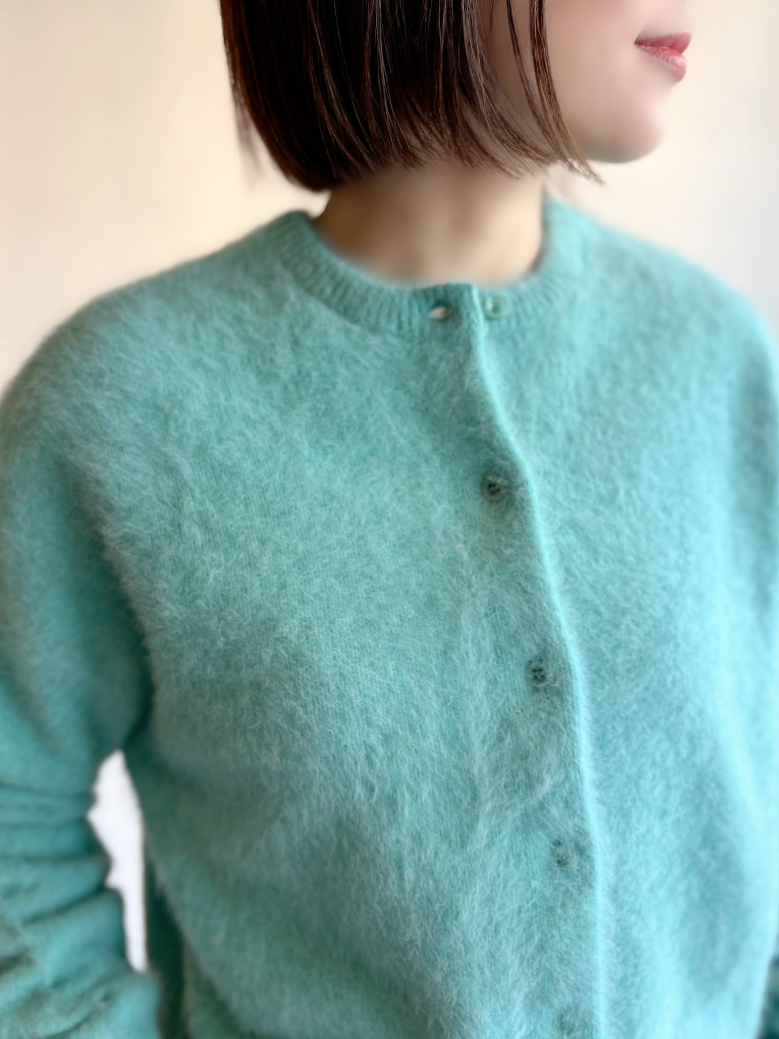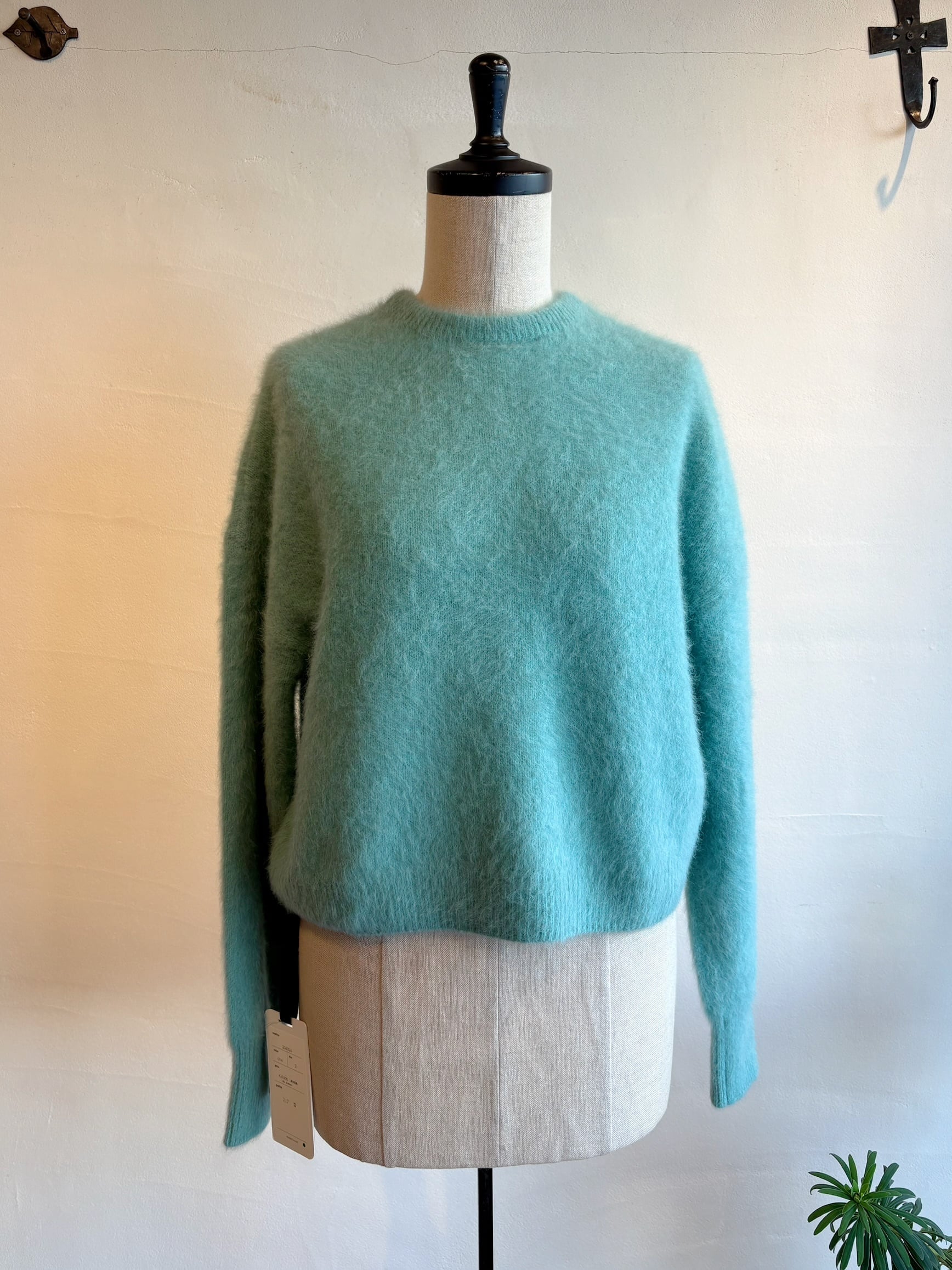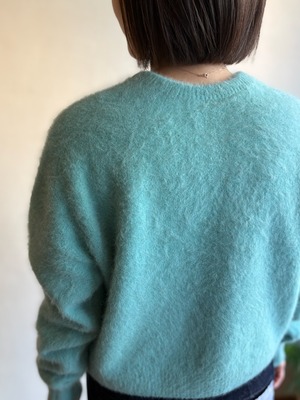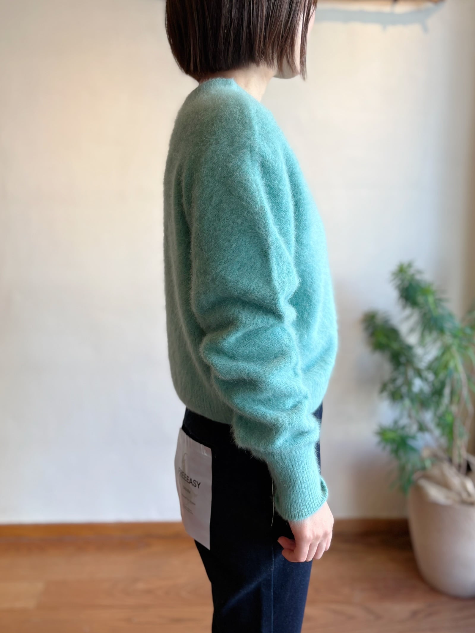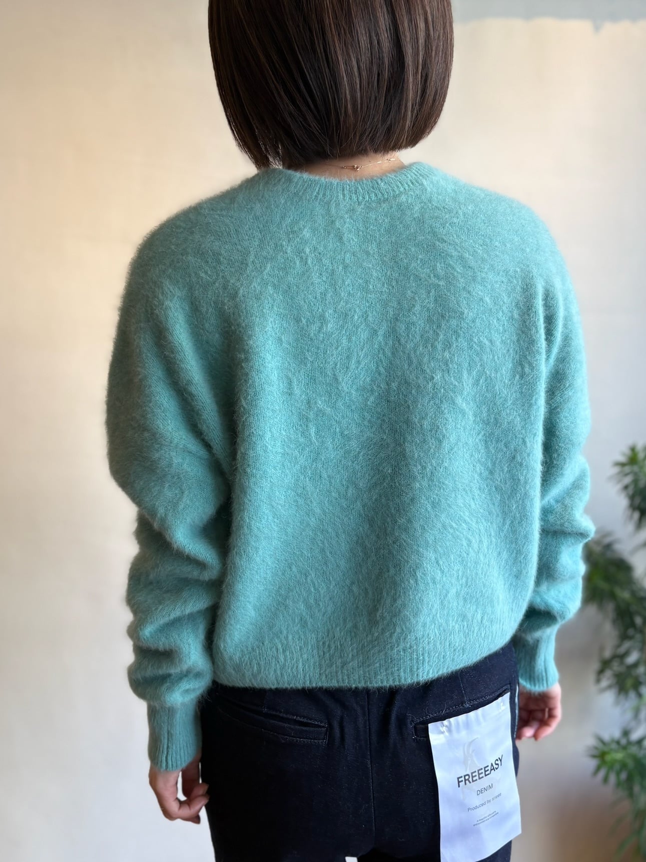 FOXを贅沢に使ったクルーネックプルオーバー。シルキーで滑らかな長めの毛足を持ち合わせた、高級素材のFOXを使用。保湿性と耐久性に優れており、形が崩れにくく、素肌に触れてもチクチクしにくい肌触りが特徴です。縮絨にもかなり拘り、ふんわりと毛のふいた軽い仕上がりに。他の獣毛に比べ、淡色でも毛が痩せることなくしっかりと毛がふいた性質があるのもFOXの最大の魅力です。しっかりと厚みがありながらも、糸の軽さでふんわりと柔らかく、他にないボリューム感が贅沢な高級感のある一着です。カーディガンとしてもプルオーバーとしても着用できる前後2way仕様。コンパクトめの丈感に、少しゆとりを持たせた袖の絶妙なバランスは、様々なボトムスに合わせやすいようシルエットに拘った一枚