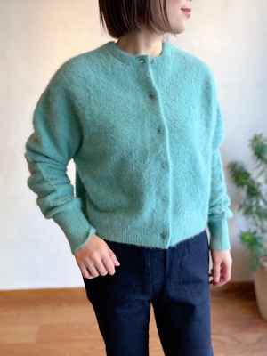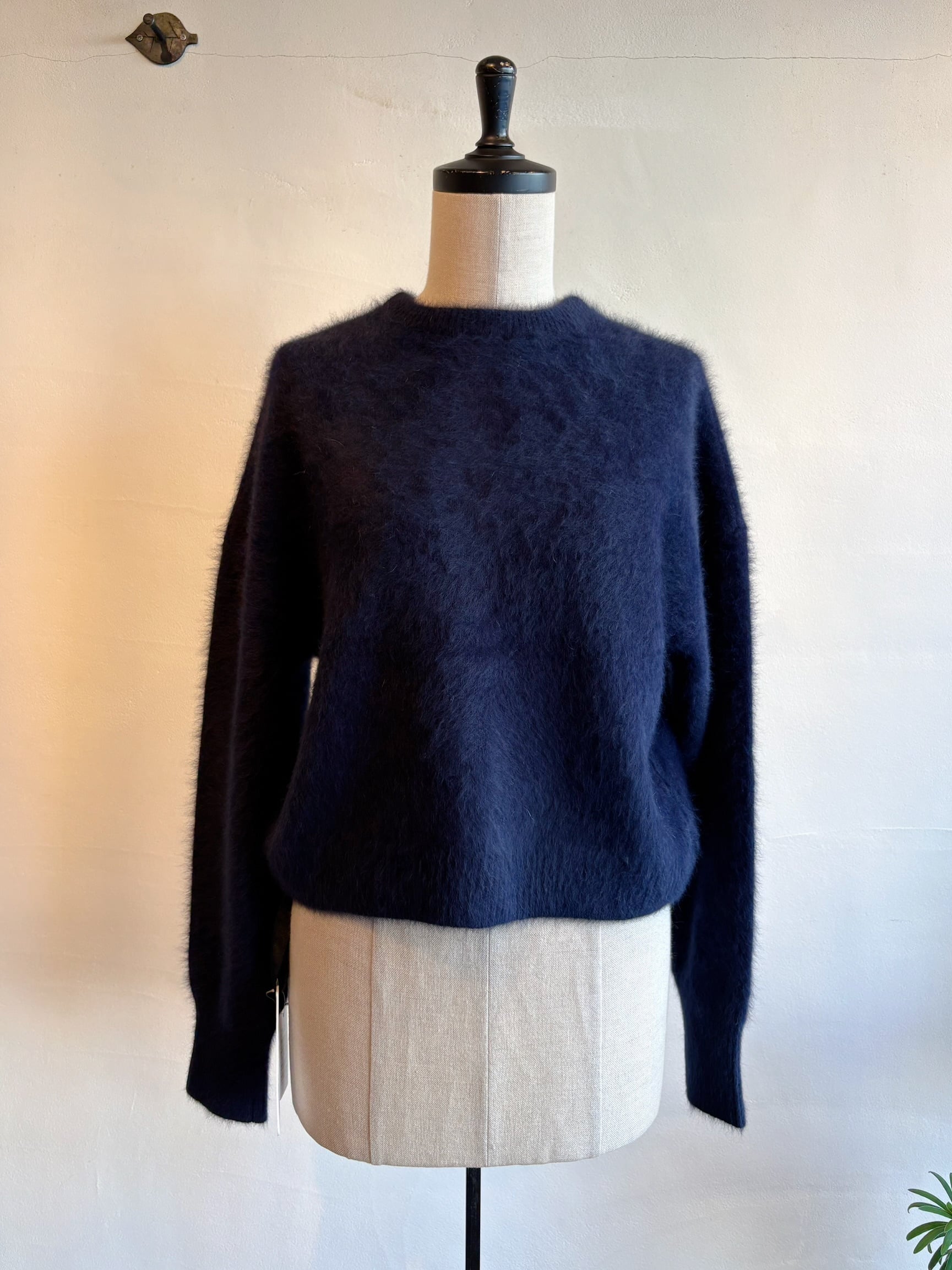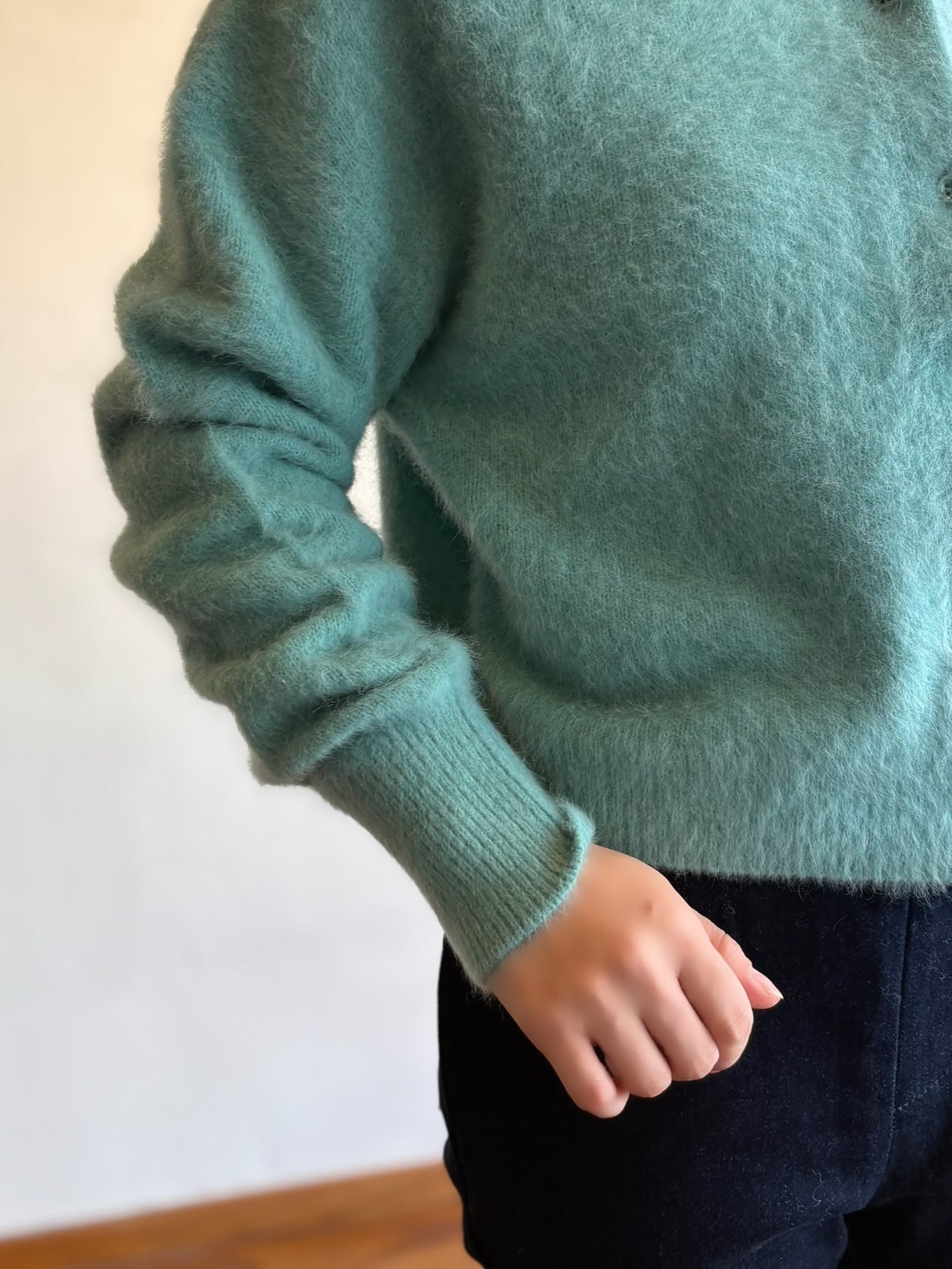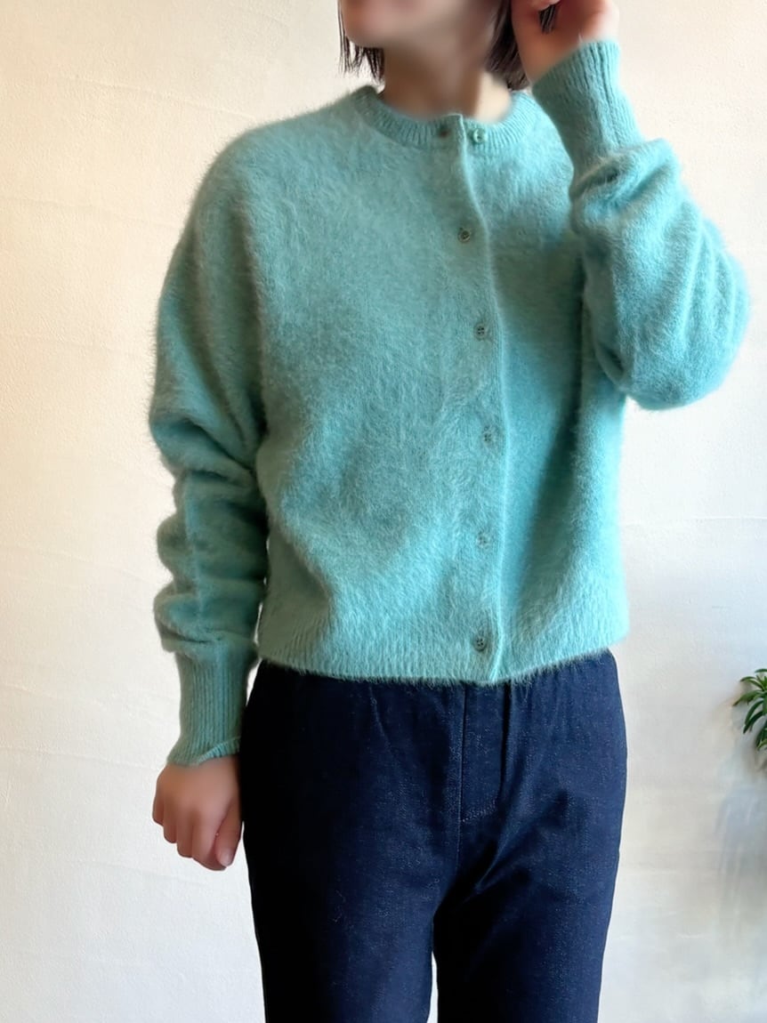 FOXを贅沢に使ったクルーネックプルオーバー。シルキーで滑らかな長めの毛足を持ち合わせた、高級素材のFOXを使用。保湿性と耐久性に優れており、形が崩れにくく、素肌に触れてもチクチクしにくい肌触りが特徴です。縮絨にもかなり拘り、ふんわりと毛のふいた軽い仕上がりに。他の獣毛に比べ、淡色でも毛が痩せることなくしっかりと毛がふいた性質があるのもFOXの最大の魅力です。しっかりと厚みがありながらも、糸の軽さでふんわりと柔らかく、他にないボリューム感が贅沢な高級感のある一着です。カーディガンとしてもプルオーバーとしても着用できる前後2way仕様。コンパクトめの丈感に、少しゆとりを持たせた袖の絶妙なバランスは、様々なボトムスに合わせやすいようシルエットに拘った一枚