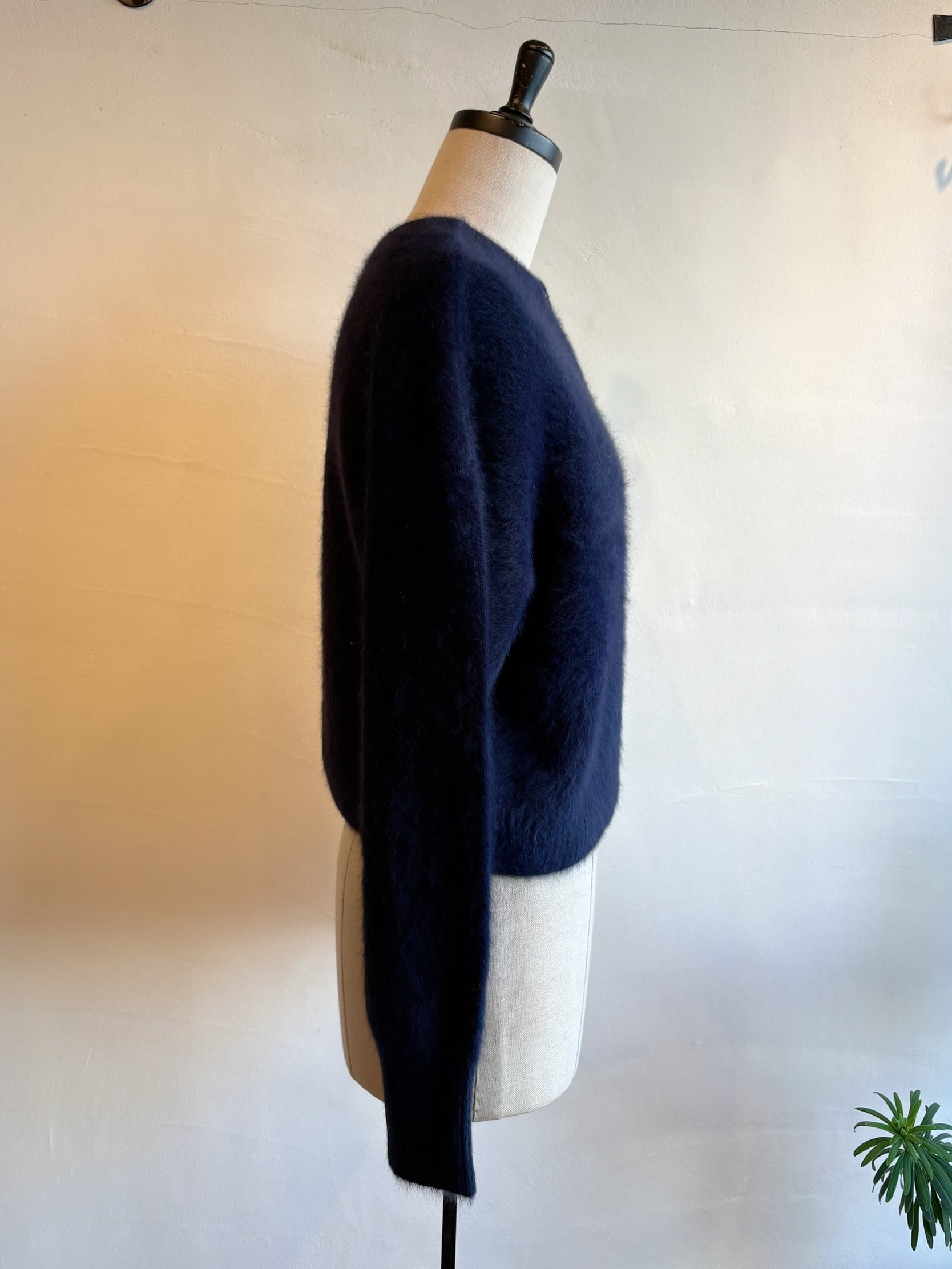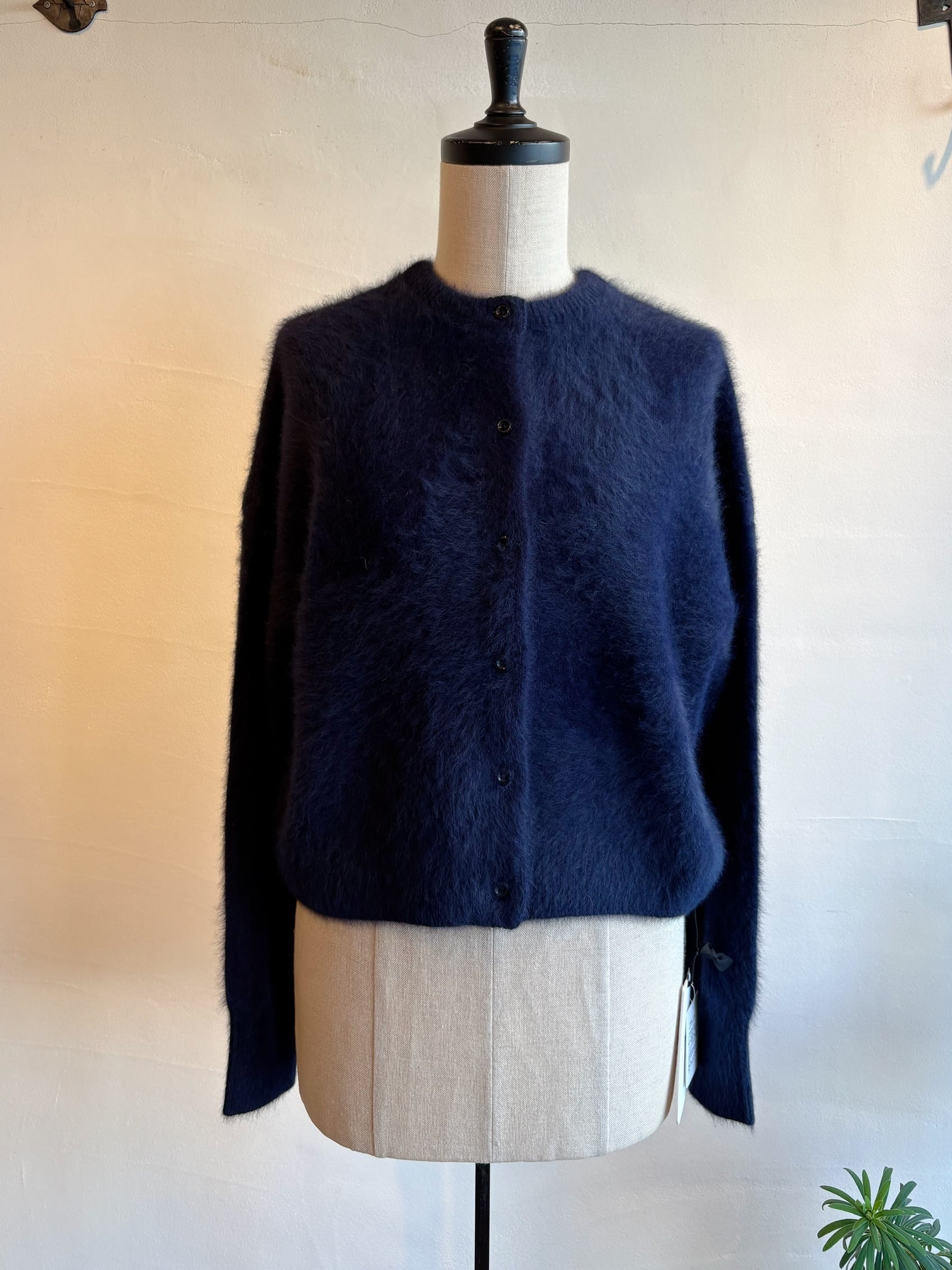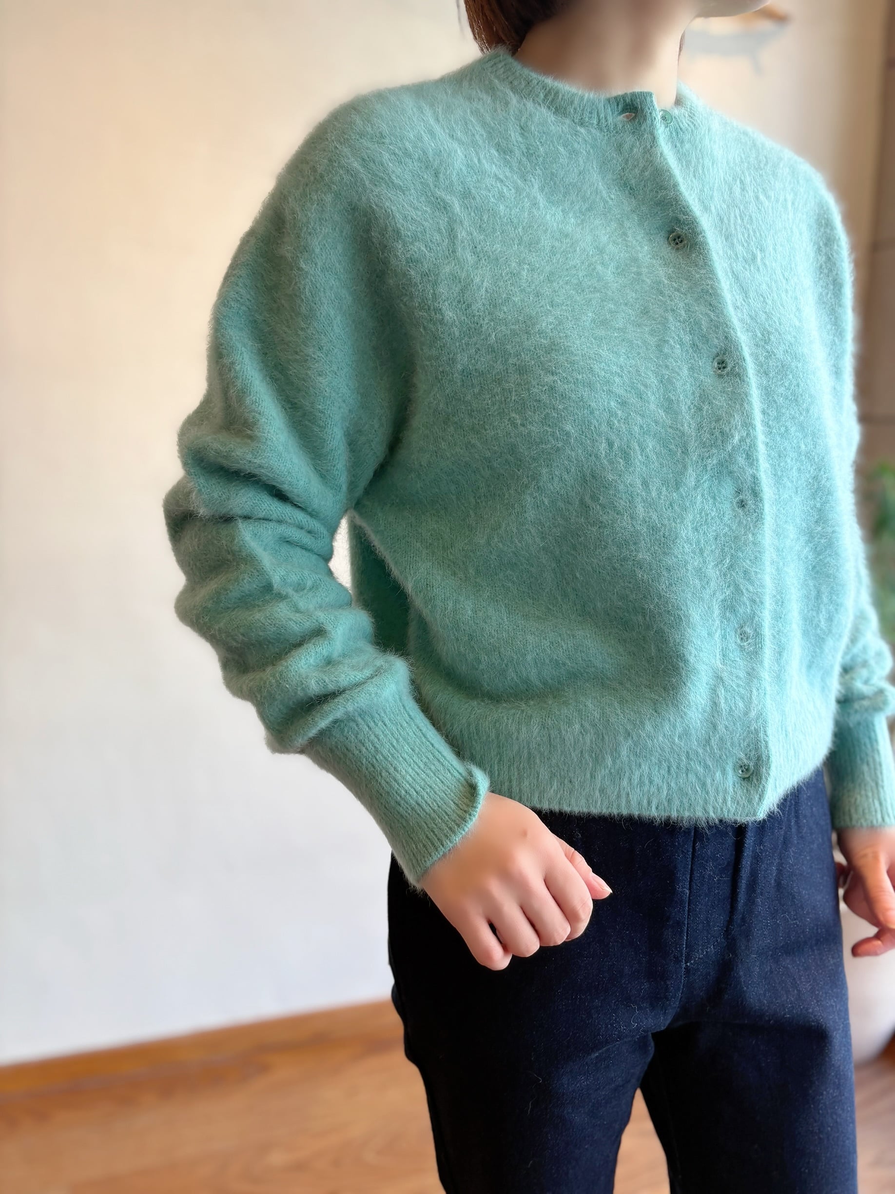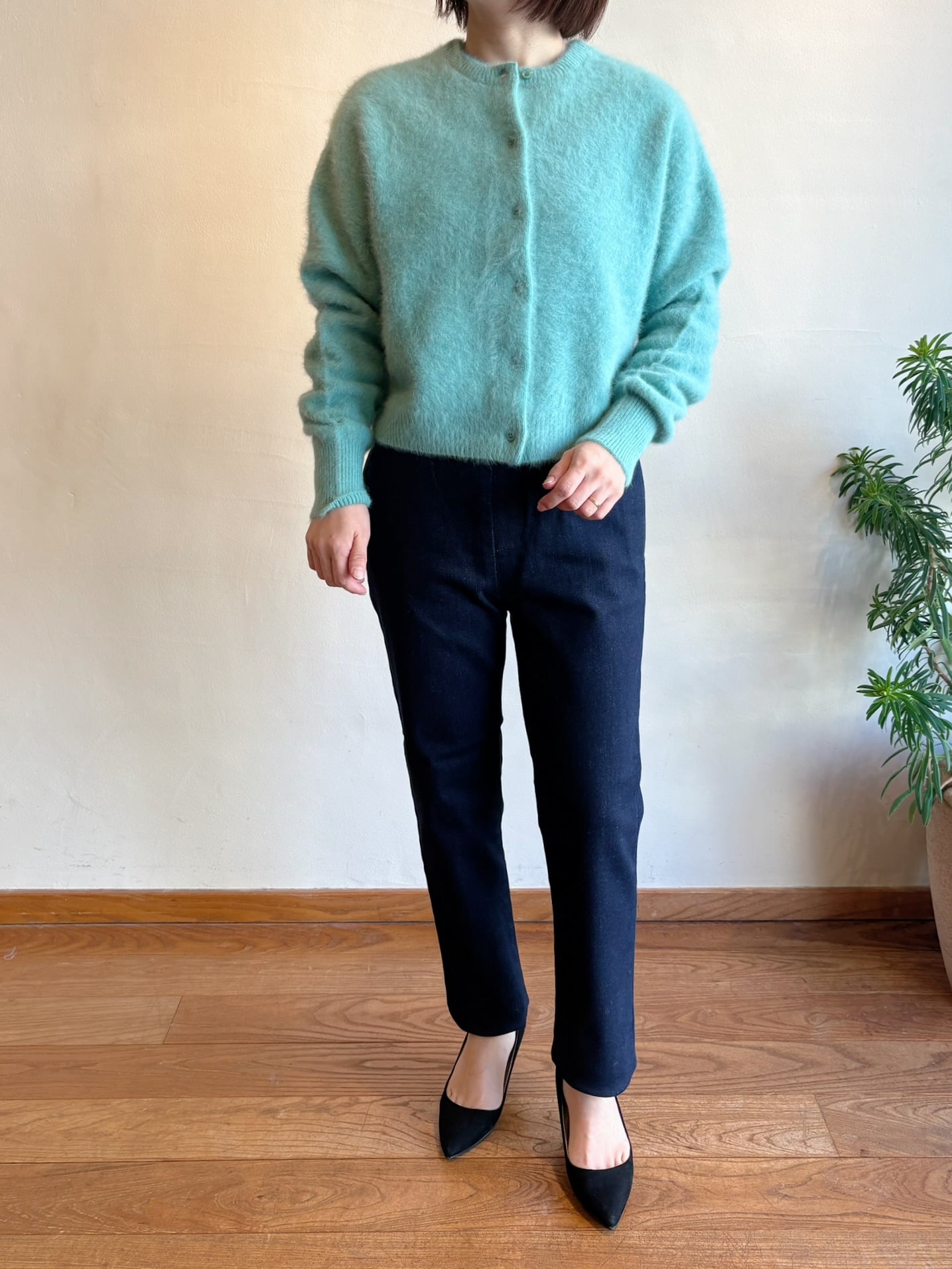 FOXを贅沢に使ったクルーネックプルオーバー。シルキーで滑らかな長めの毛足を持ち合わせた、高級素材のFOXを使用。保湿性と耐久性に優れており、形が崩れにくく、素肌に触れてもチクチクしにくい肌触りが特徴です。縮絨にもかなり拘り、ふんわりと毛のふいた軽い仕上がりに。他の獣毛に比べ、淡色でも毛が痩せることなくしっかりと毛がふいた性質があるのもFOXの最大の魅力です。しっかりと厚みがありながらも、糸の軽さでふんわりと柔らかく、他にないボリューム感が贅沢な高級感のある一着です。カーディガンとしてもプルオーバーとしても着用できる前後2way仕様。コンパクトめの丈感に、少しゆとりを持たせた袖の絶妙なバランスは、様々なボトムスに合わせやすいようシルエットに拘った一枚