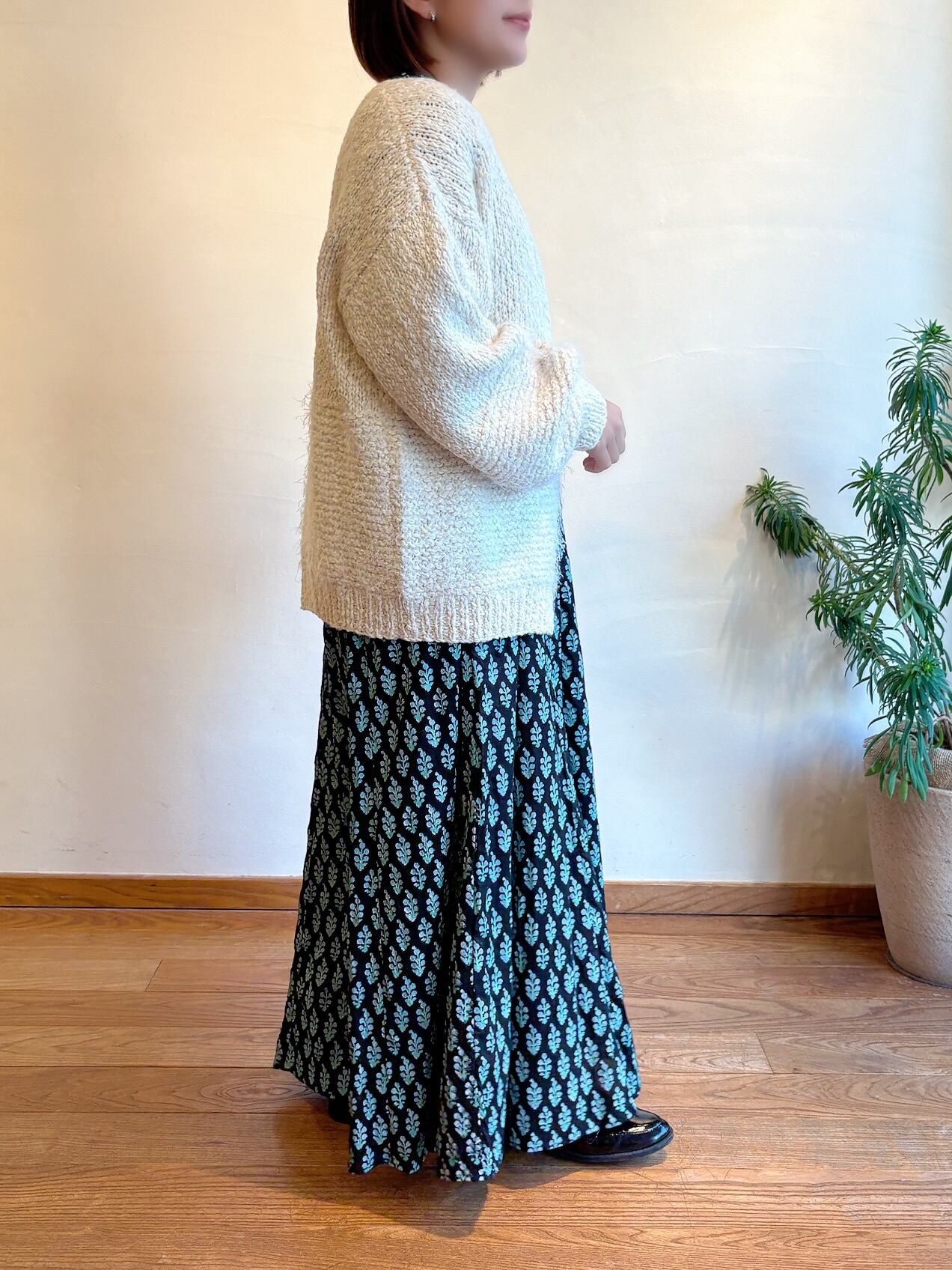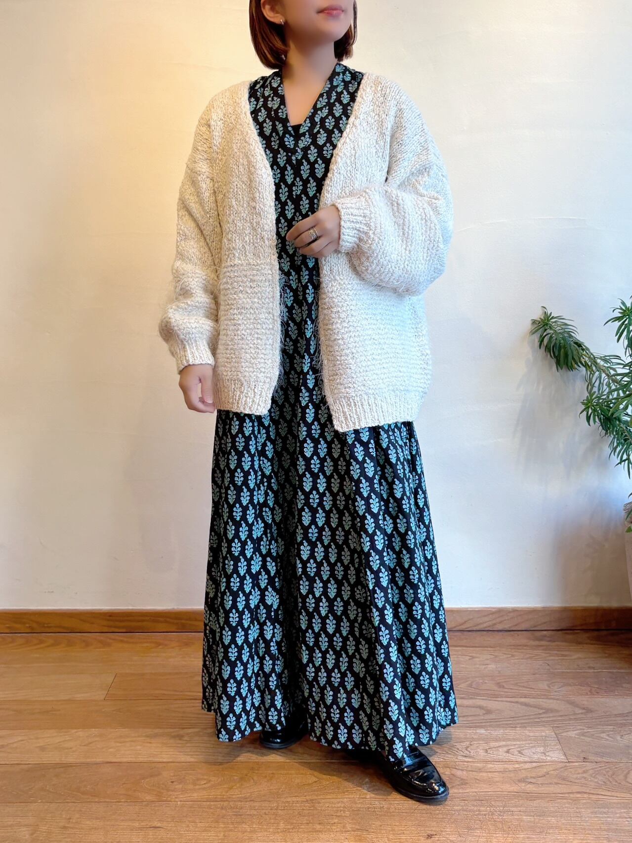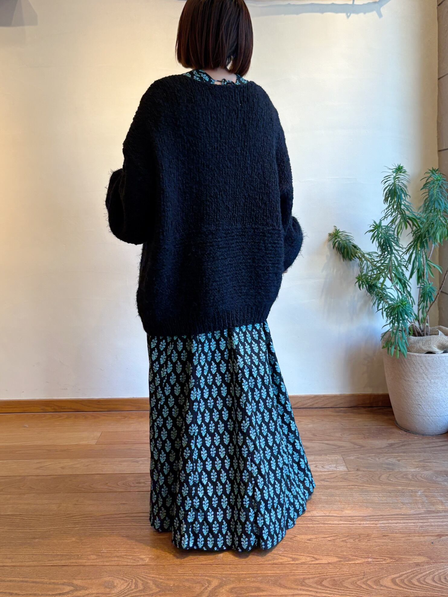 SOLD OUT 表情豊かなコットンビッグスラブとウールを撚糸し、ADAWASオリジナルの糸を開発。ガーター部分にはヘアリーなロングフェザーをあしらい、見た目にも豊かな表情をプラスしました。一つひとつ丁寧に編み上げられた手編みニットは、温もりと特別感を感じさせる仕上がり。シンプルながらも存在感のあるデザインで、日常のスタイルに上質なアクセントを添える一枚です。