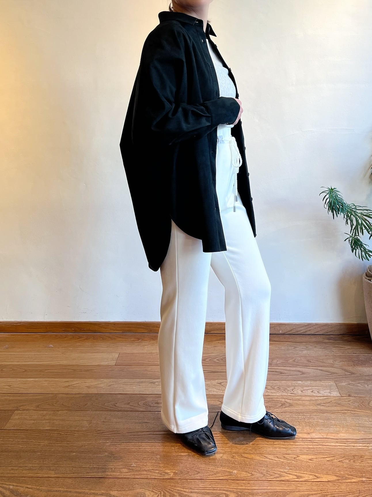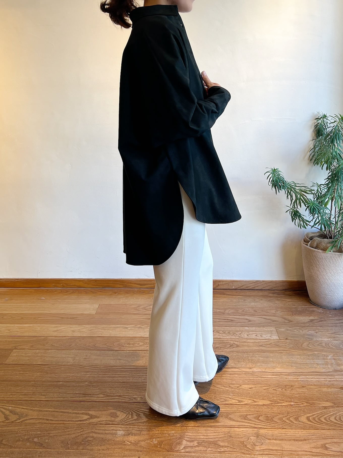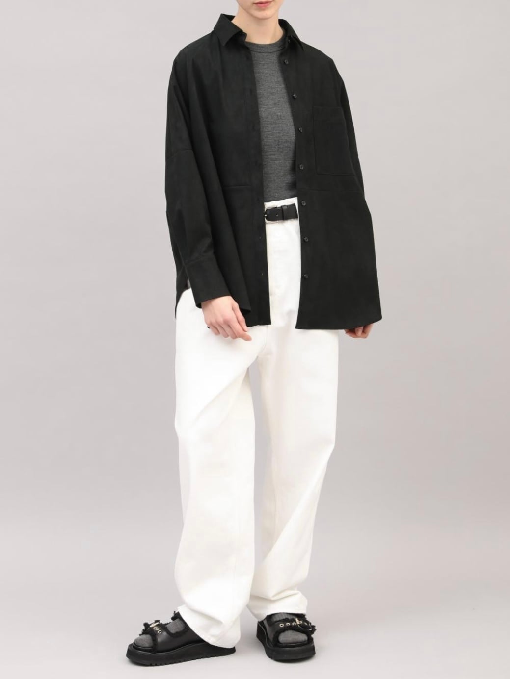 天然皮革に非常に近いタッチと滑らかな肌触りが特徴の高級人工皮革を使用したエコスエードレザーシャツ。肩をぐっと落としたドロップショルダーとドルマンスリーブシルエットがポイント。シックな色合いのニュアンスカラーも魅力です。シャツとしてはもちろん、シャツジャケットとして幅広いスタイリングに羽織りとしても活躍する、シーズンムード高まる一着です。