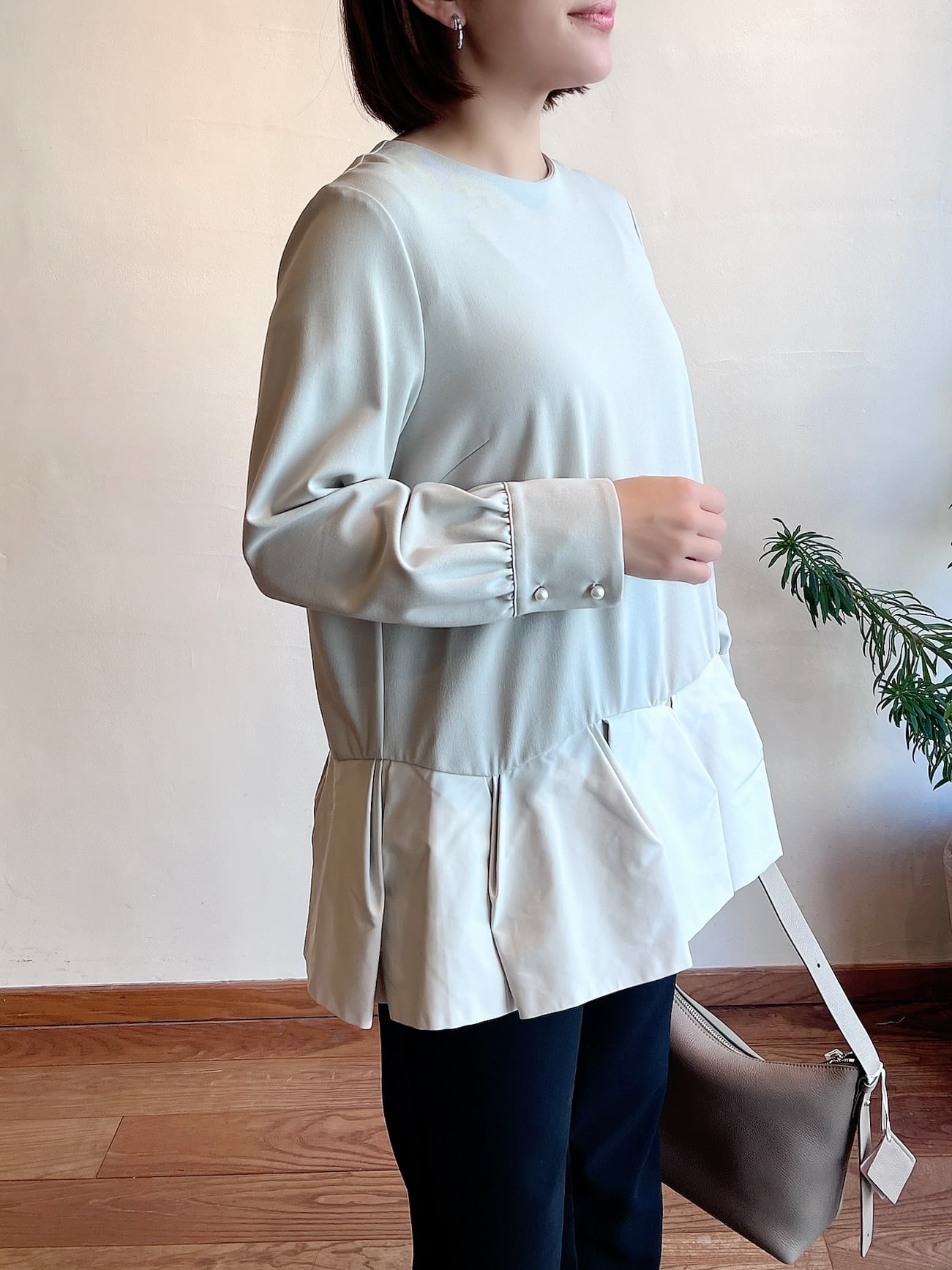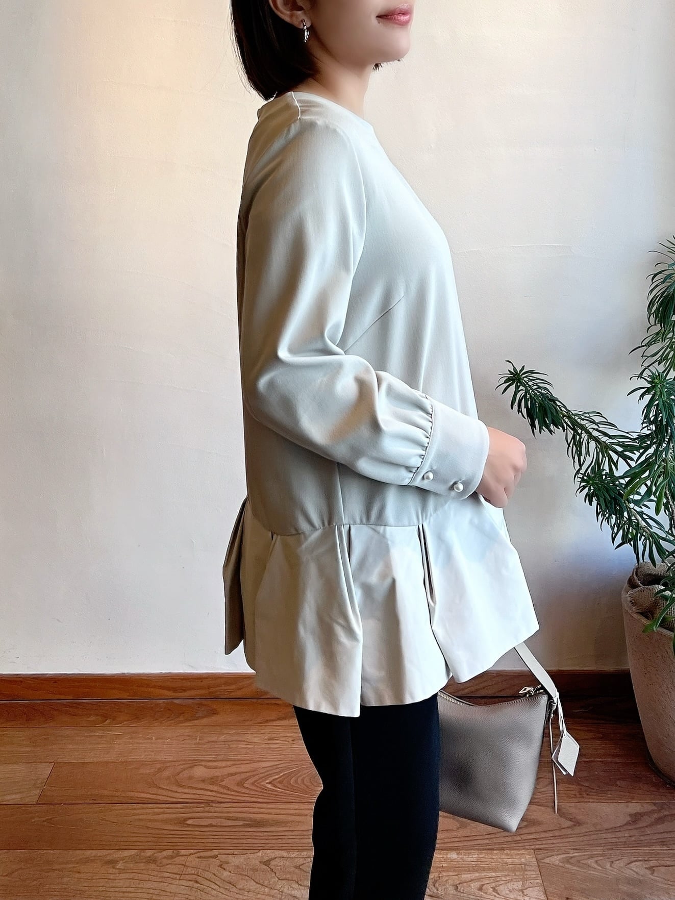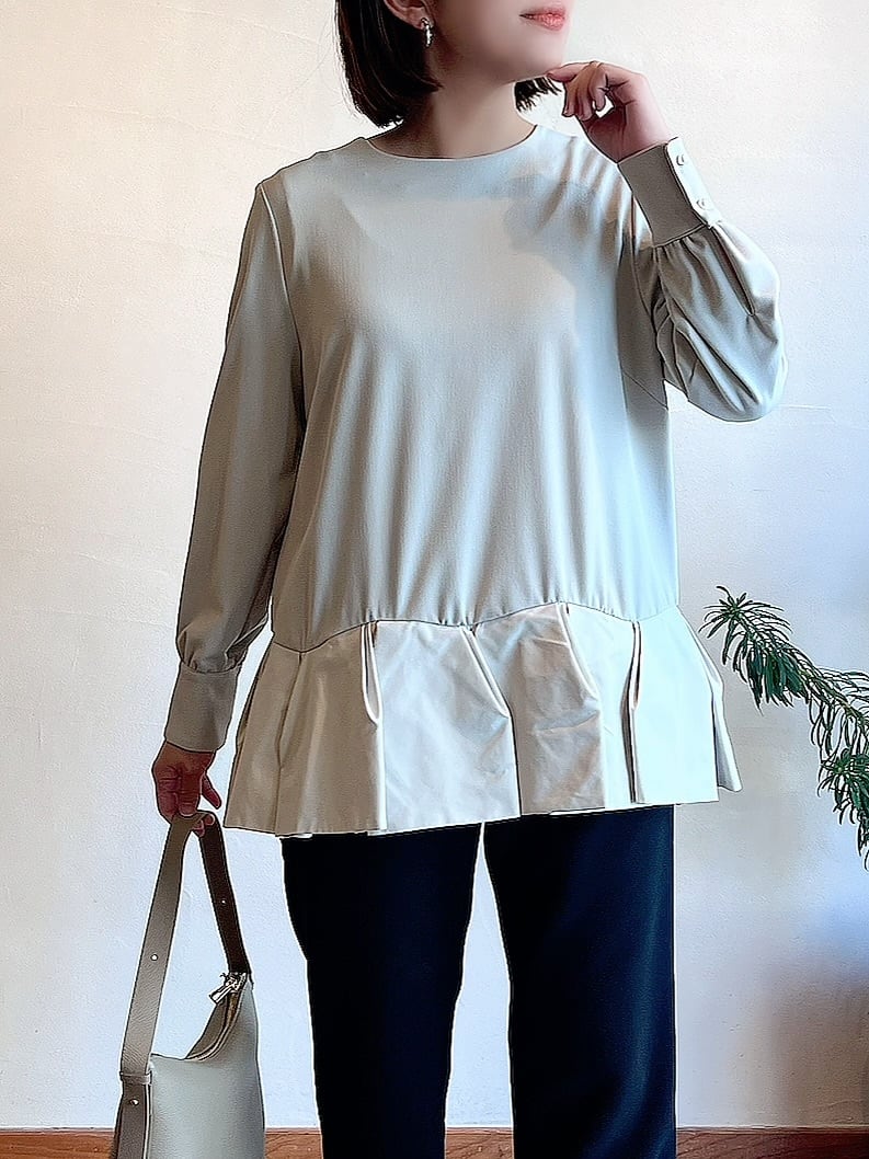 1枚で華やかさがあふれる、SONOのデザイントップス。ウエーブ状に切り替えて立体的なフォルムをつくったギャザーペプラムが特徴で、ミドルヒップまでをカバーできる丈感もポイントです。ボトムを選ばない丈感なので、同色でセットアップはもちろん、配色でのコーディネートもおすすめです。微起毛のしっとりとした肌ざわりが特徴の生地もポイントです。ストレッチ性やに優れており、ご自宅でお洗濯も可能です。