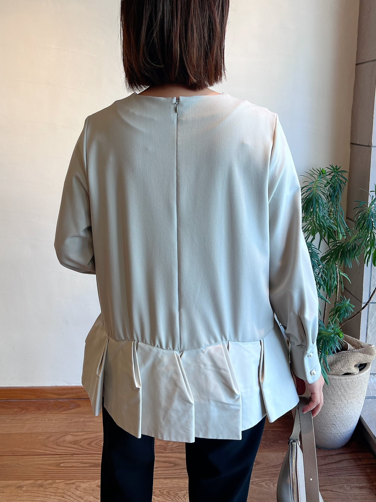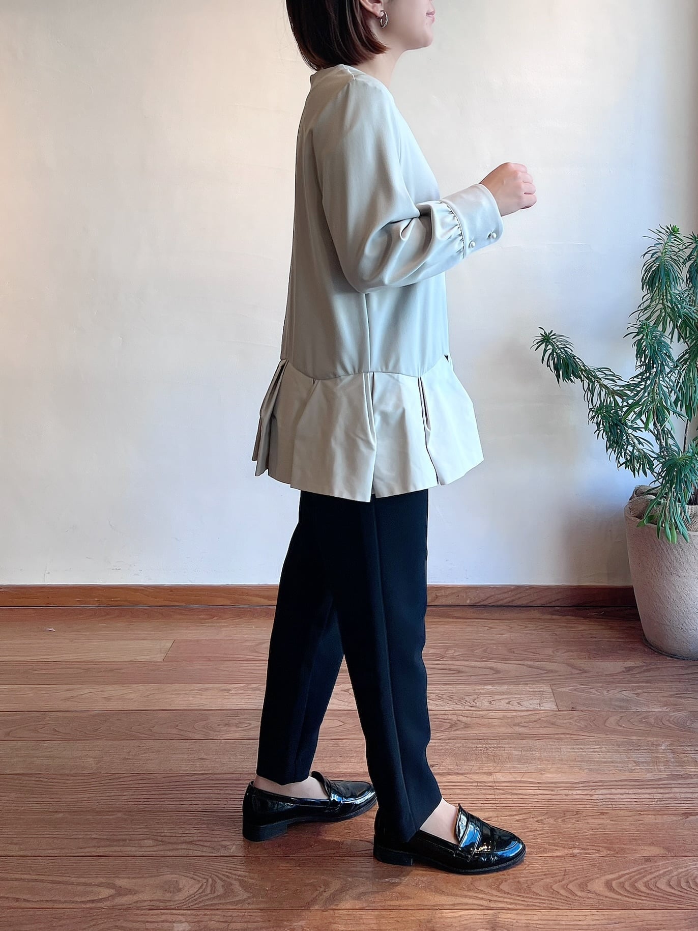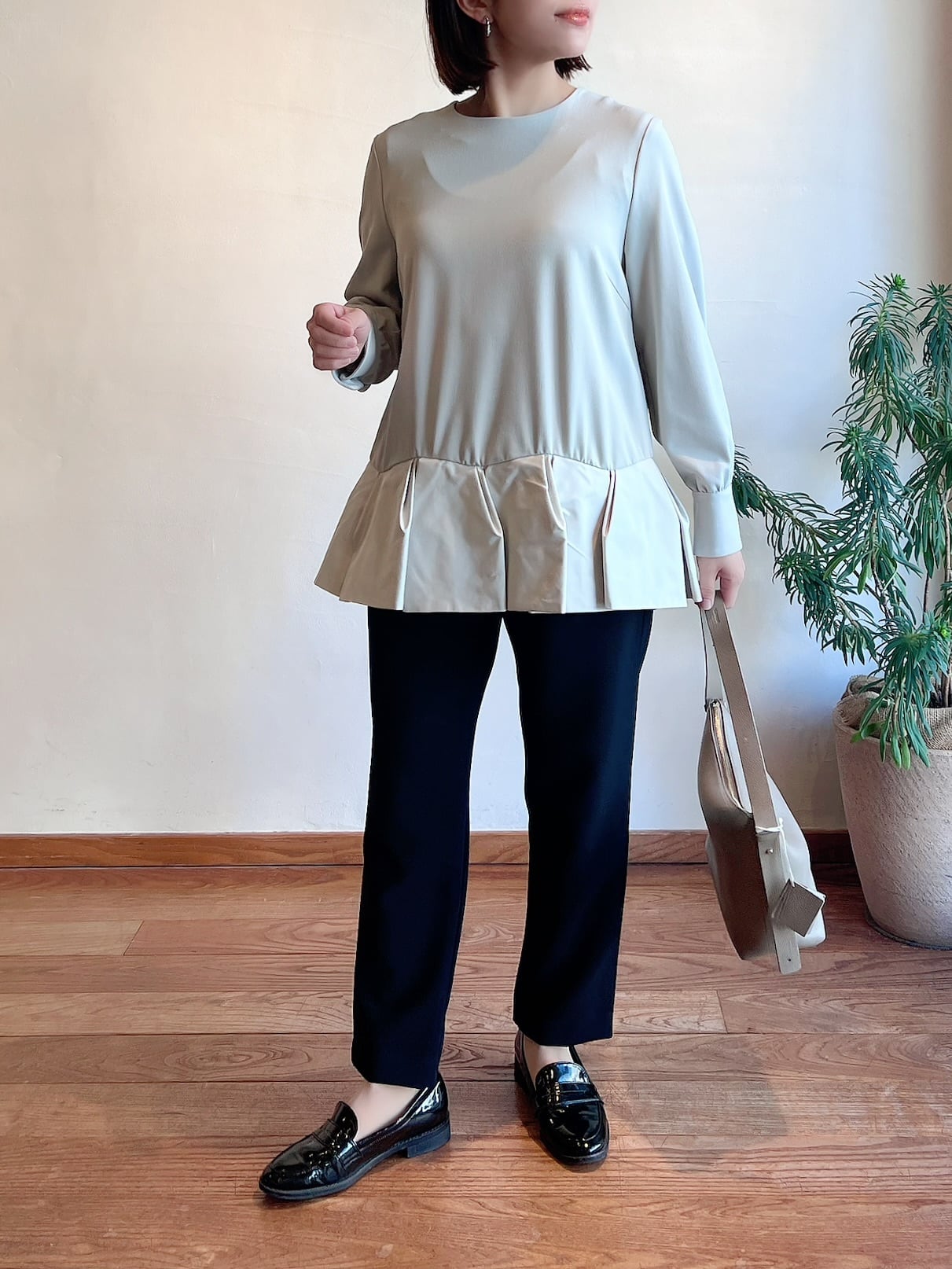 1枚で華やかさがあふれる、SONOのデザイントップス。ウエーブ状に切り替えて立体的なフォルムをつくったギャザーペプラムが特徴で、ミドルヒップまでをカバーできる丈感もポイントです。ボトムを選ばない丈感なので、同色でセットアップはもちろん、配色でのコーディネートもおすすめです。微起毛のしっとりとした肌ざわりが特徴の生地もポイントです。ストレッチ性やに優れており、ご自宅でお洗濯も可能です。
