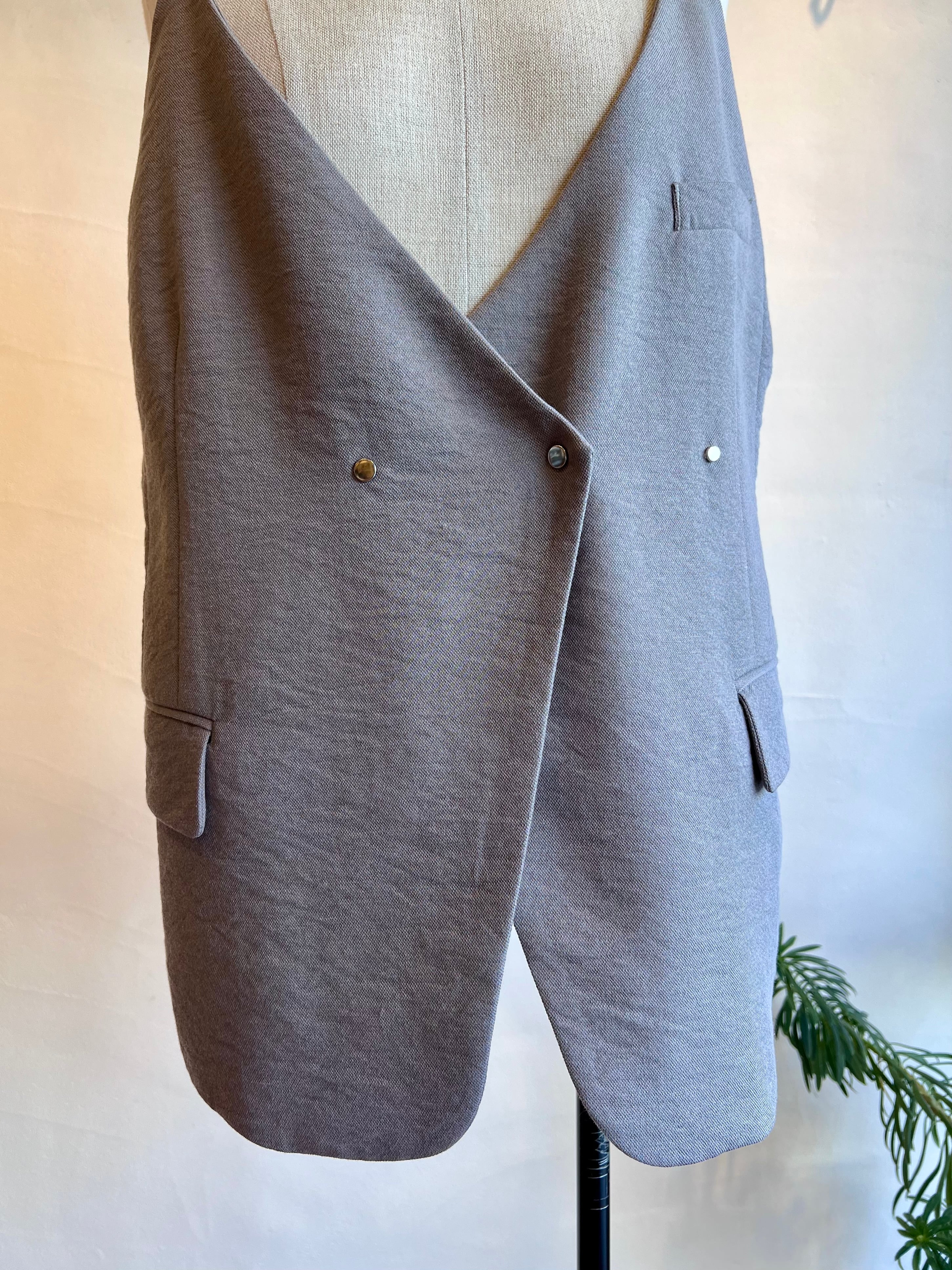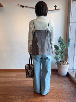 シンプルなコーディネートに重ねるだけで、自然とバランスが整う「クロスフロントビスチェ」。フロントのクロスデザインが縦ラインを強調し、体のラインを拾いすぎず、すっきりとした印象に仕上げてくれます。ニットやカットソー、シャツなど、インナー次第でロングシーズン着用可能。カジュアルにもきれいめにも合わせやすく、大人のデイリーコーデに取り入れやすい一枚です。いつもの服にプラスするだけで、こなれたレイヤードスタイルが完成します。