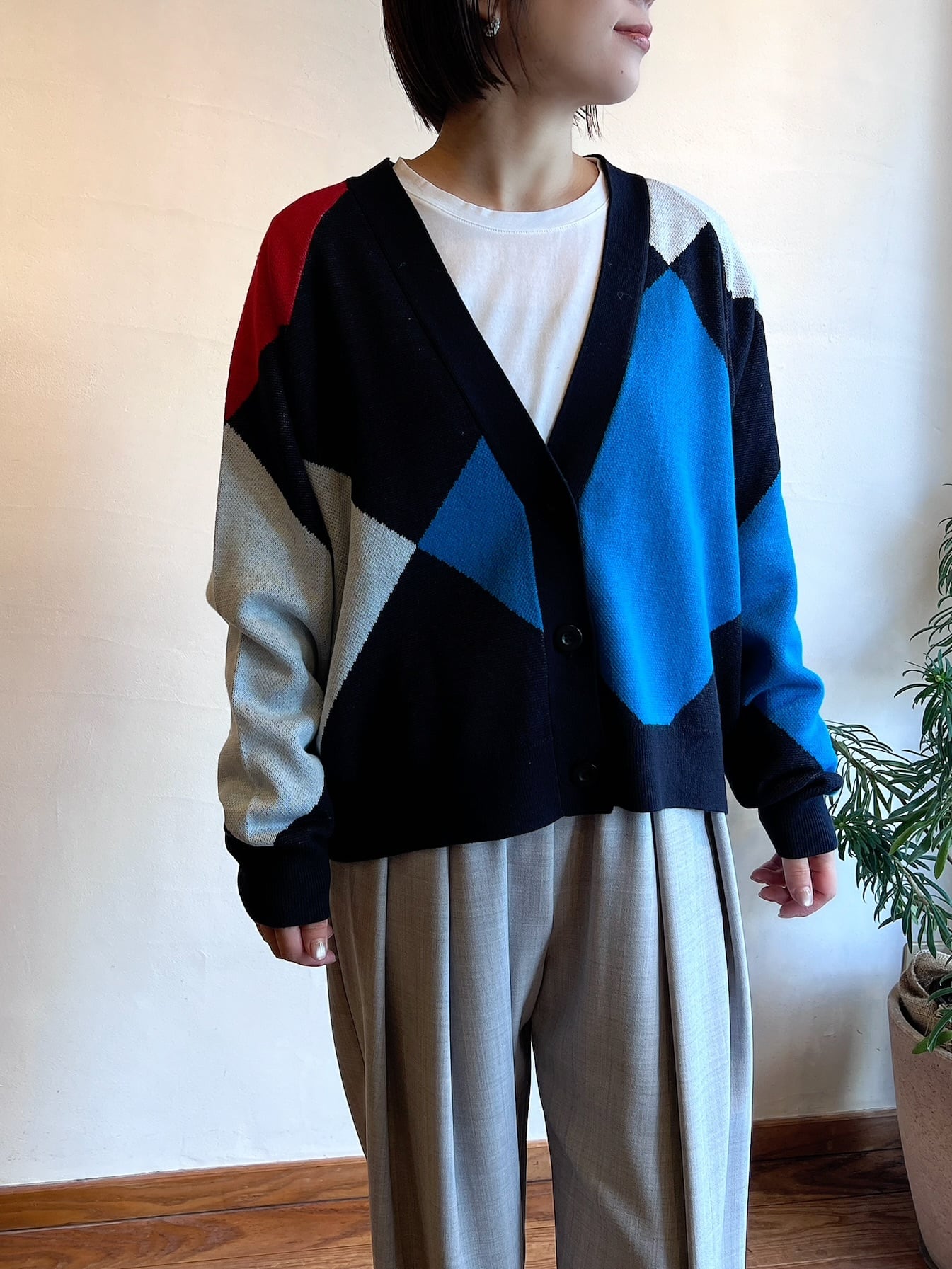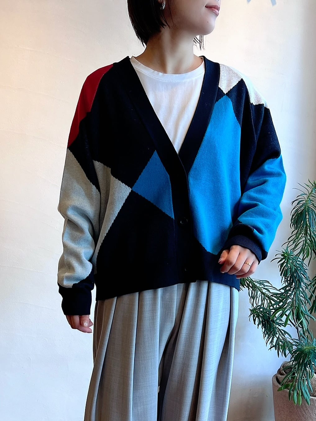 【NEW】MARGAUX VINTAGE / アーガイルVネックカーディガン