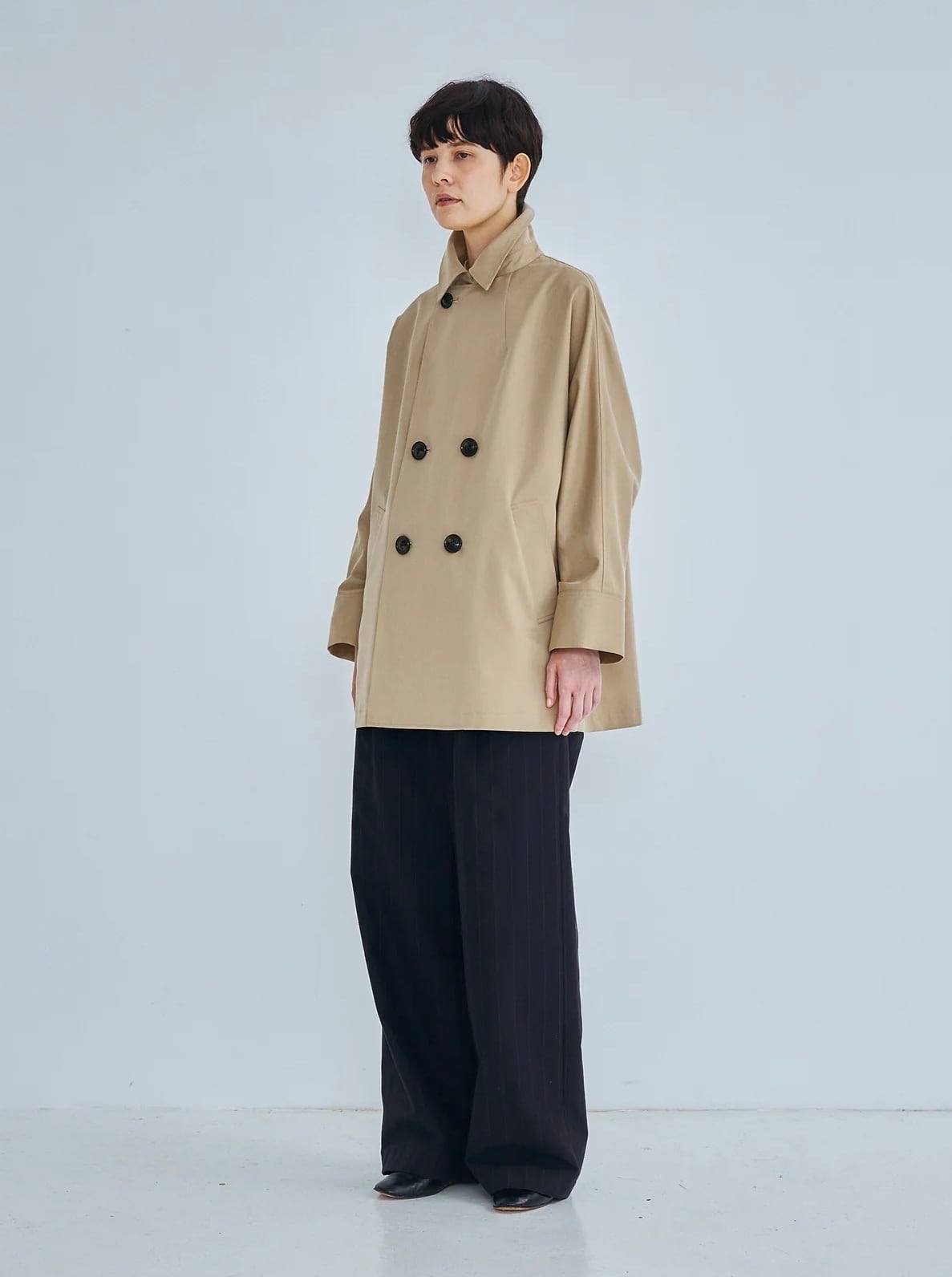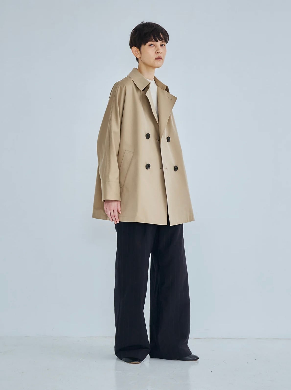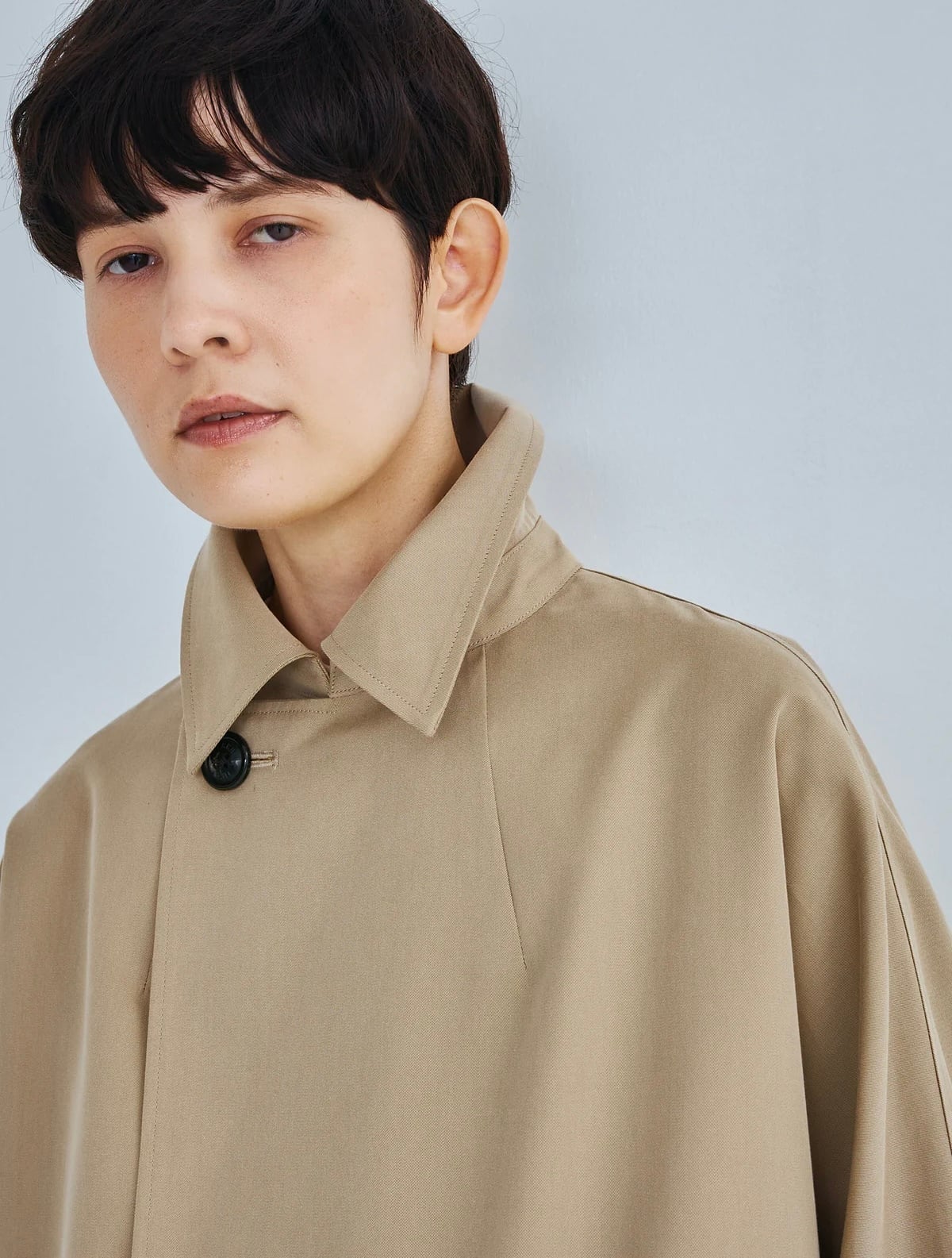 ミディ丈のテントトレンチコートは、軽やかさと品の良さを兼ね備え、季節を問わず活躍する万能アウターです。