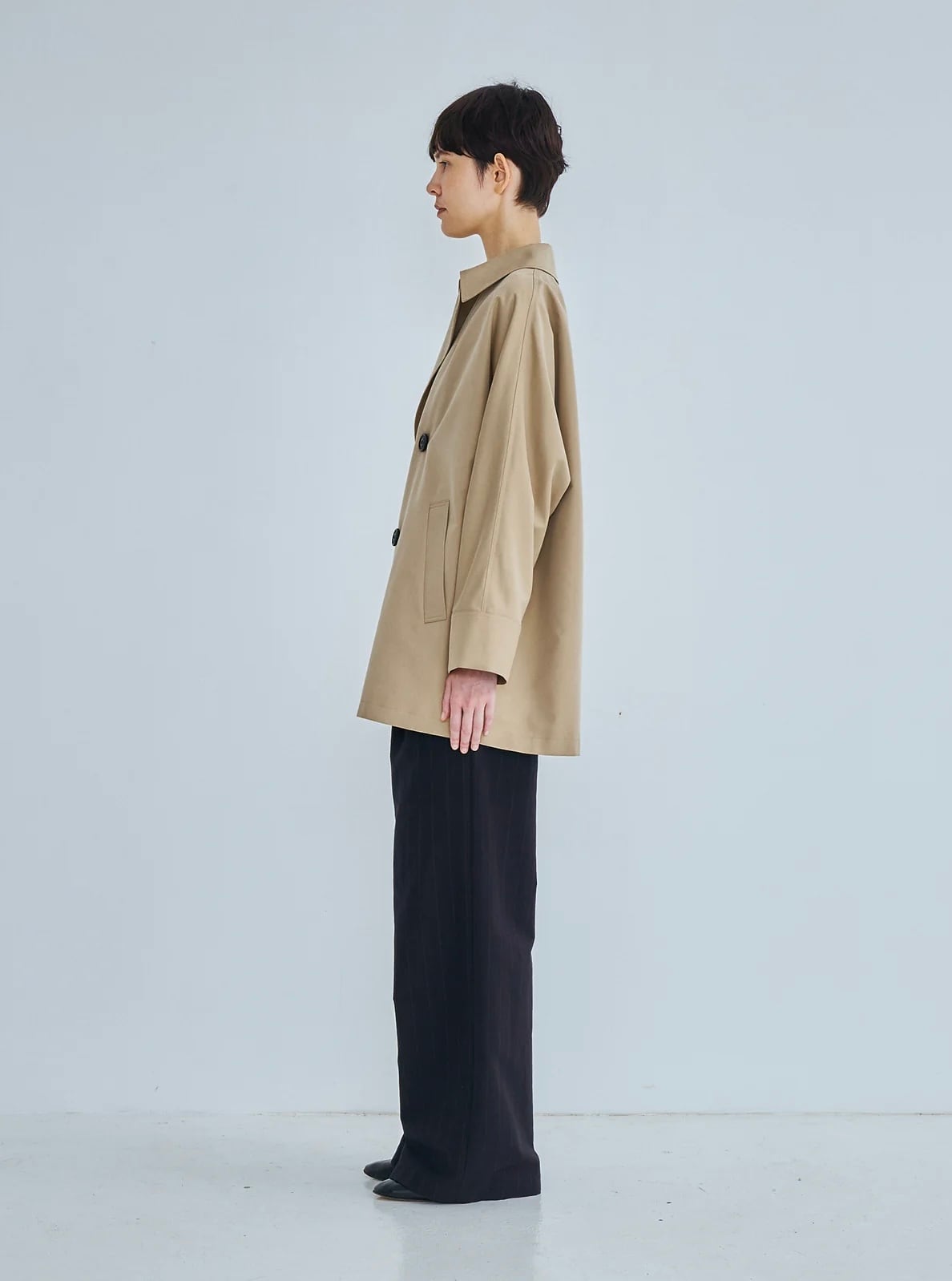 袖を軽く折り返すと抜け感が生まれ、動くたびにニュアンスが変わるギャバジンの表情が引き立ちます。