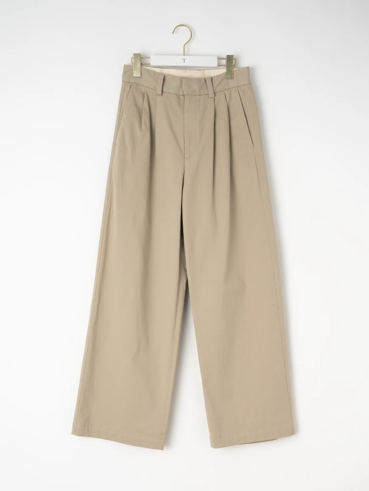 ■深めの股上と美しいワイドストレートシルエットが特徴の2タックチノパンツ