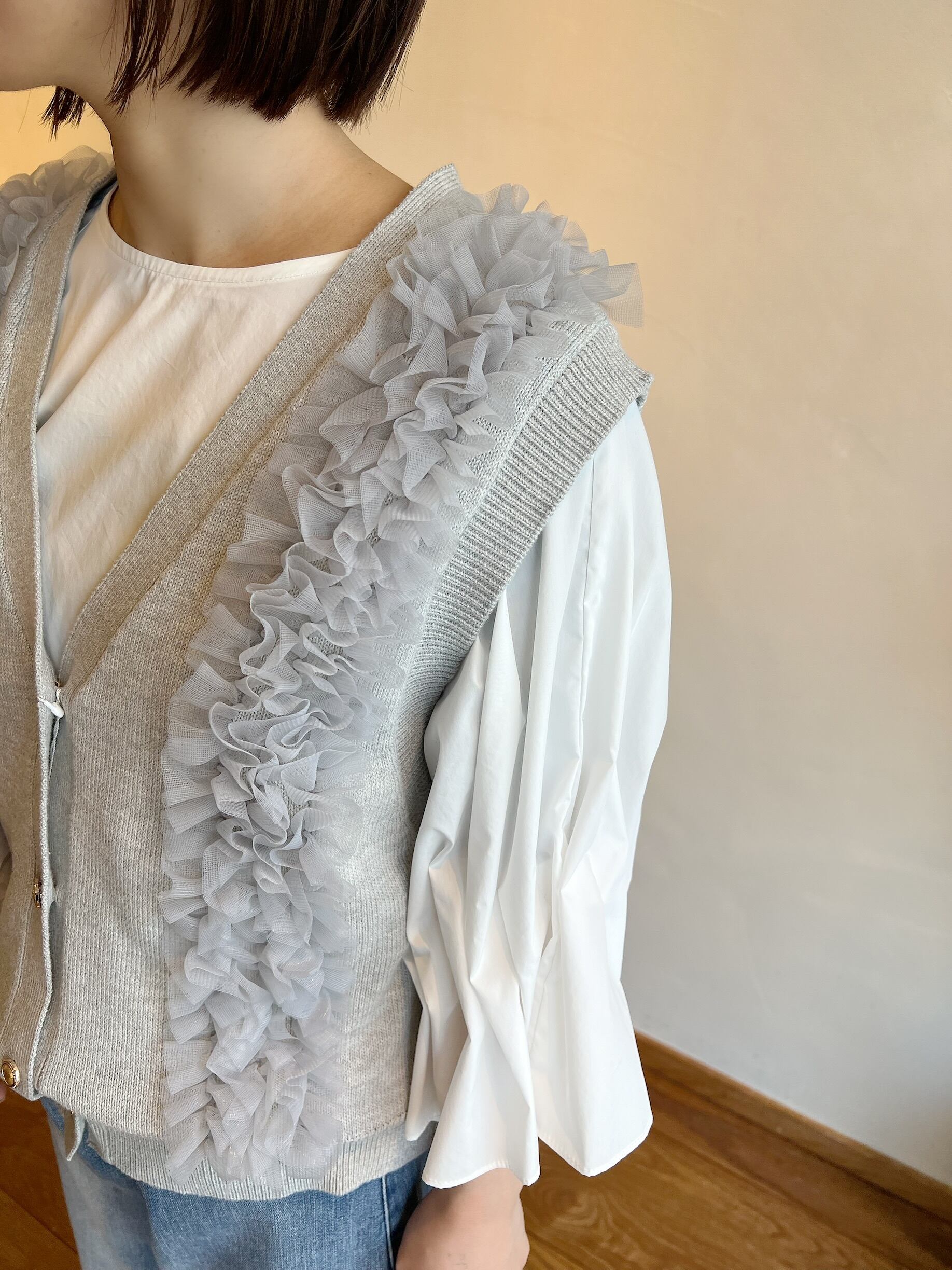■エレガントで洗練された印象を演出するチュールフリルベスト