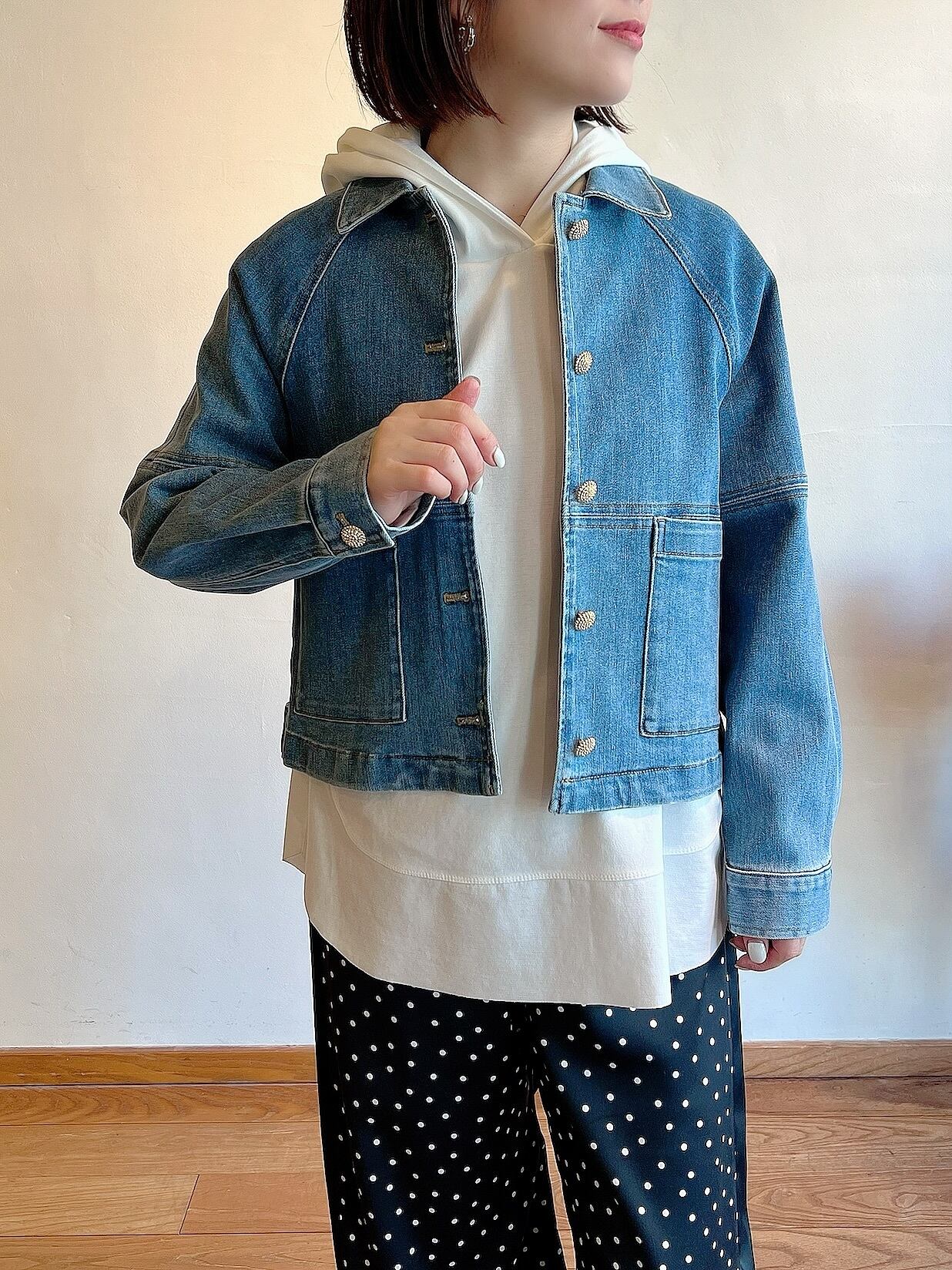 最旬のトレンドを取り入れた襟付きラグランスリーブGジャン。ビンテージ感が漂うデザインが魅力で、カジュアルからキュートなスタイリングまで幅広く対応可能。ストレッチも効いて、着回し力抜群のアイテムです。