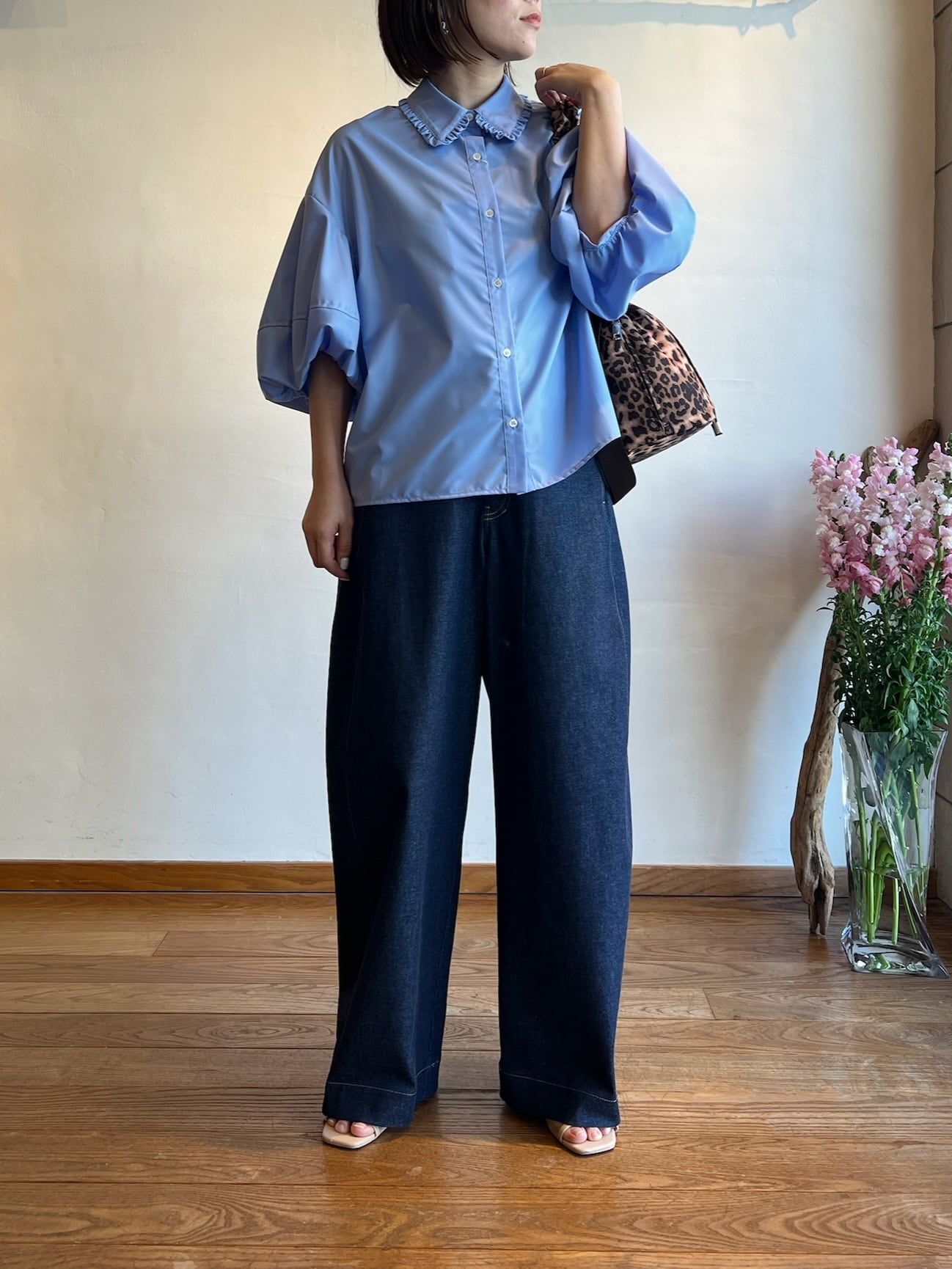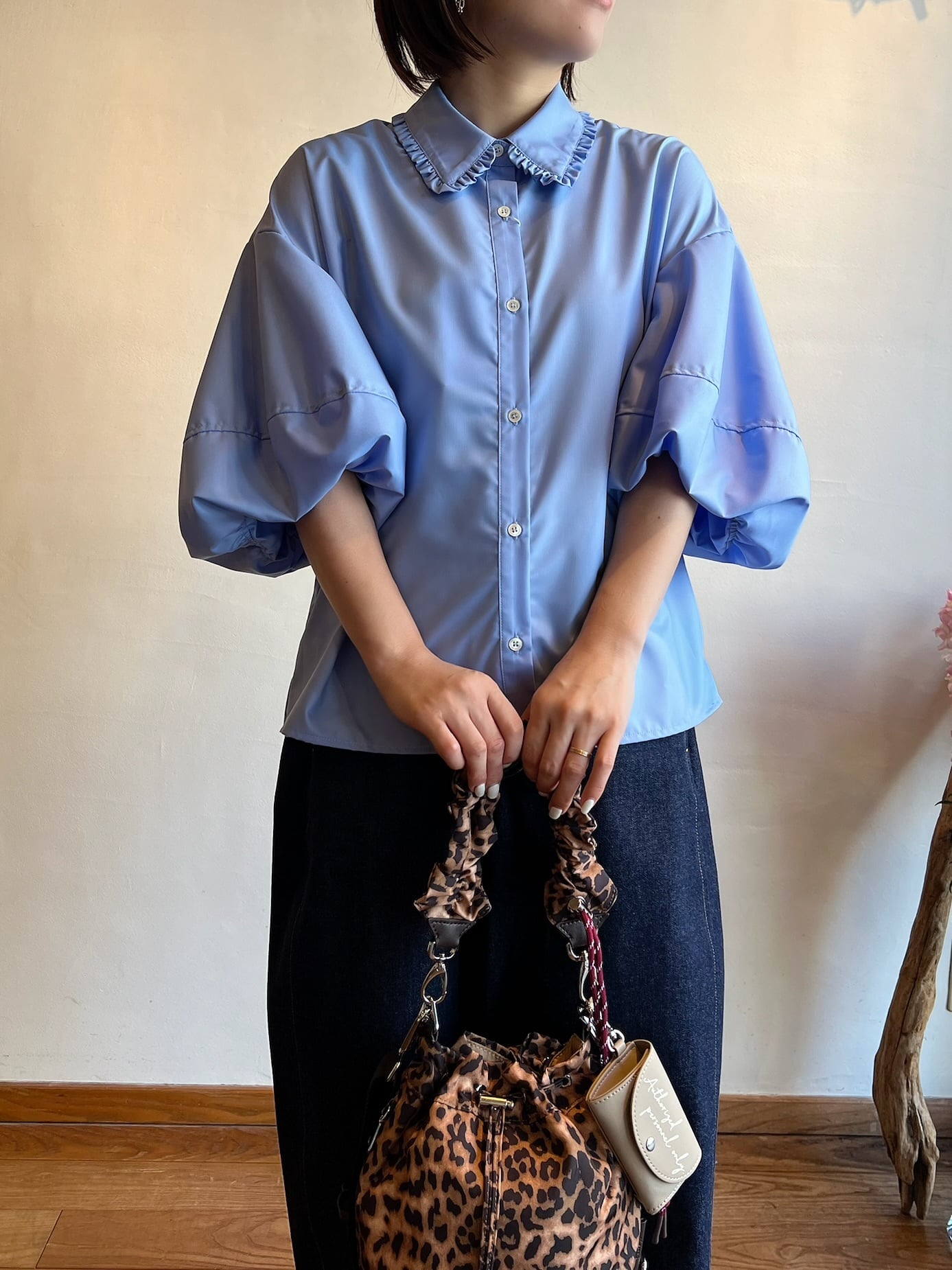 バルーンスリーブが特徴のブラウス。