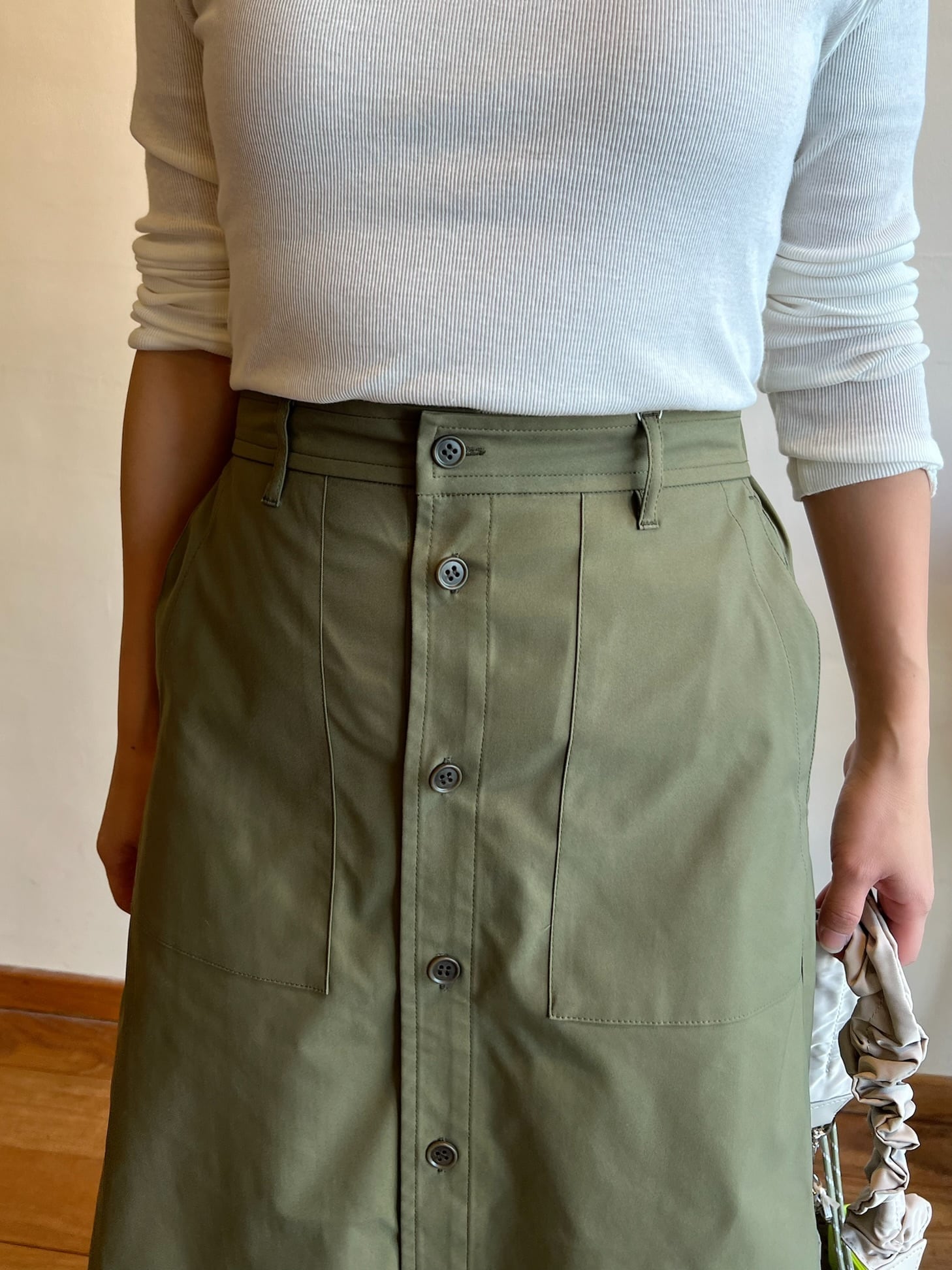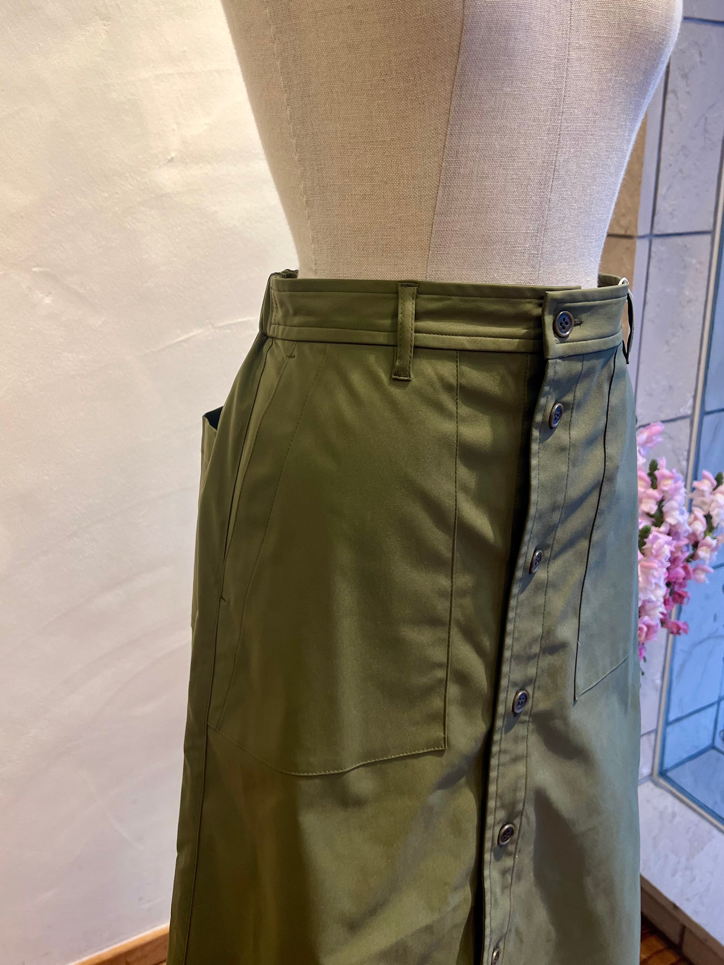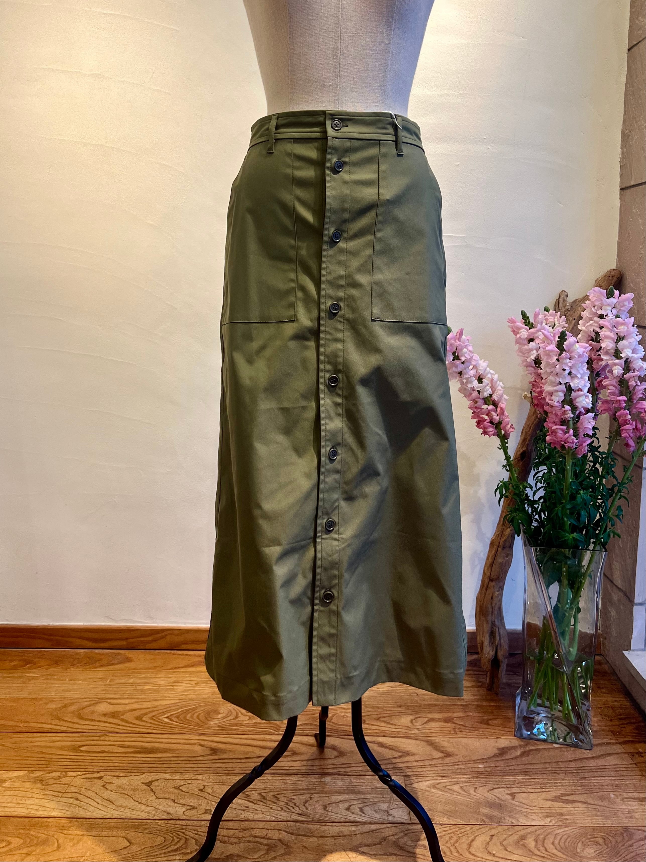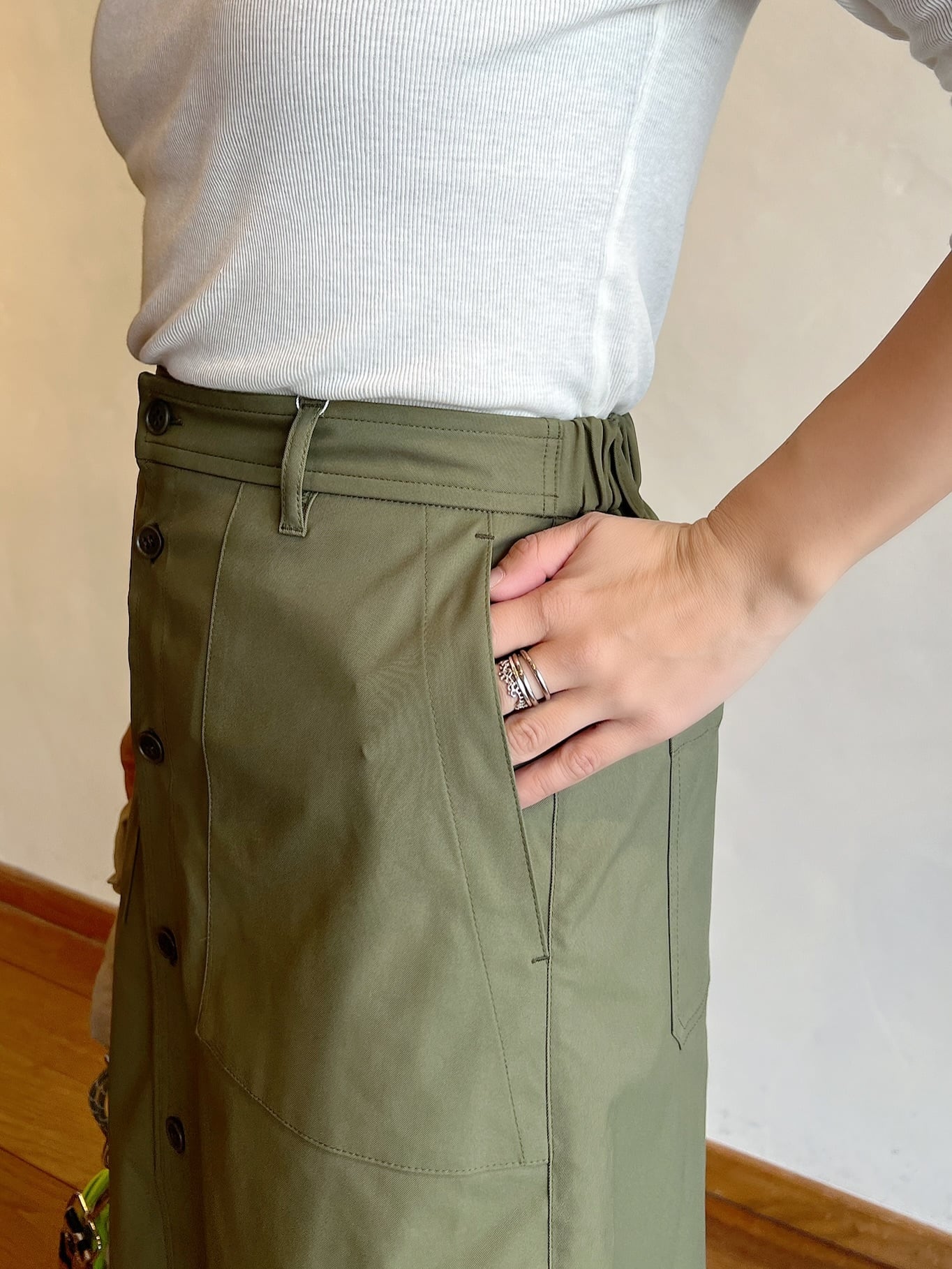ハイテクストレッチの天然ライクなPEツイルを使用したAラインスカート。高品質な素材感は、カジュアルながらも上品な印象を与え、日常のスタイリングを格上げしてくれます.デザインは人気のベイカーズパンツのエッセンスを使ったカジュアルで使いやすいAラインスカート。