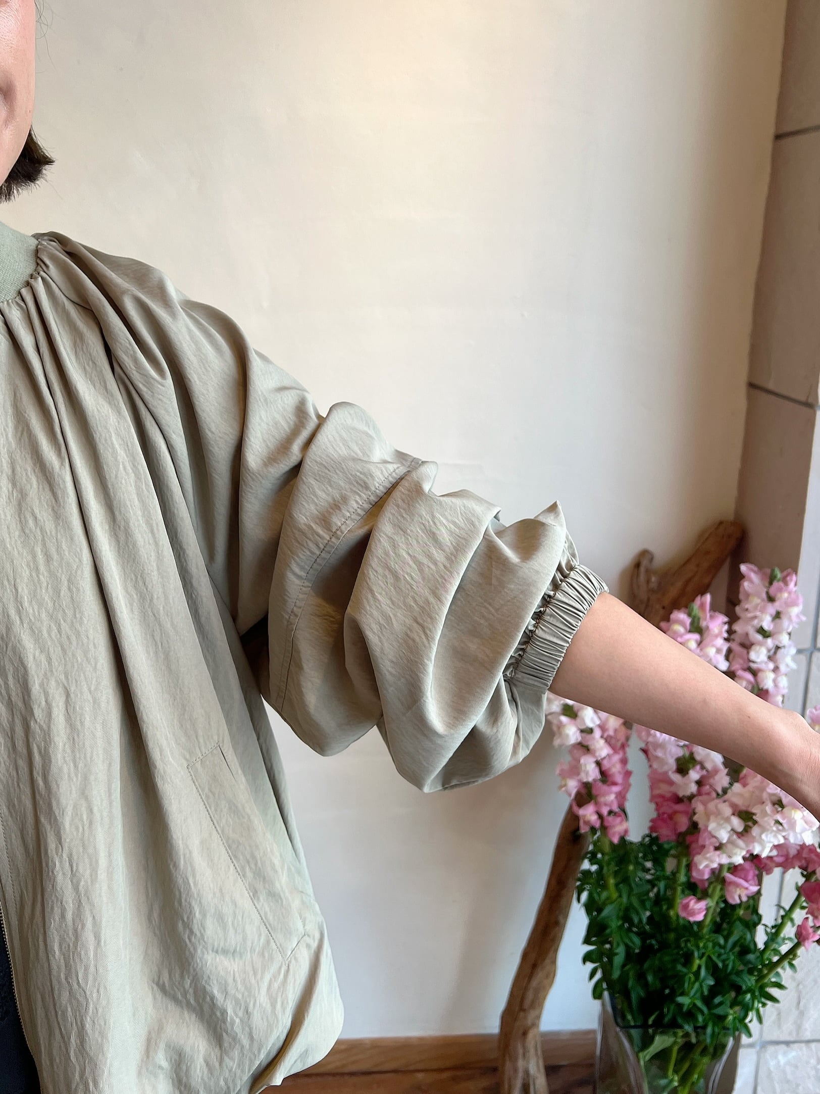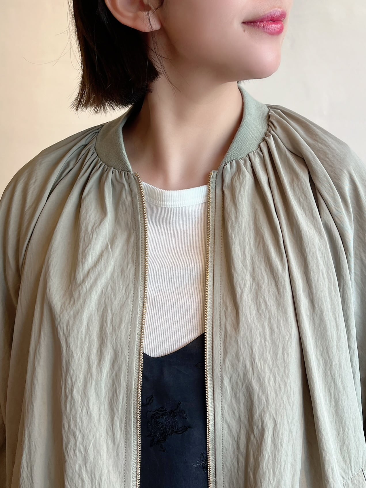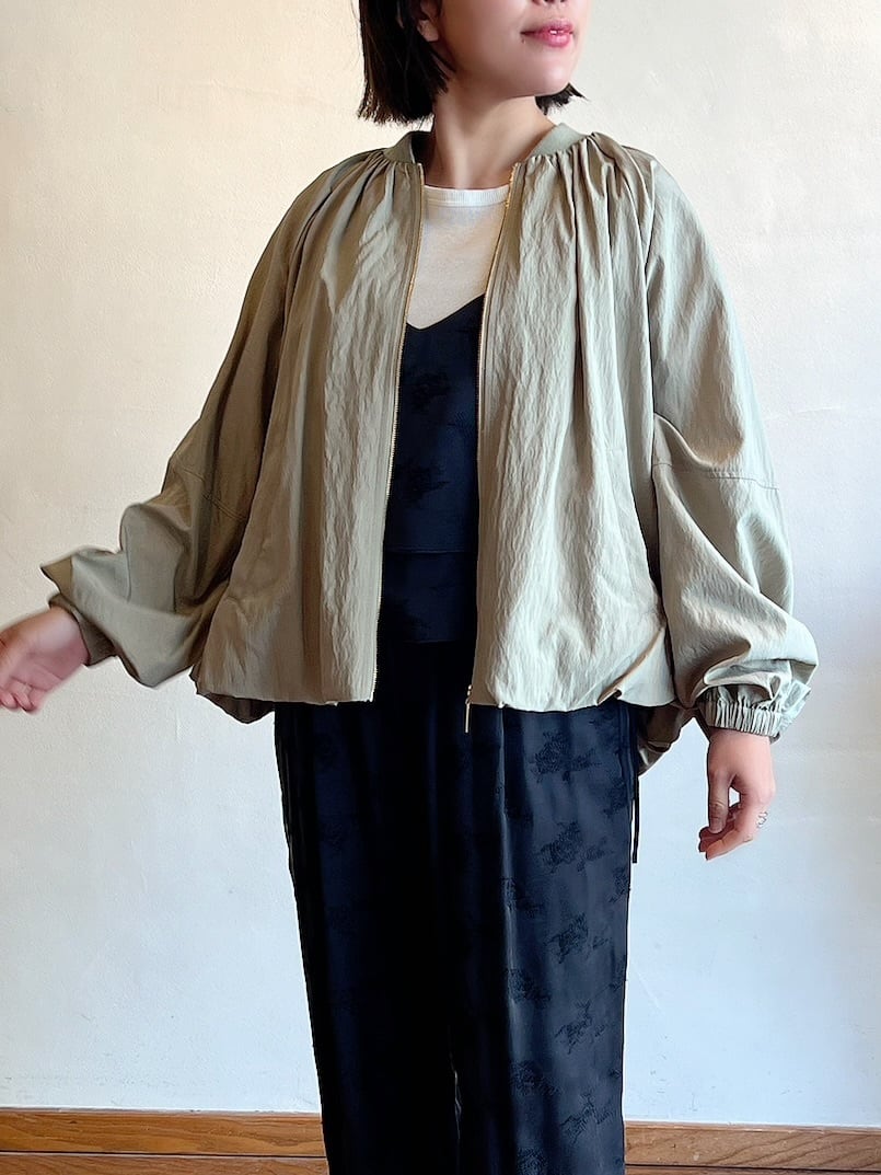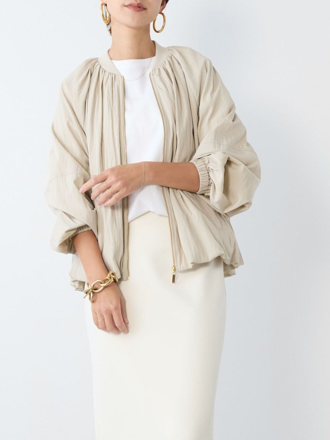 丸みのあるシルエットで女性らしさをプラスしたMA-1ライクなブルゾン。たっぷりギャザーが施されたバルーンシルエットがポイントです。