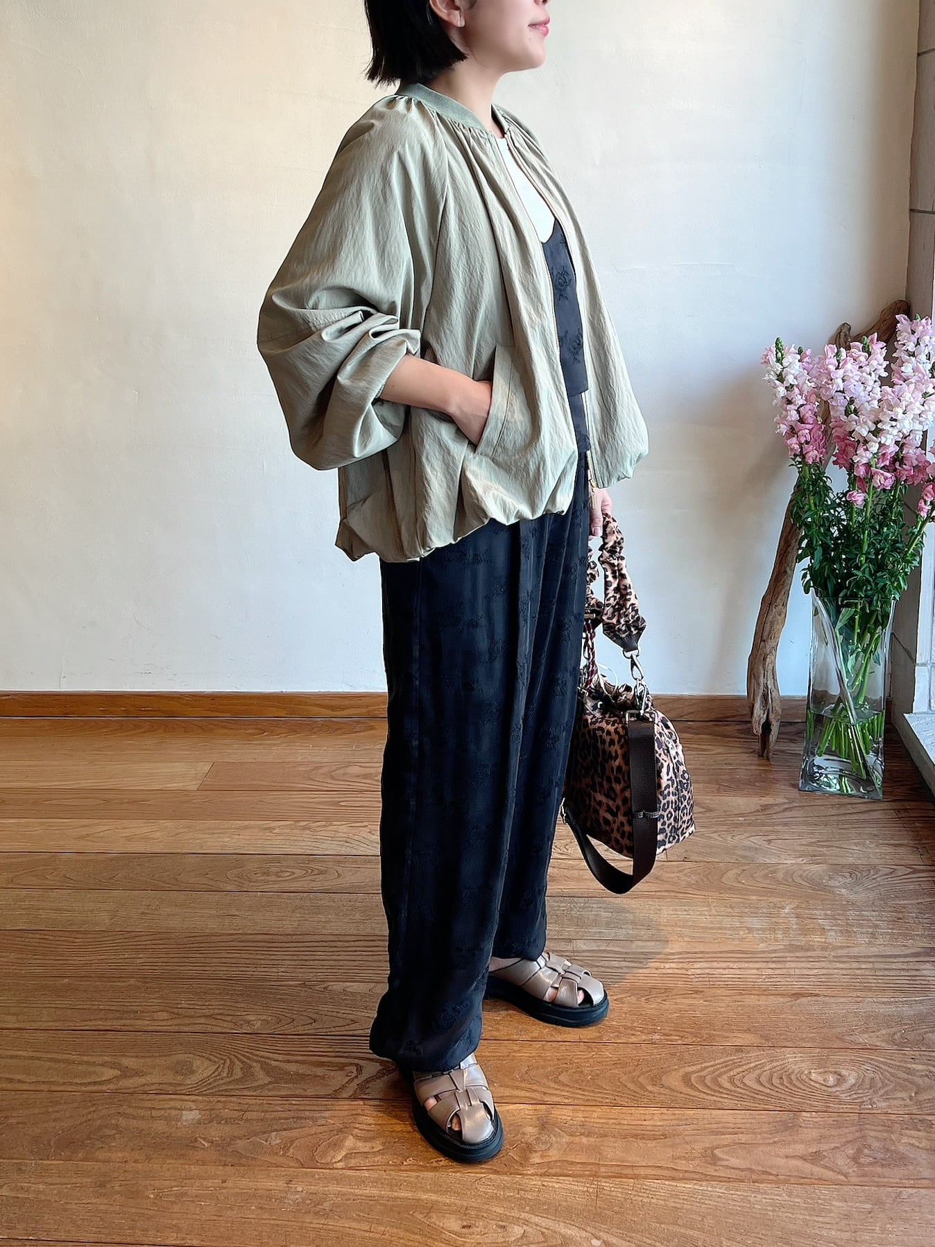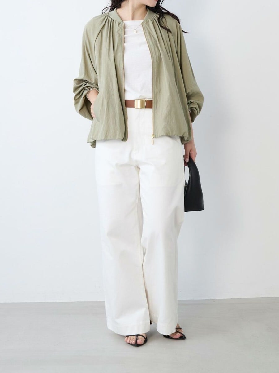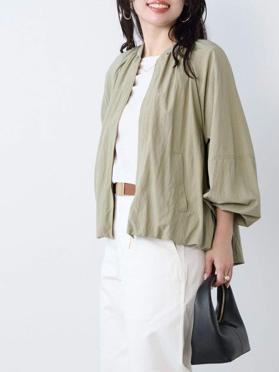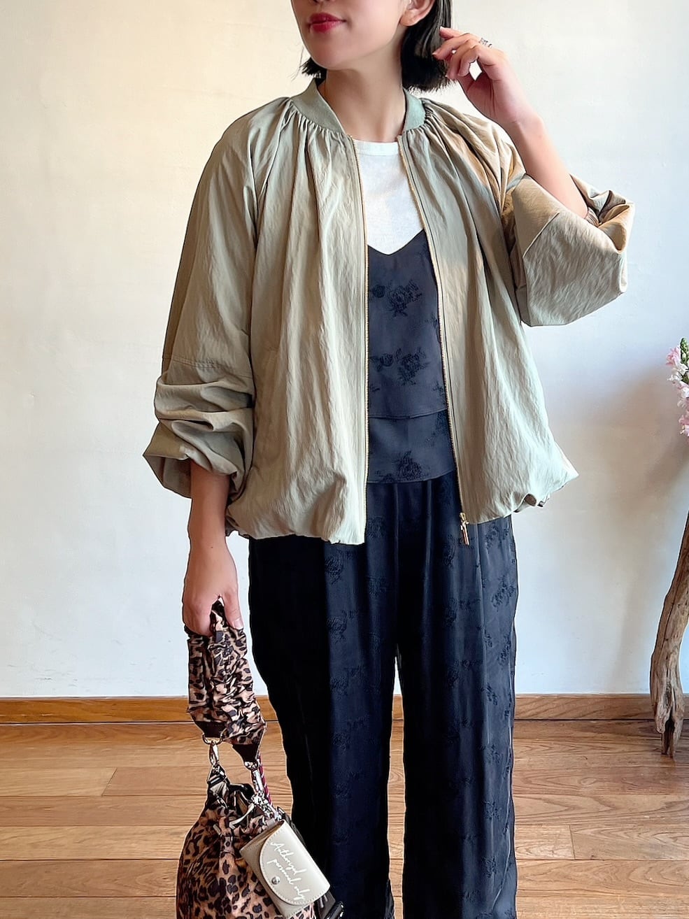丸みのあるシルエットで女性らしさをプラスしたMA-1ライクなブルゾン。たっぷりギャザーが施されたバルーンシルエットがポイントです。