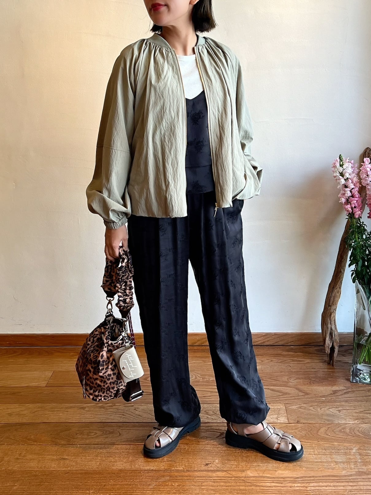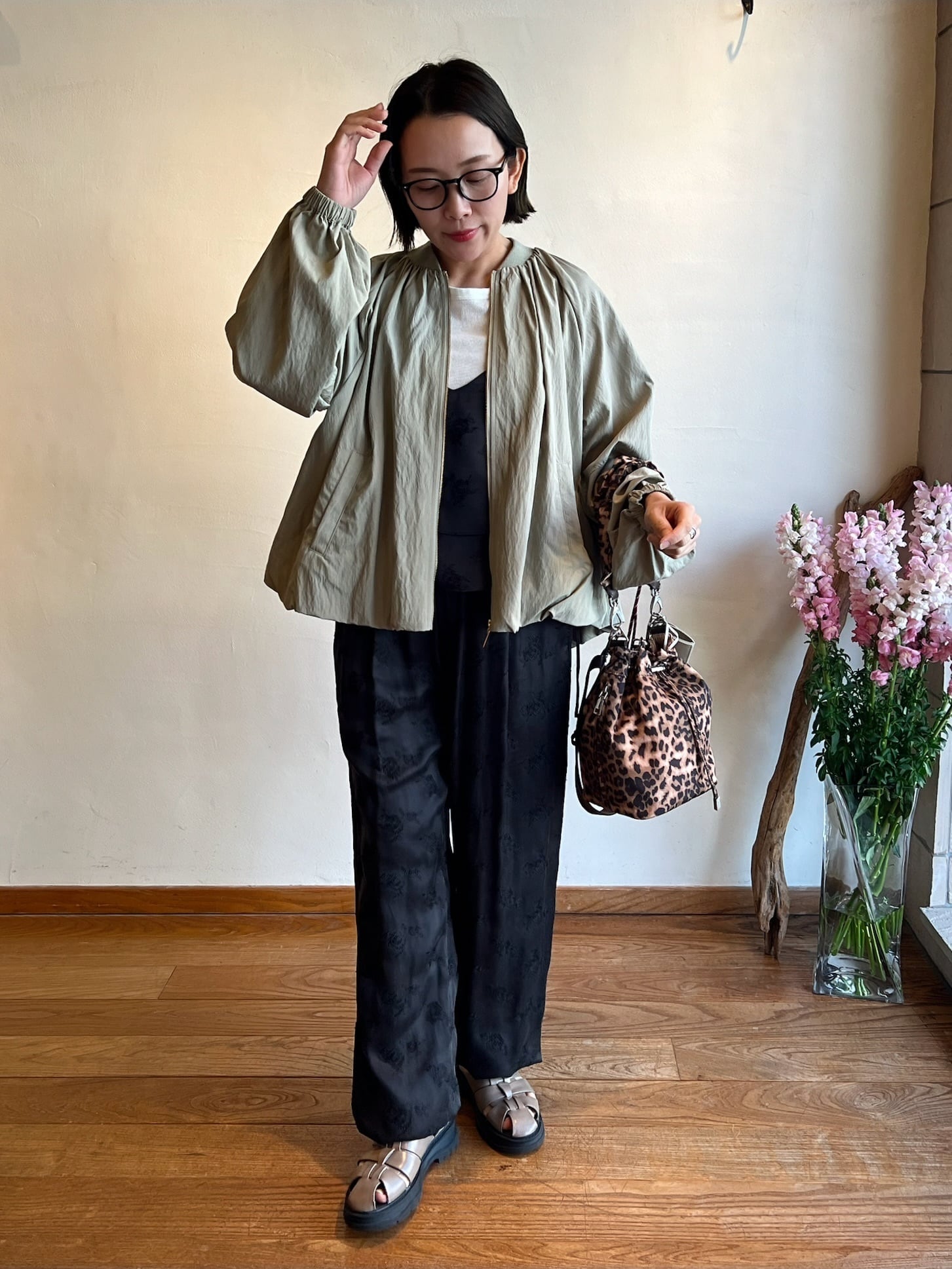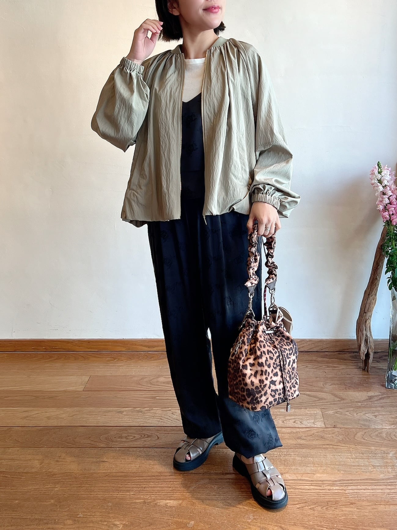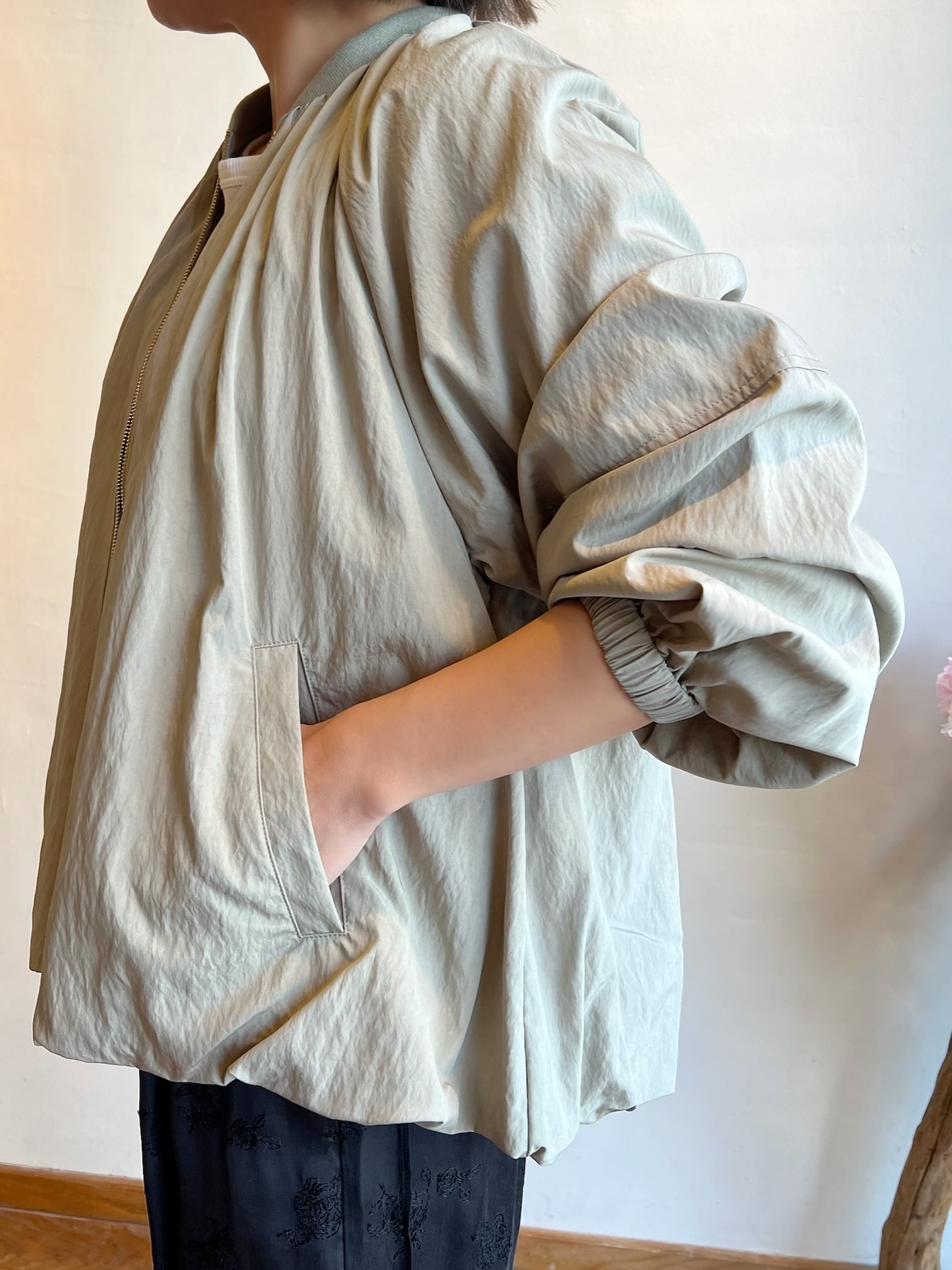 丸みのあるシルエットで女性らしさをプラスしたMA-1ライクなブルゾン。たっぷりギャザーが施されたバルーンシルエットがポイントです。