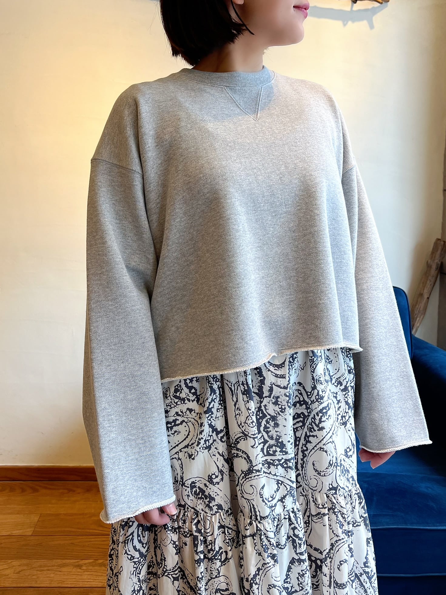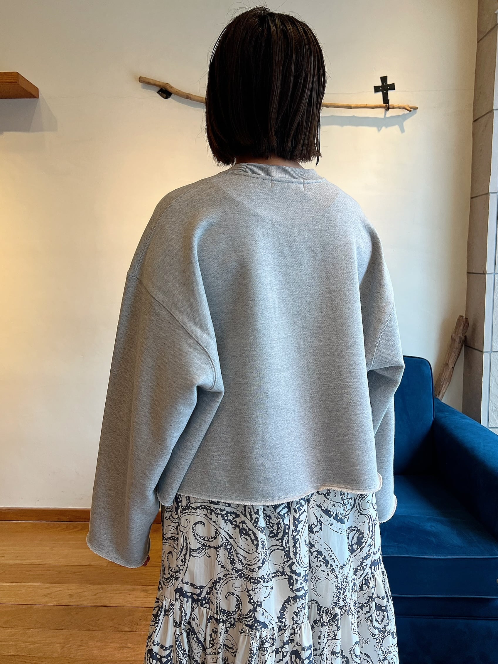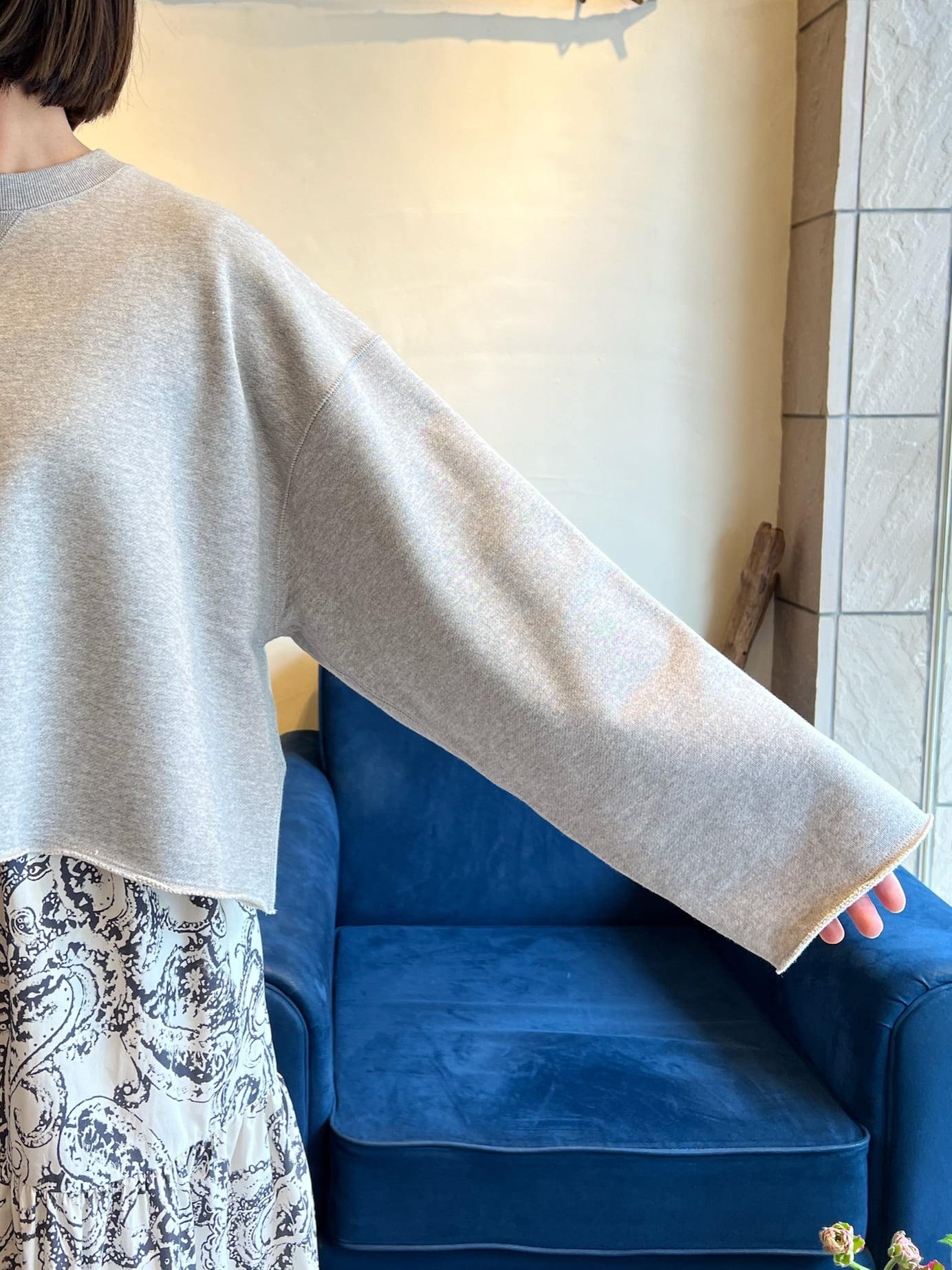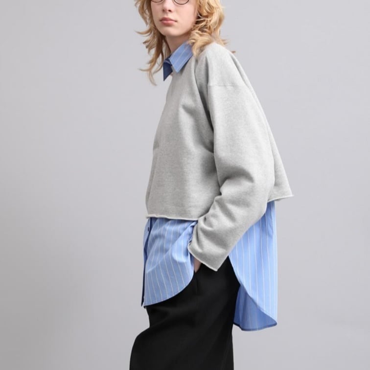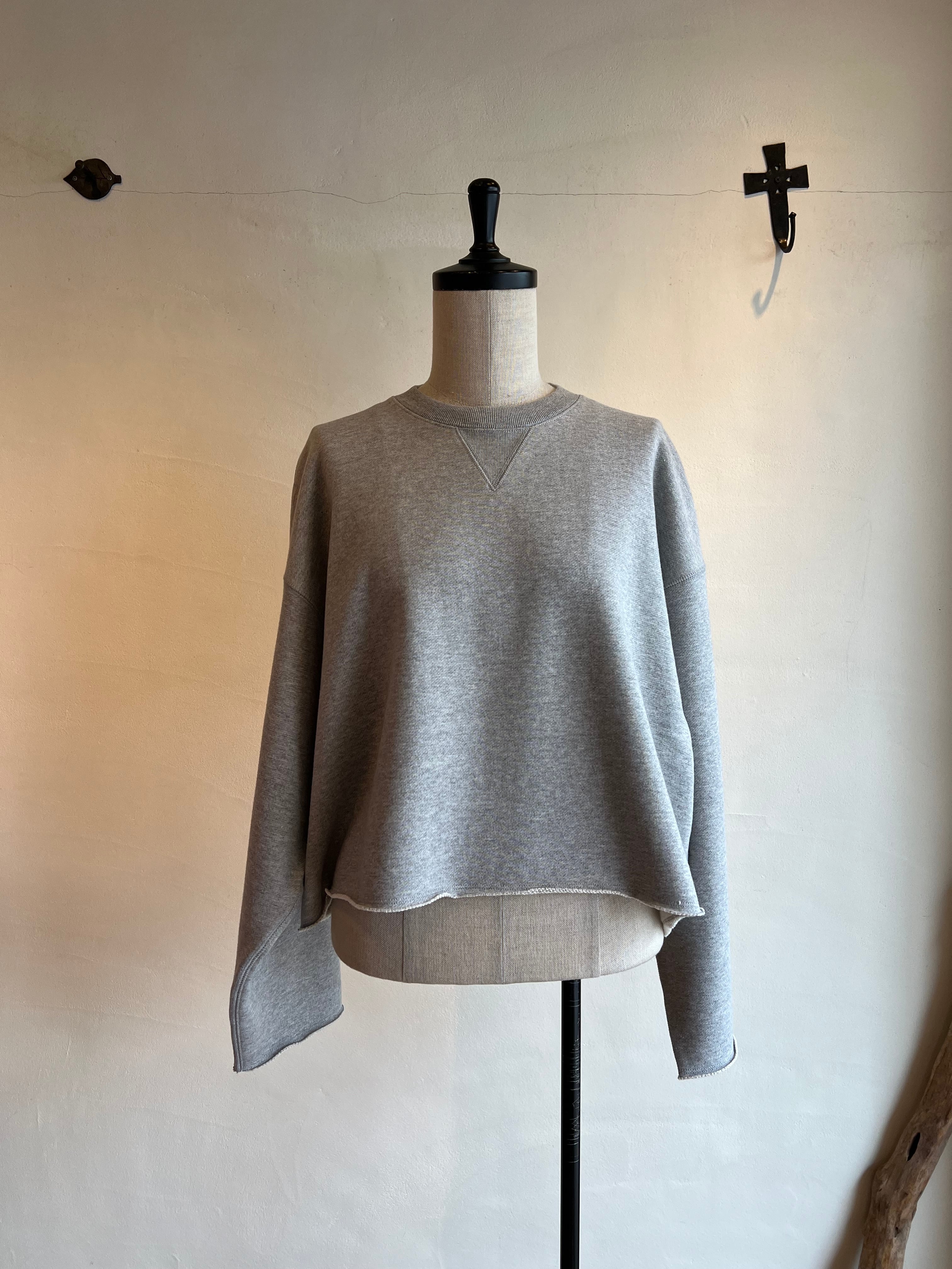 上質な国産裏毛素材を使用したスウェットトップ。きめの細かいクリアな表面感と立体感のある膨らみが特徴。クロップド丈と長めの袖丈のバランスが絶妙な、シーズンムード感じる一着です。袖口と裾の裁ち切りディテールもポイント。クラスカジュアル感が魅力の一着です。