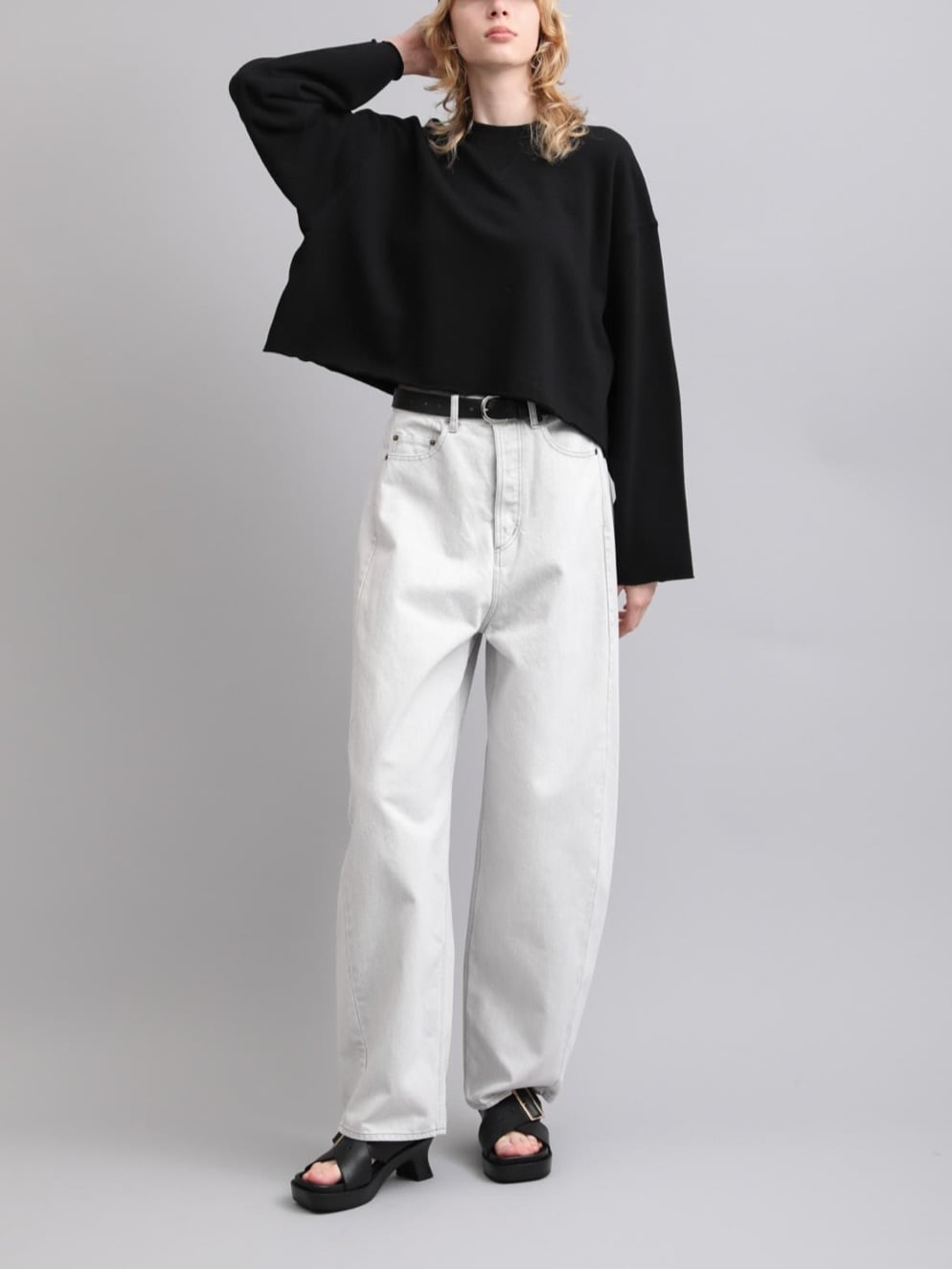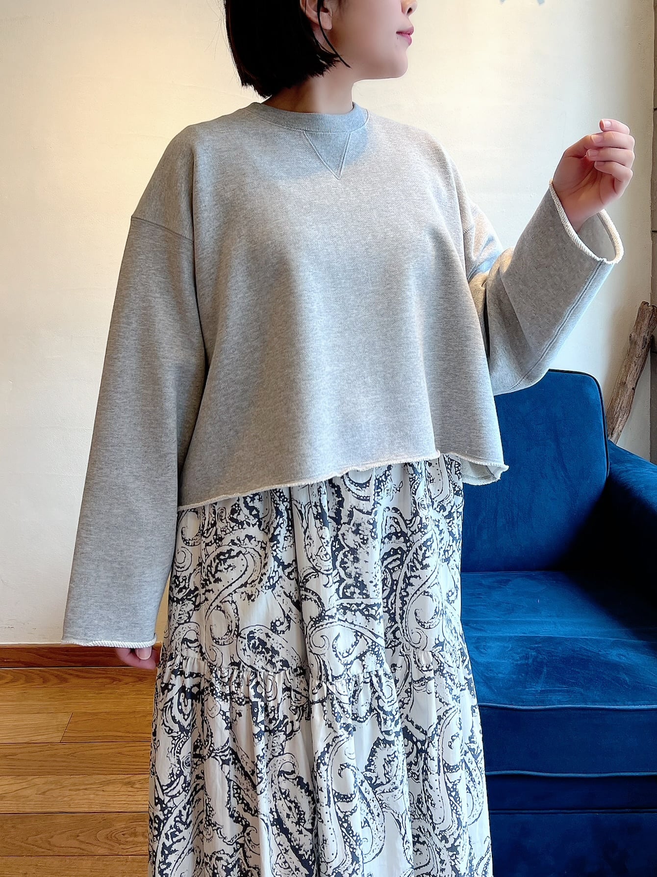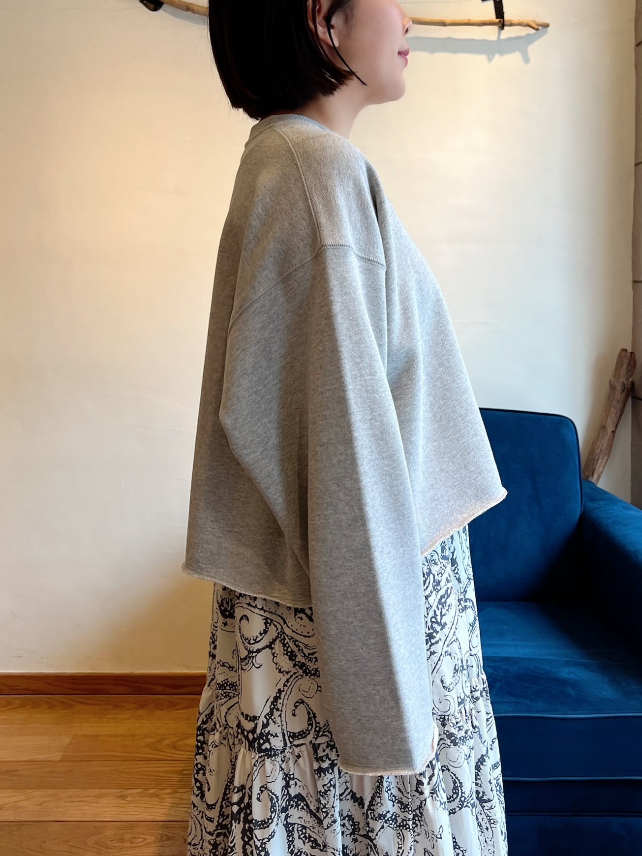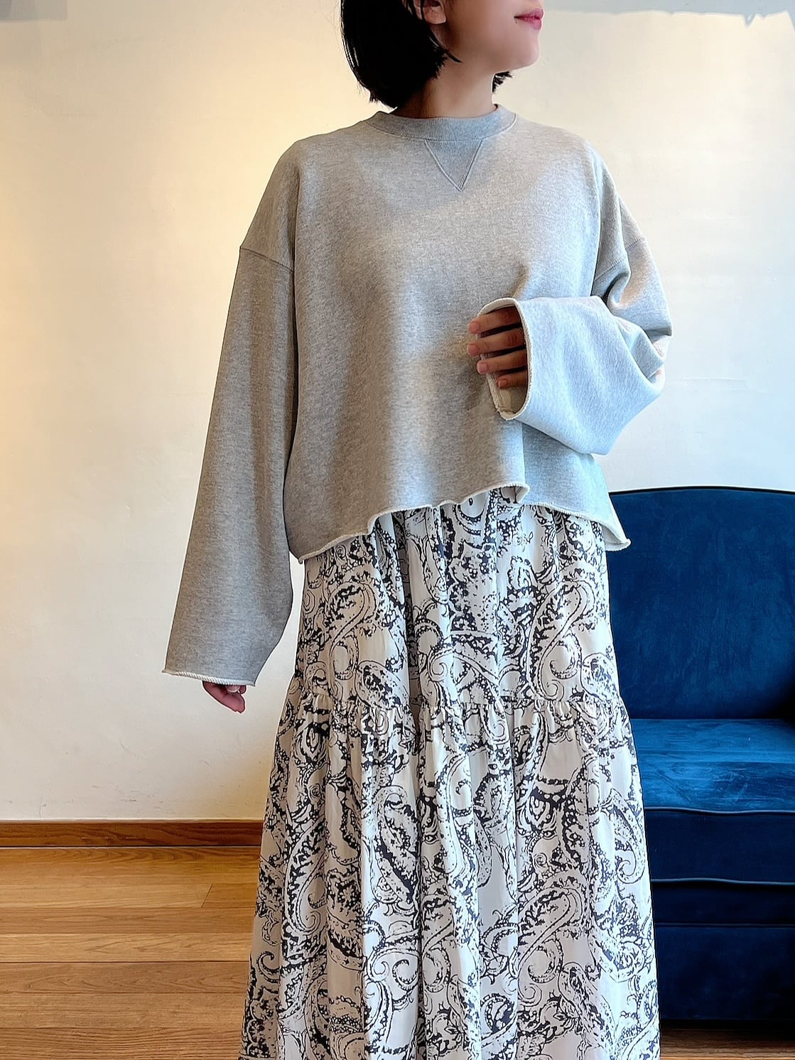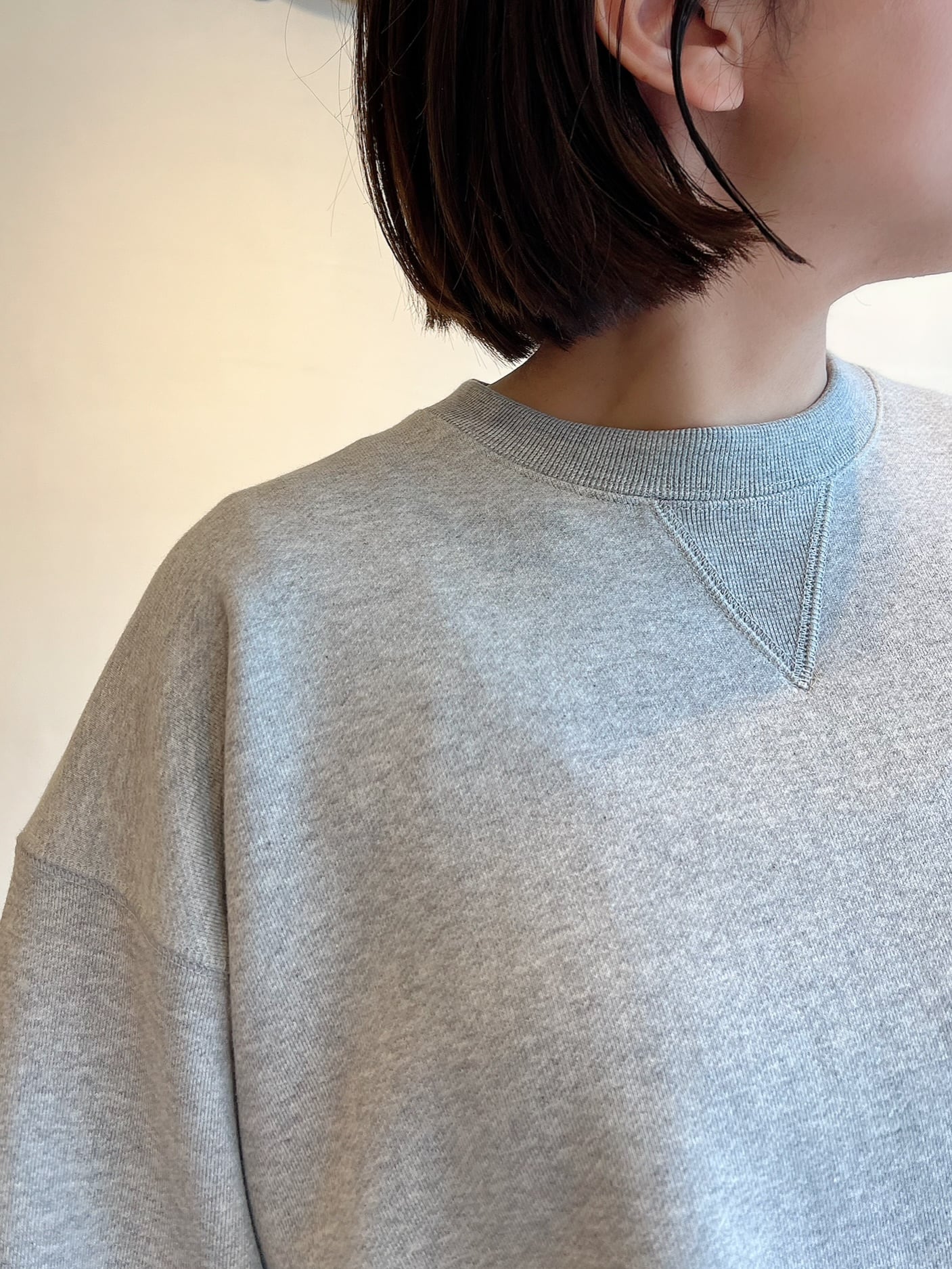 上質な国産裏毛素材を使用したスウェットトップ。きめの細かいクリアな表面感と立体感のある膨らみが特徴。クロップド丈と長めの袖丈のバランスが絶妙な、シーズンムード感じる一着です。袖口と裾の裁ち切りディテールもポイント。クラスカジュアル感が魅力の一着です。