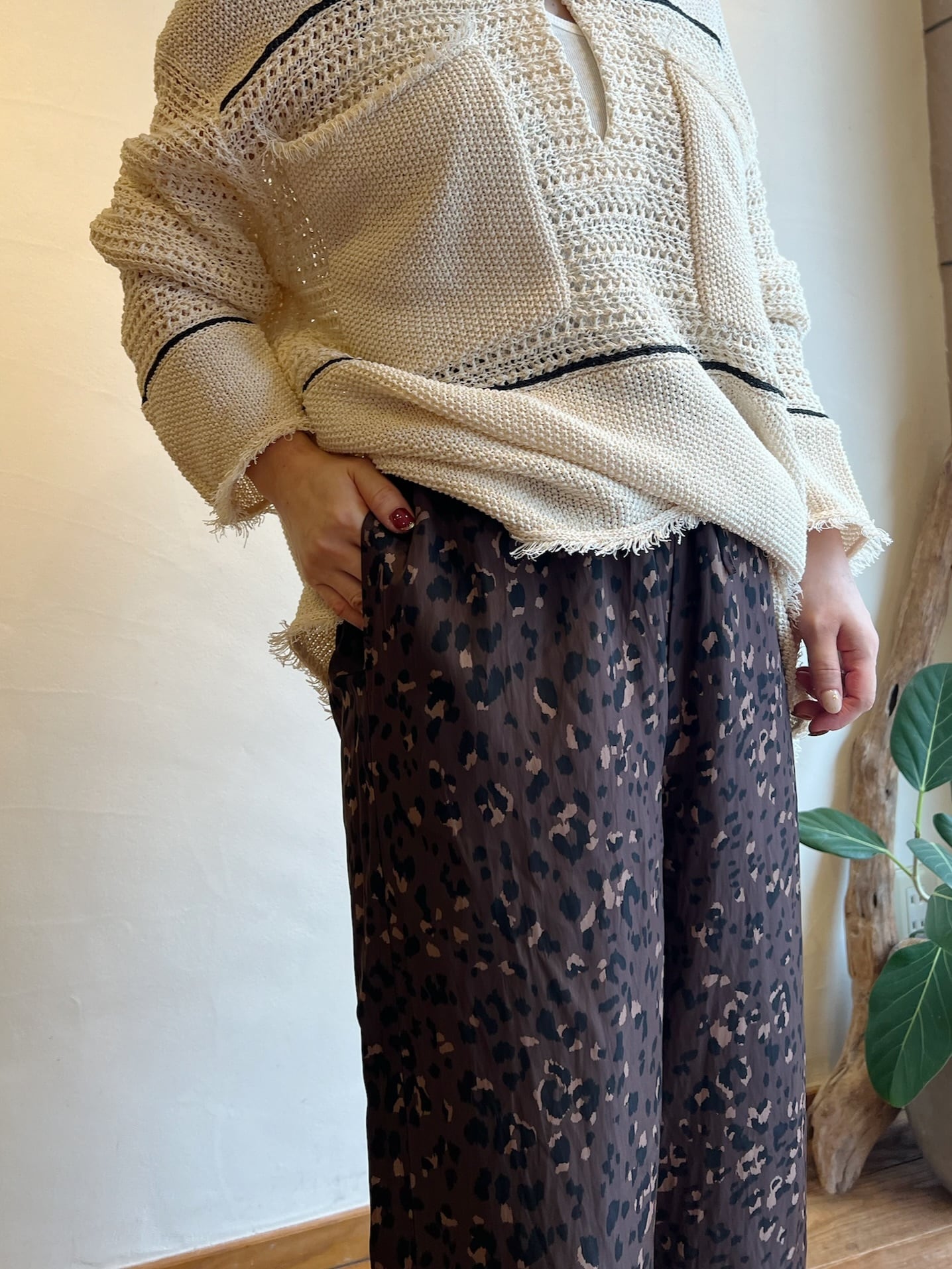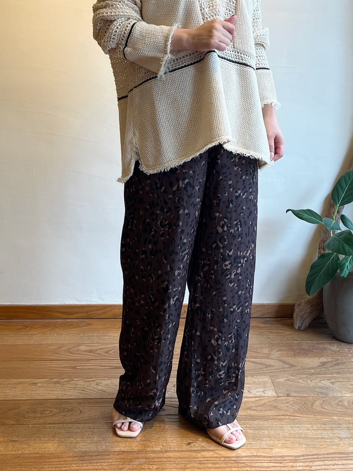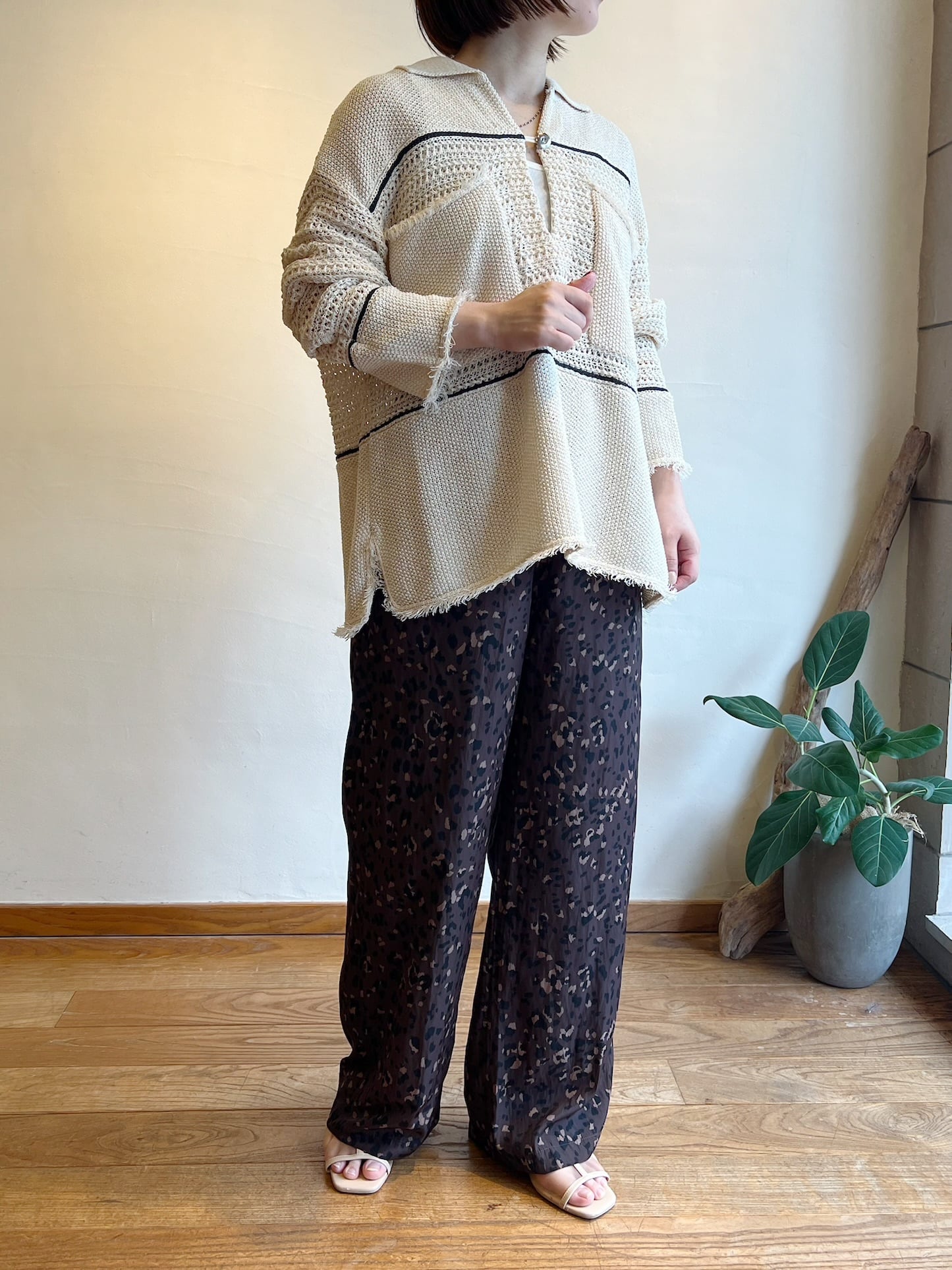 軽やかな素材のイージーパンツタイプなので、ラフさの中にもモード感が生まれます。