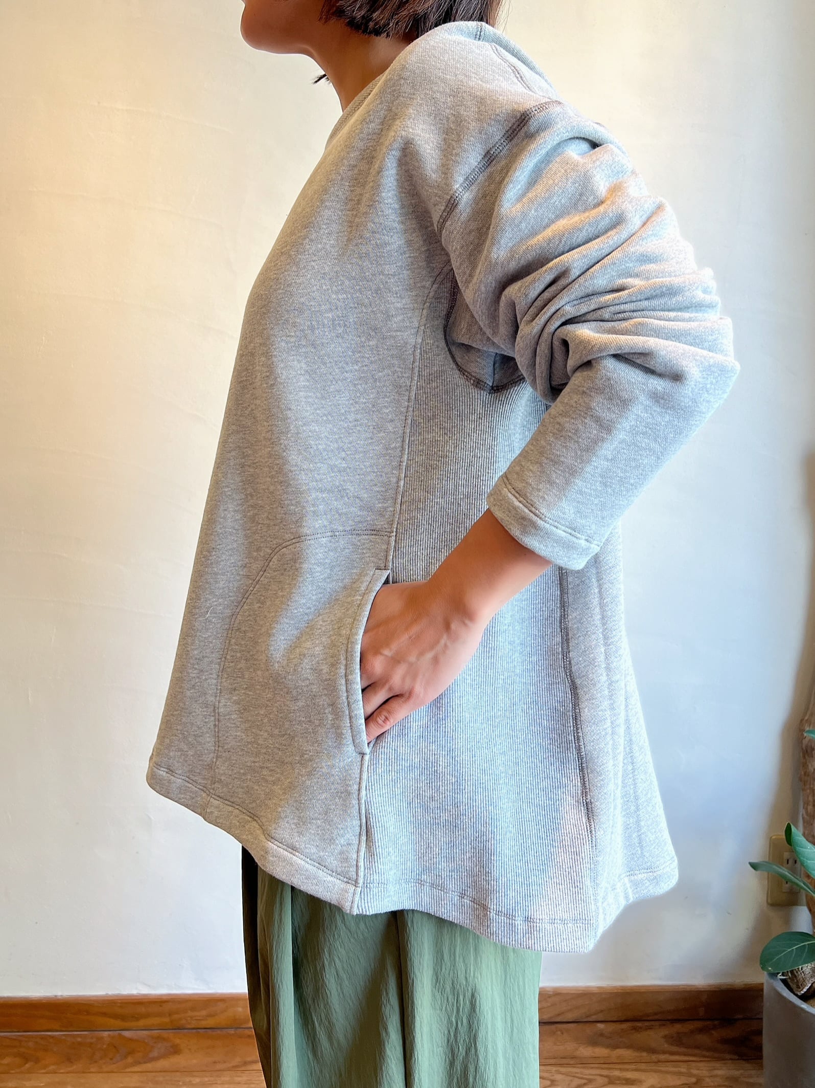少し長めな丈感とAラインシルエットが特徴のスウェット。リラックスした着心地ながらも美しいラインを演出します。柔らかく伸縮性のある素材でデイリーコーデにぴったりなアイテムです!サイドに施されたリブ切替やバックのデザインがシンプルなスタイルにアクセントを加え、洗練された印象に仕上げてくれます。