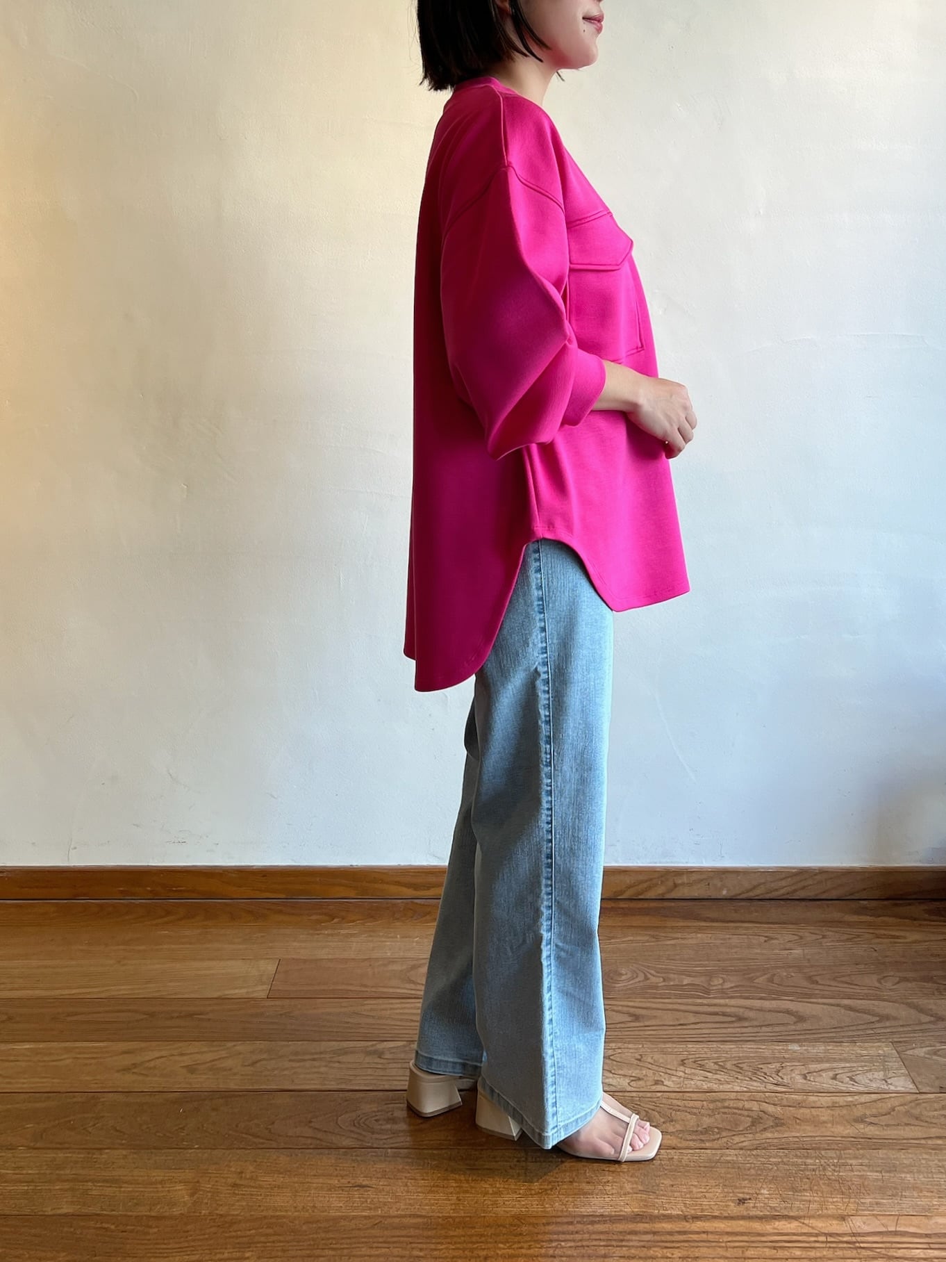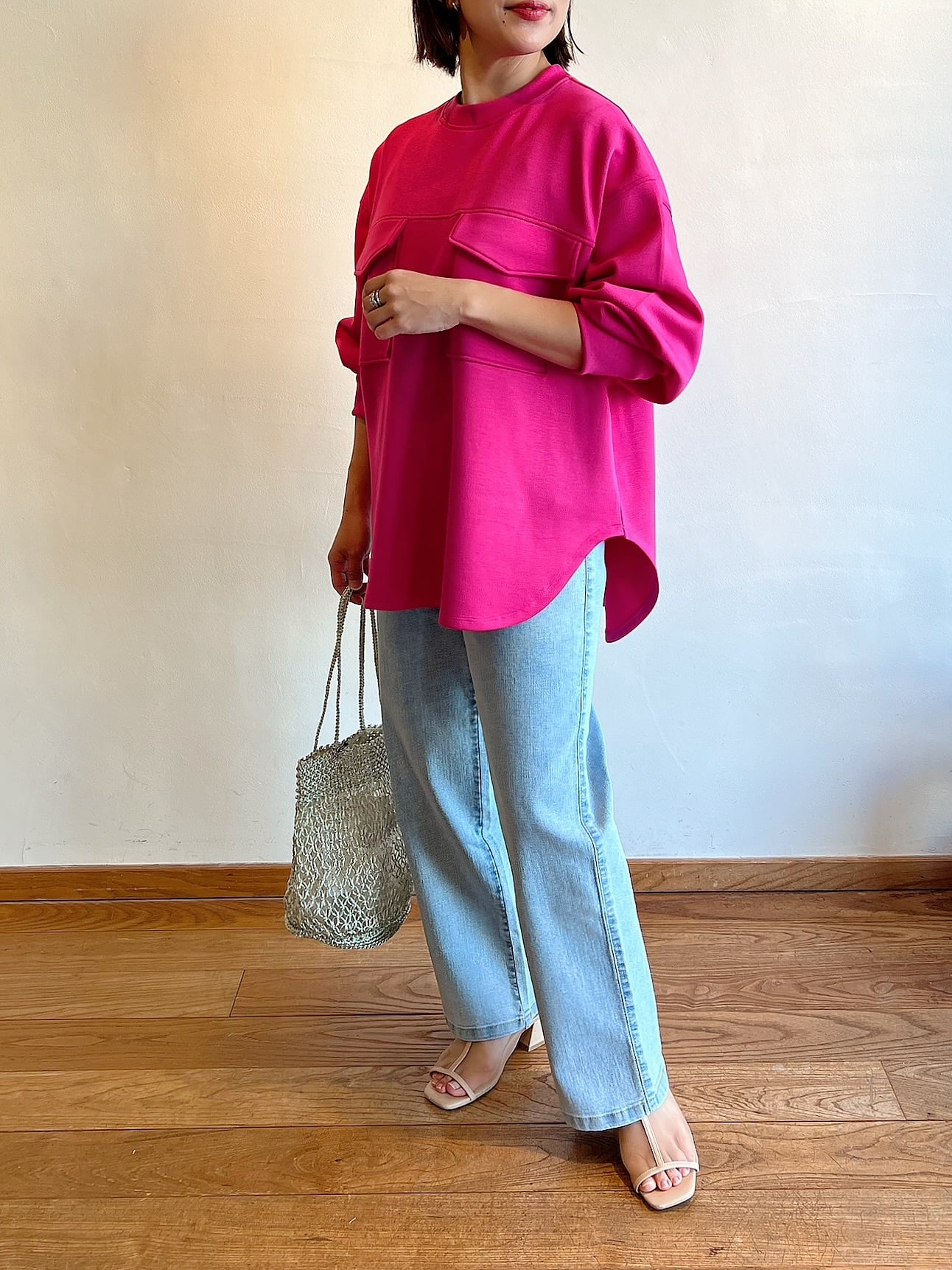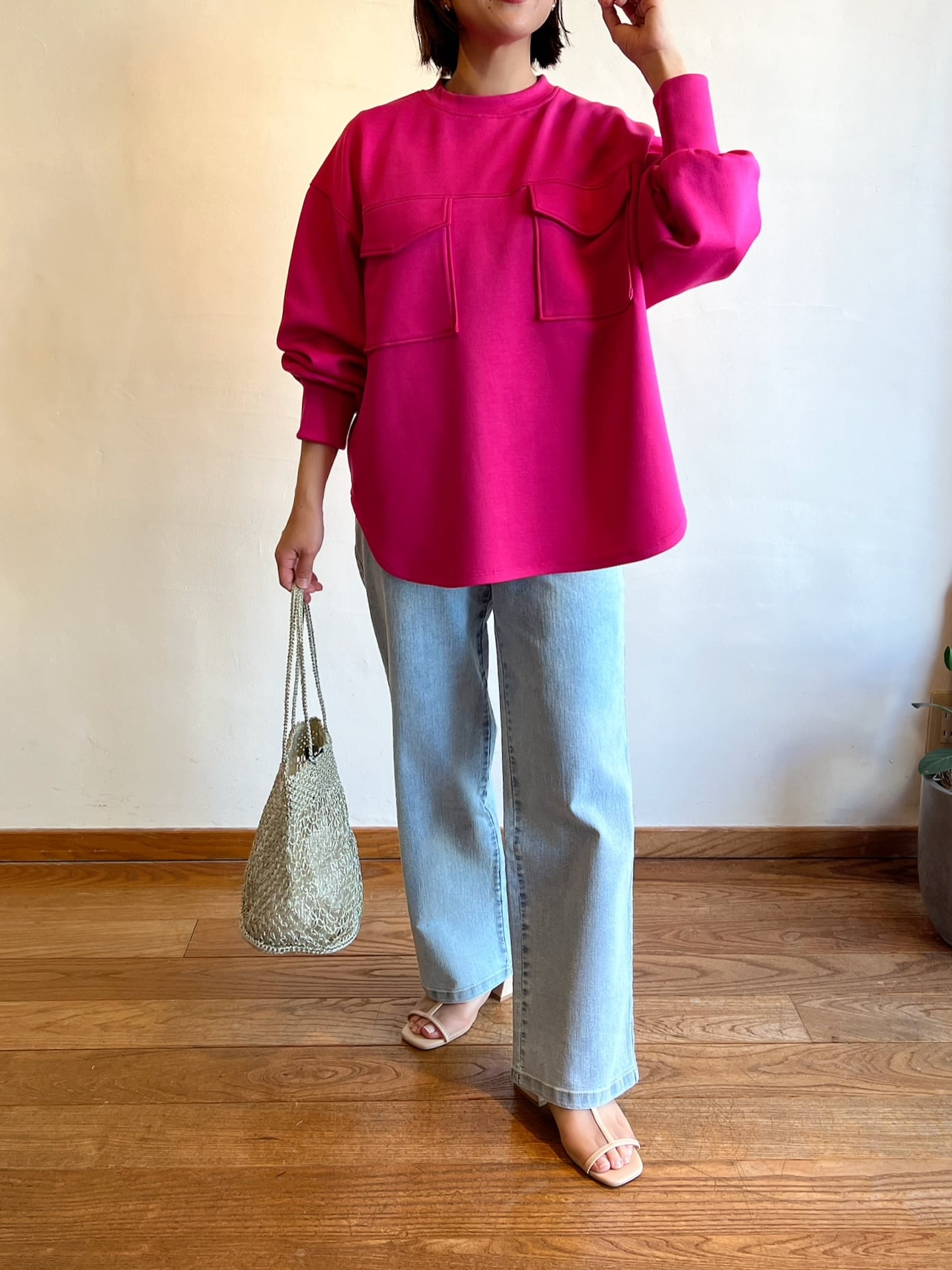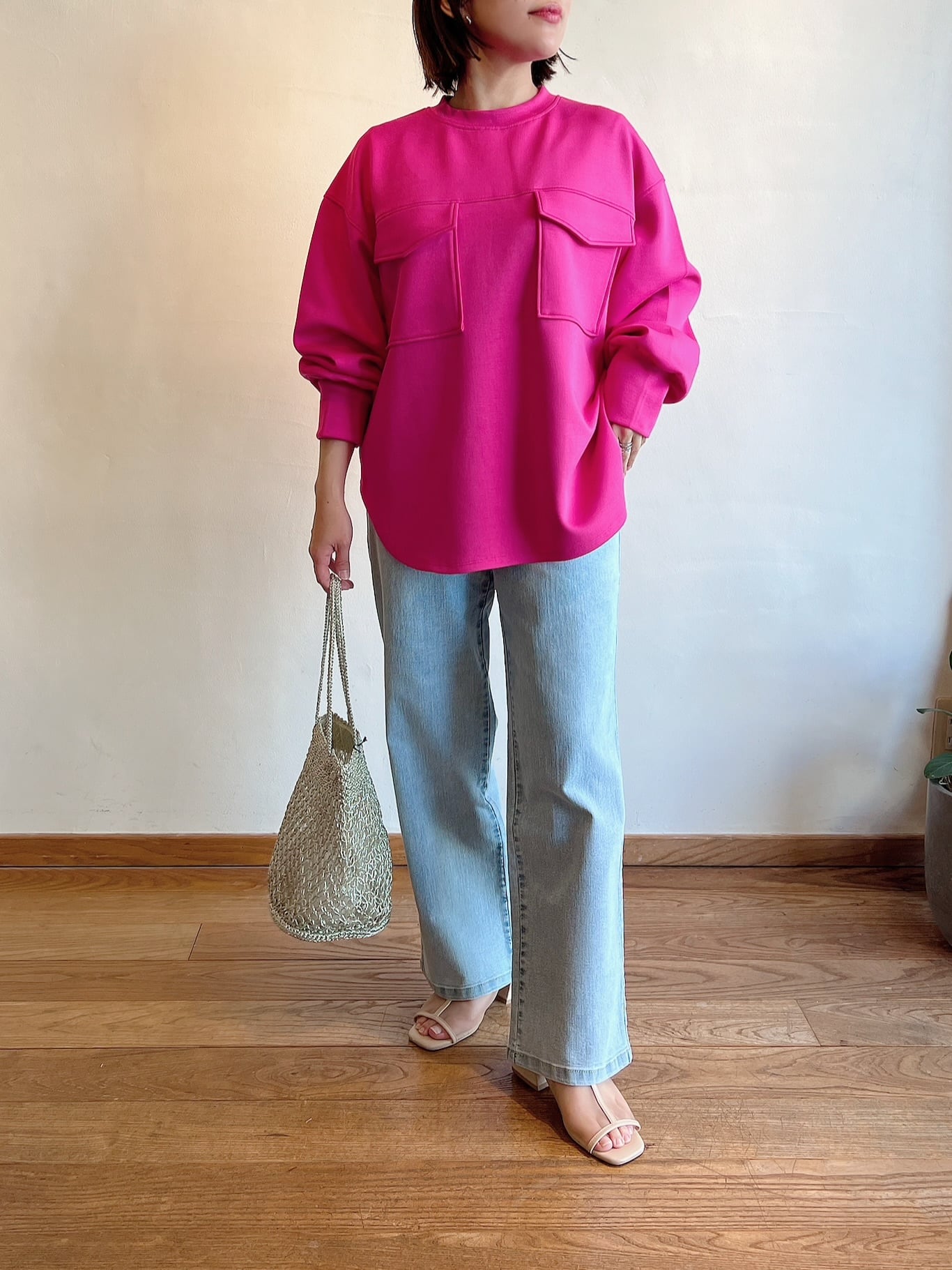 鮮やかなピンクは着るだけで気分が上がる春らしい華やかなコーデが完成◎オフホワイトは着回し抜群!