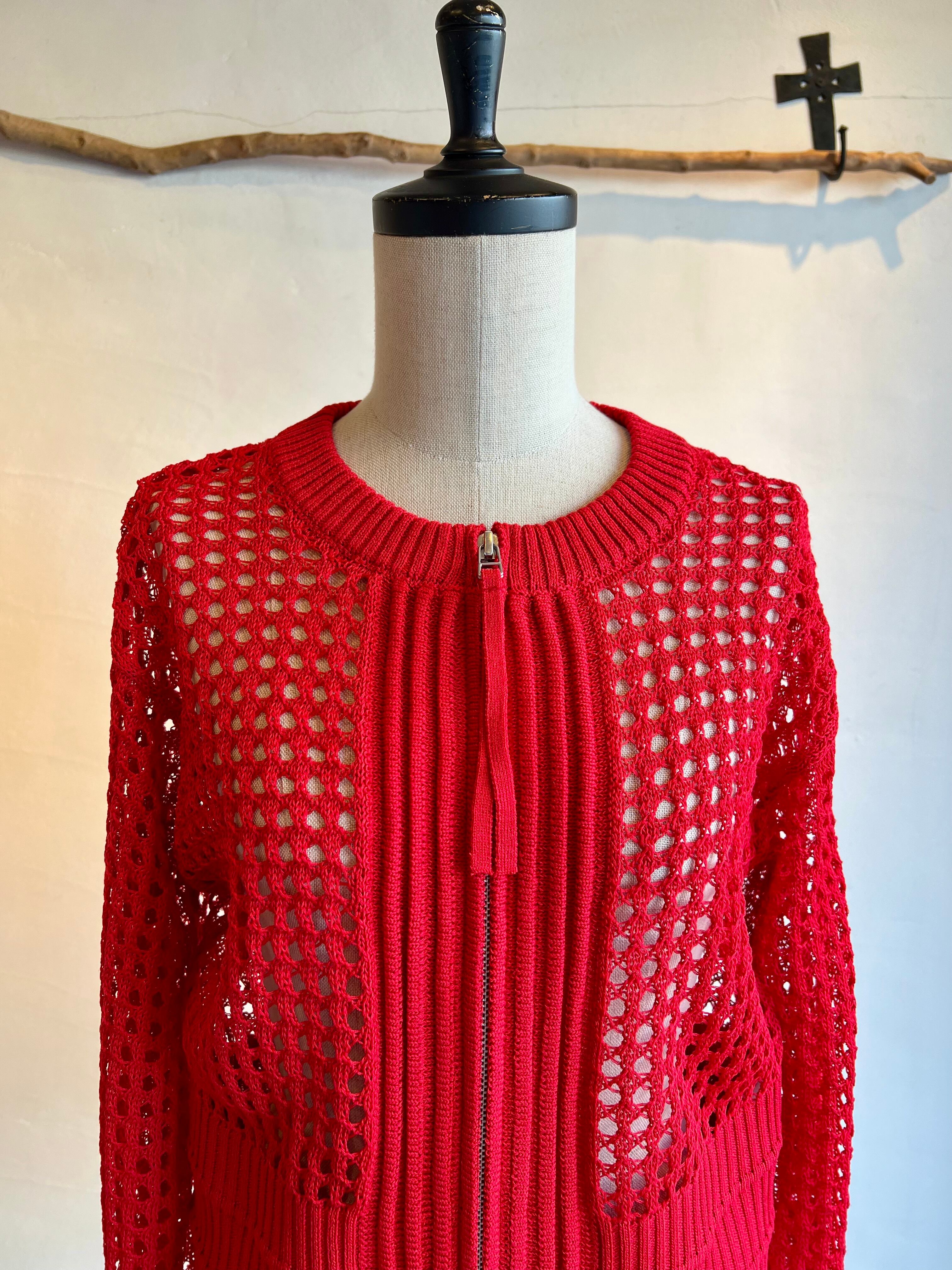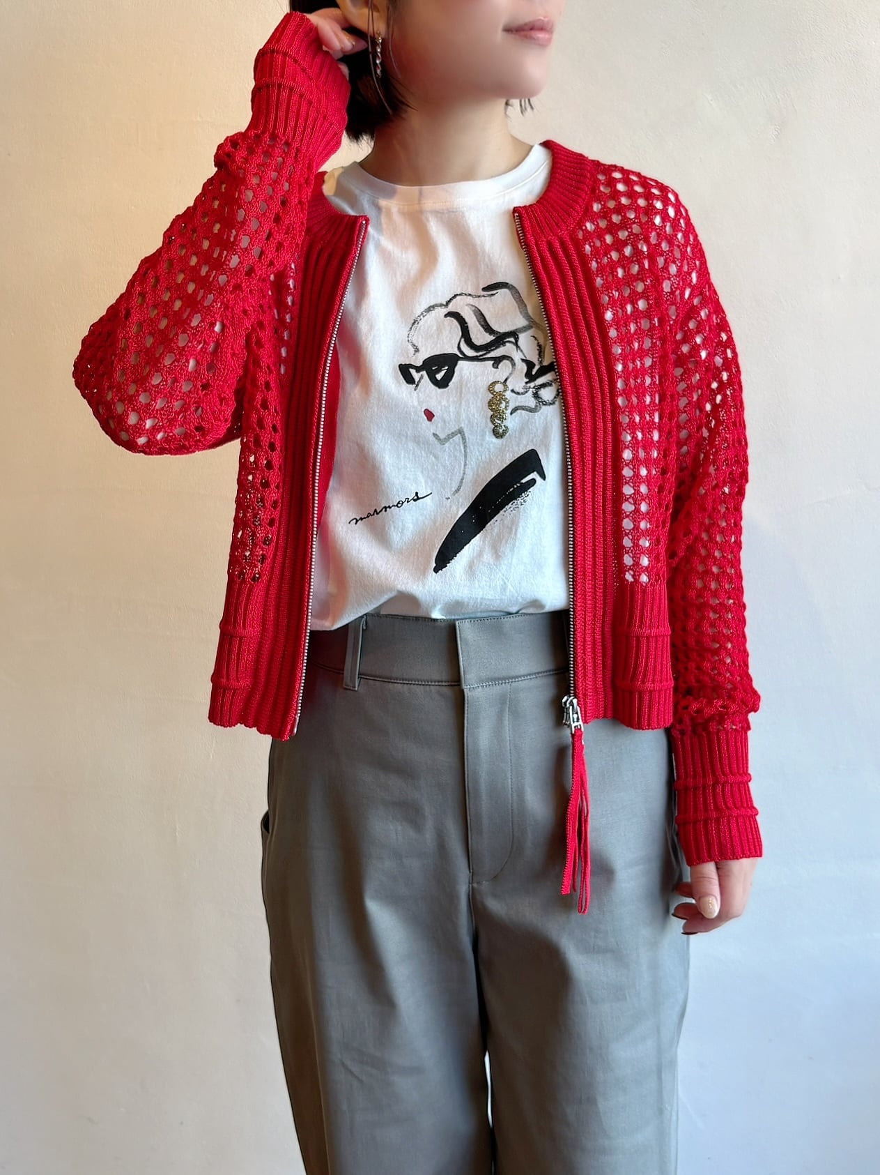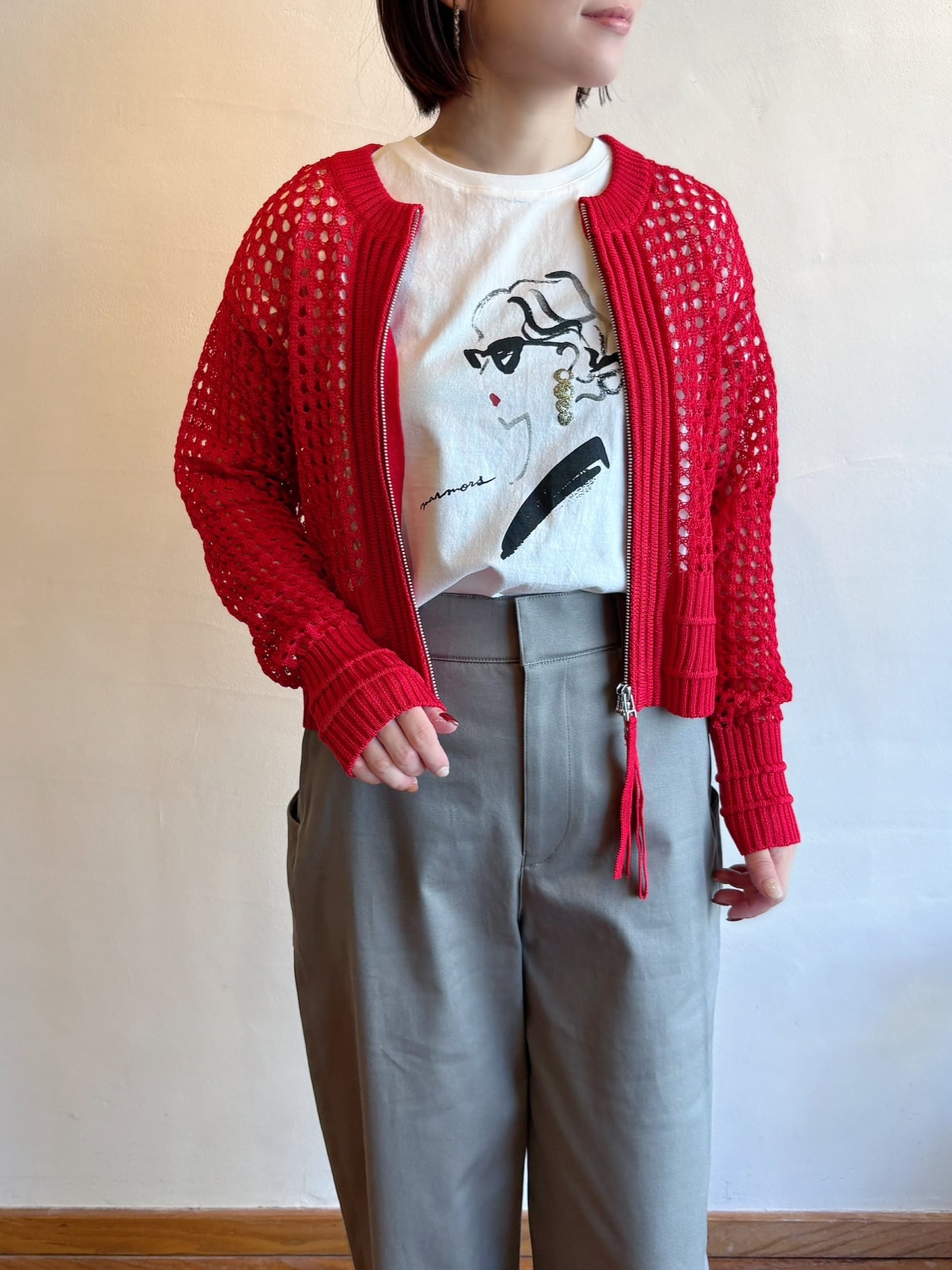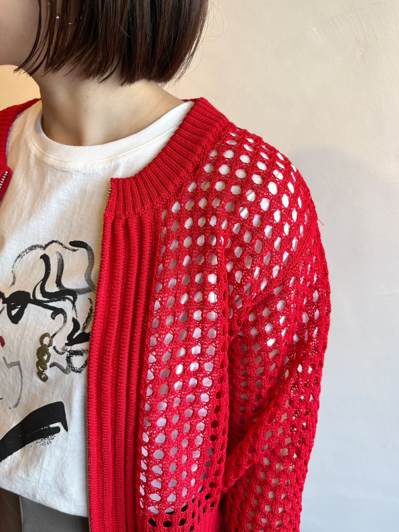 程よい透け感がかわいいメッシュ素材のジップカーディガン。Tシャツにさっと羽織るだけで一気に春らしいスタイリングに。コンパクトな丈感なのでワイドパンツやスカートともバランスよく着られます◎暑くなりすぎないメッシュ素材はこれからの季節にもぴったり。シンプルコーデにプラスするだけで程よい透け感がかわいいメッシュ素材のジップカーディガン。Tシャツにさっと羽織るだけで一気に春らしいスタイリングに。コンパクトな丈感なのでワイドパンツやスカートともバランスよく着られます◎暑くなりすぎないメッシュ素材はこれからの季節にもぴったり。シンプルコーデにプラスするだけでぐっとおしゃれ見えする一枚です。