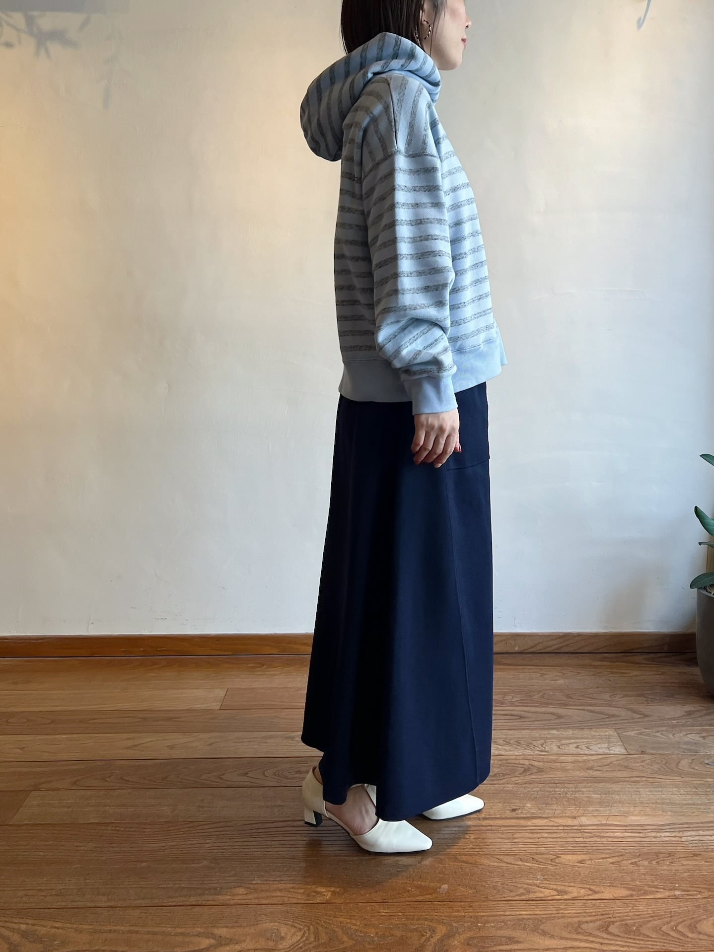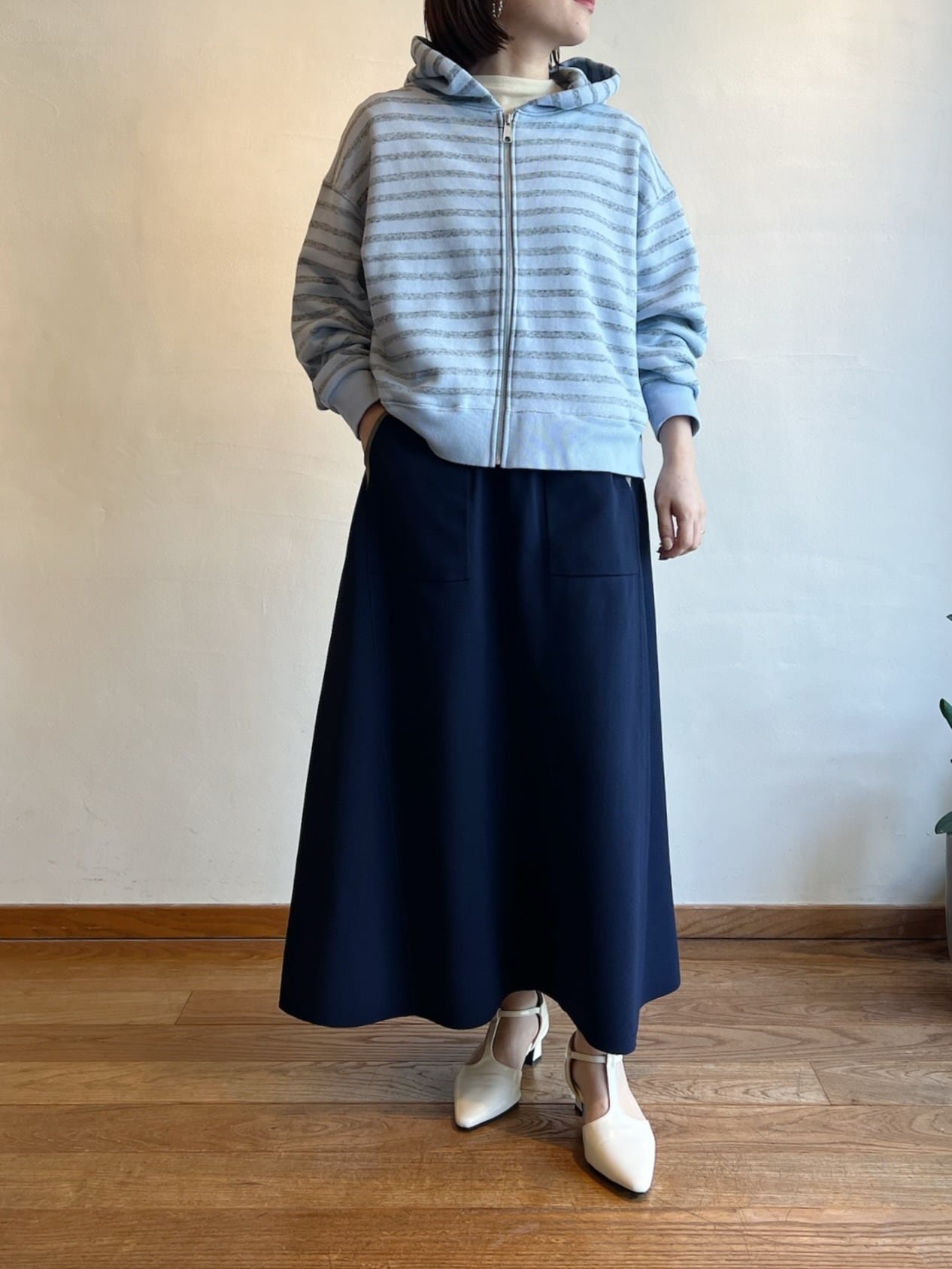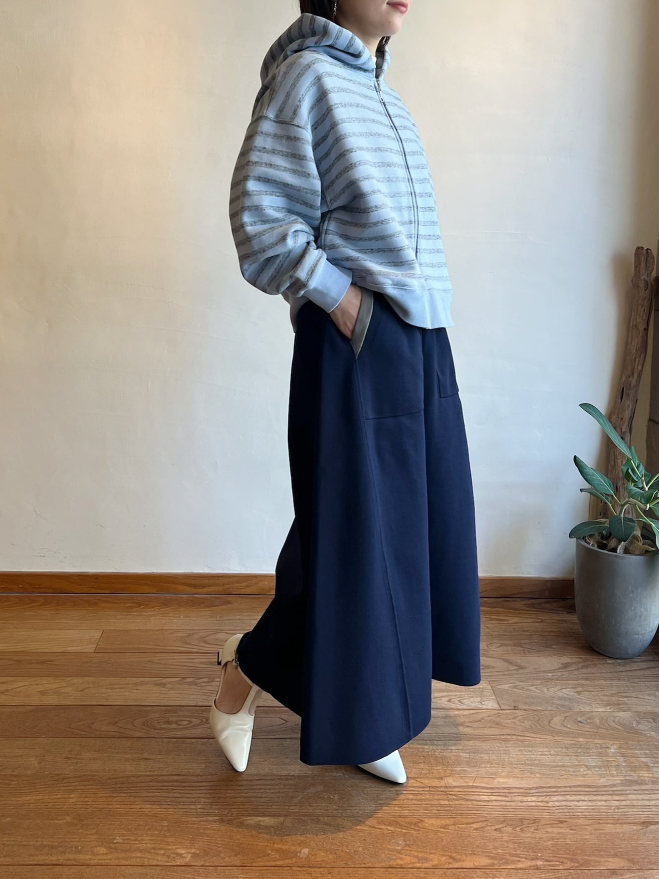 着丈やや短め、身幅やや広めのバランスの取りやすいシルエットで、スカートとのスタイリングはもちろんのこと、ワイドパンツなど様々なボトムスと合わせやすいです。