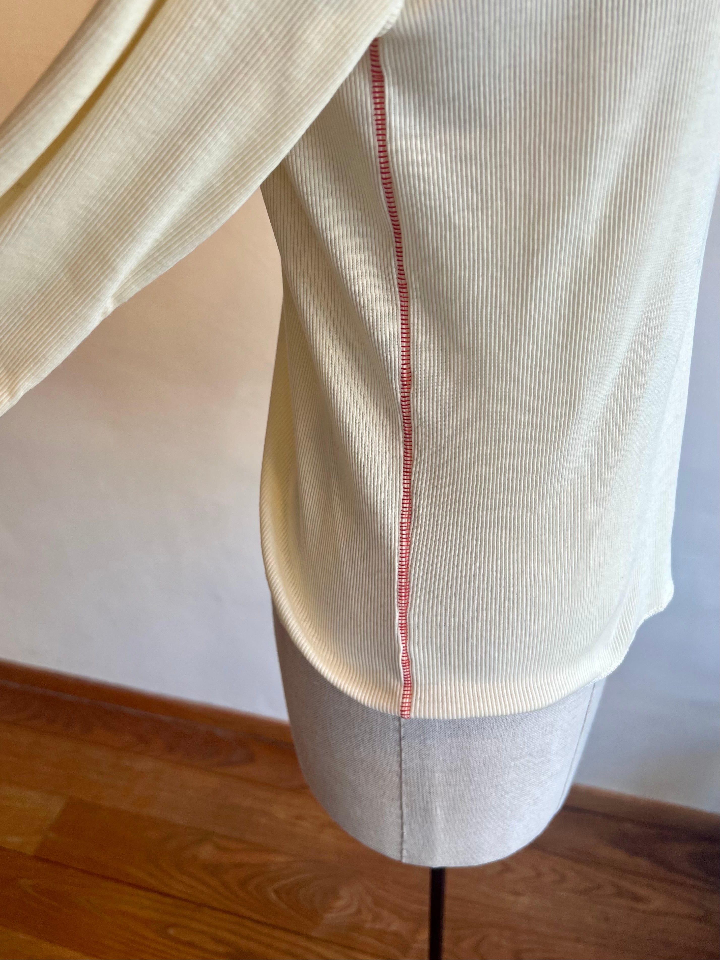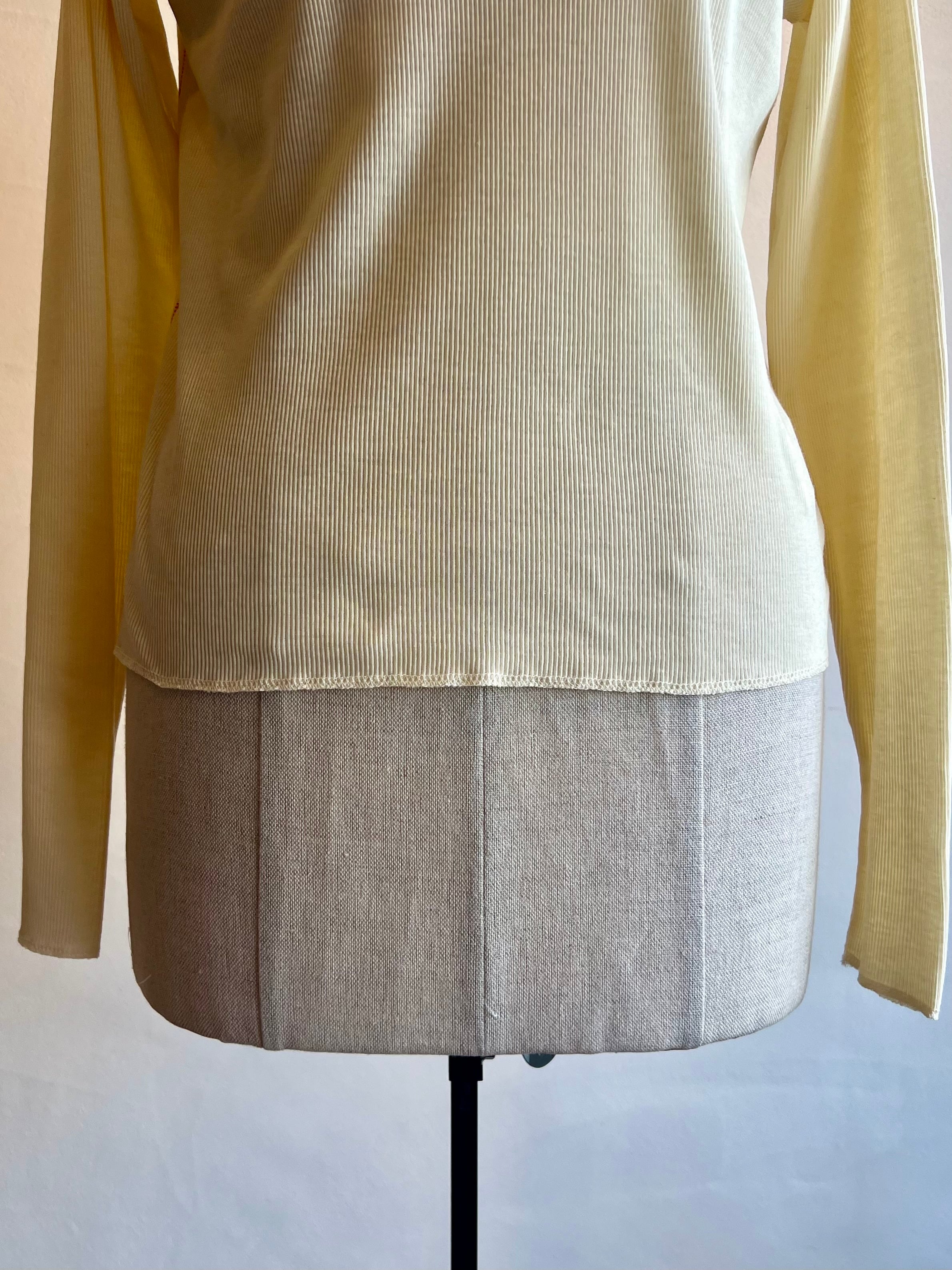 MEYAMEのソフトリブシリーズは、コットンと再生ポリエステルを組み合わせた柔らかで伸びにくいリブ生地で作られています。肩と脇の縫い目がアクセントになり、一枚で着たときも様になります。お家で洗濯も可能で、重ね着や主役としても活躍します。他にも型違いで展開しています。