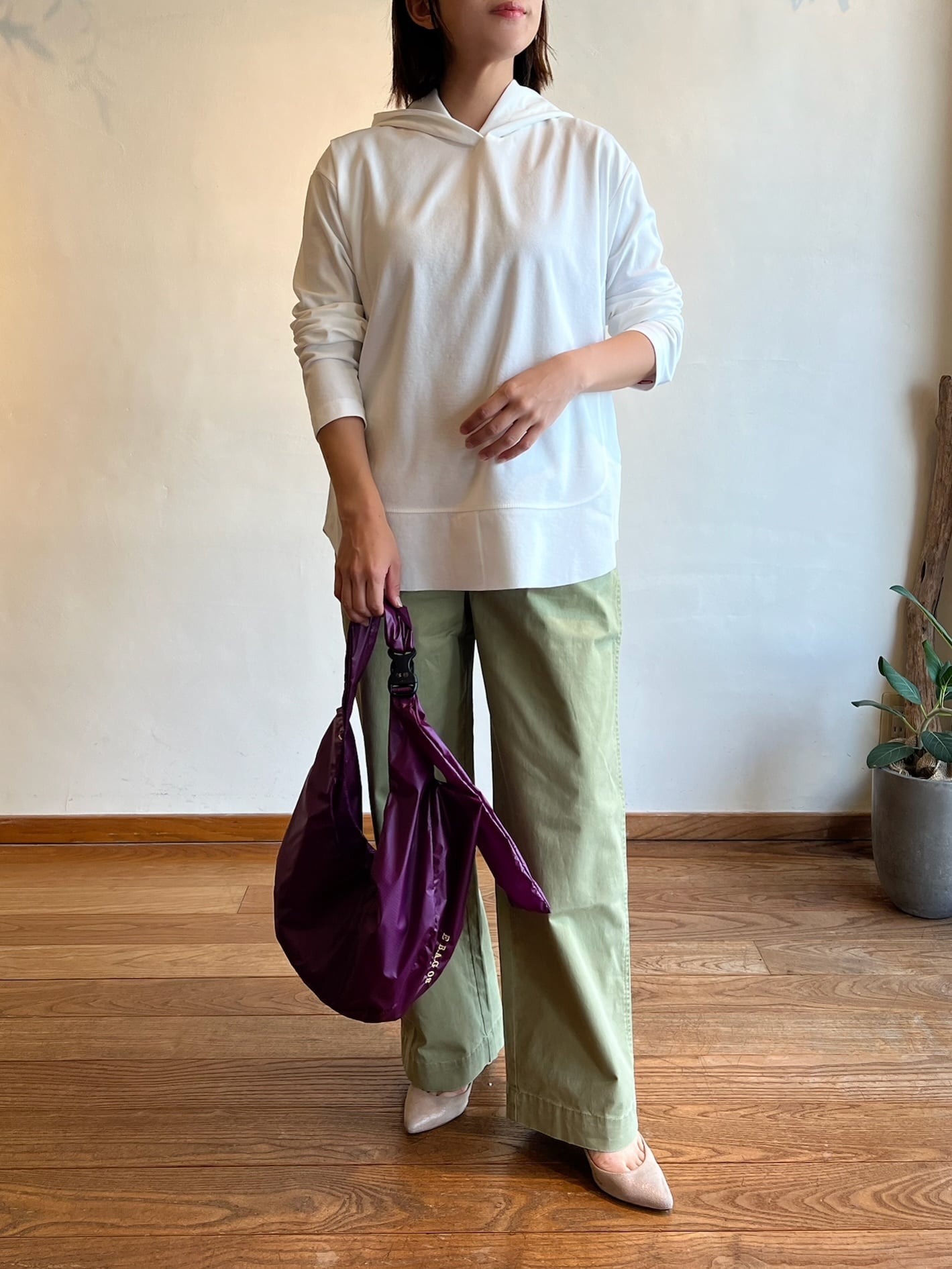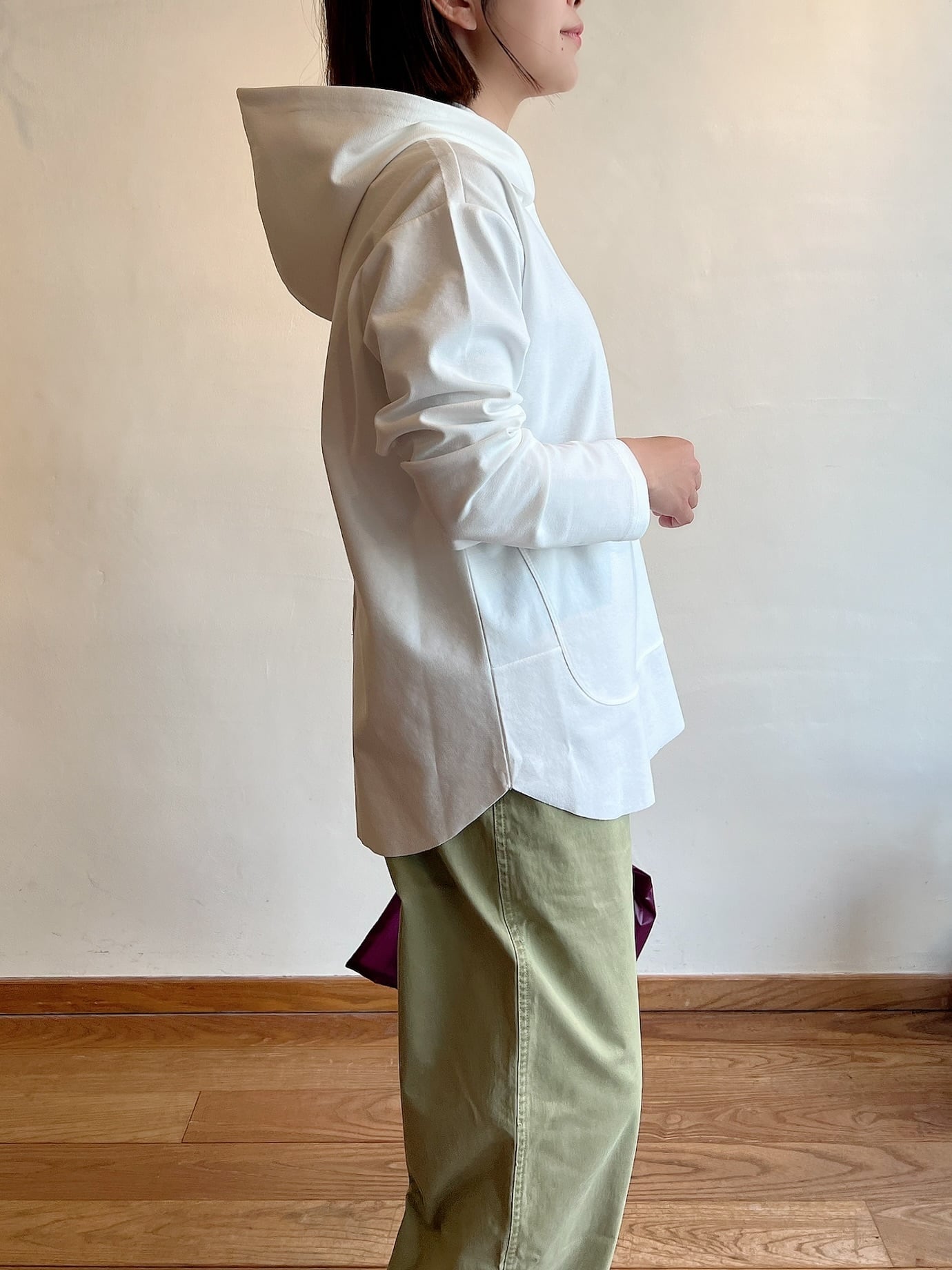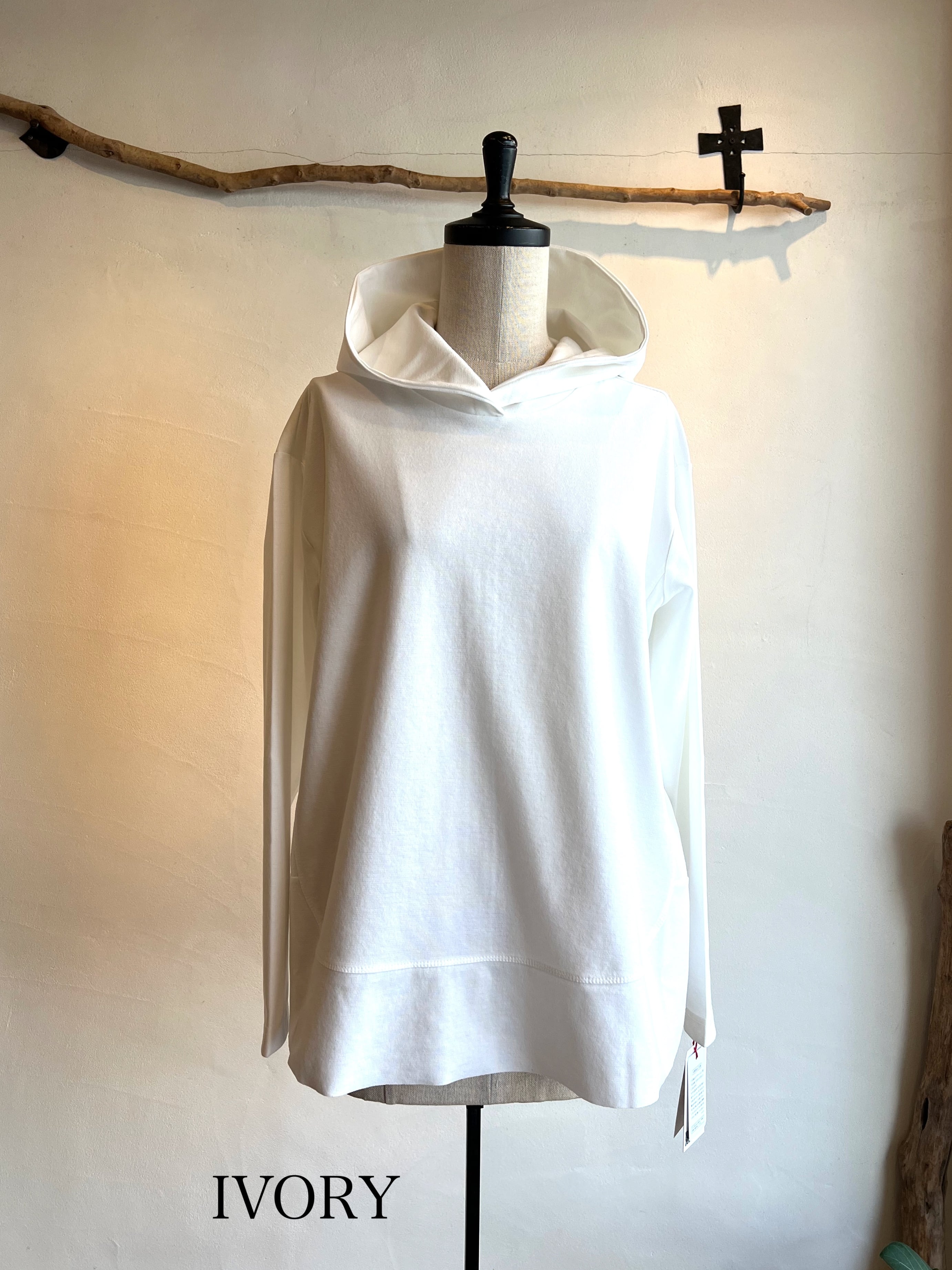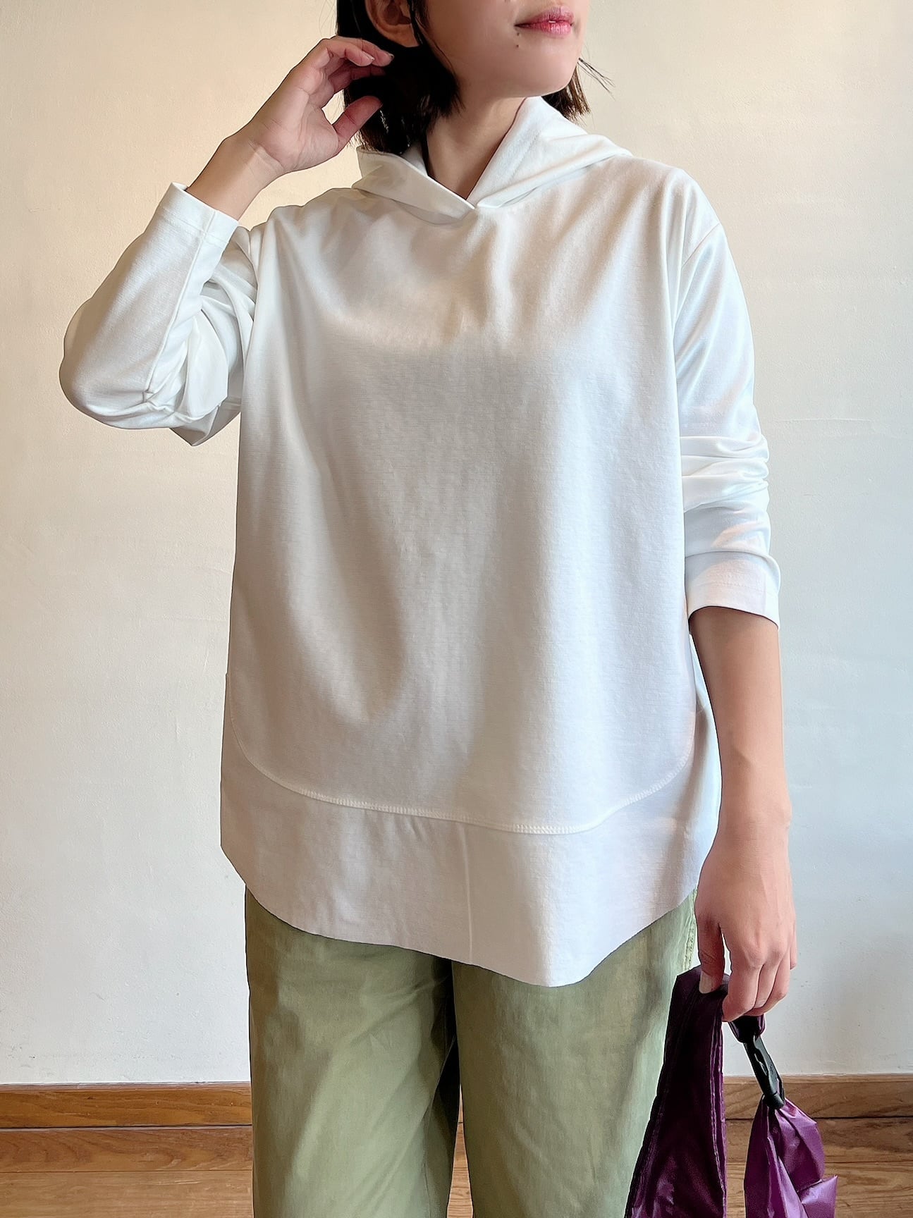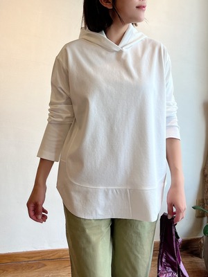さらっとした肌触りで、軽やかに着られるフーディープルオーバー。