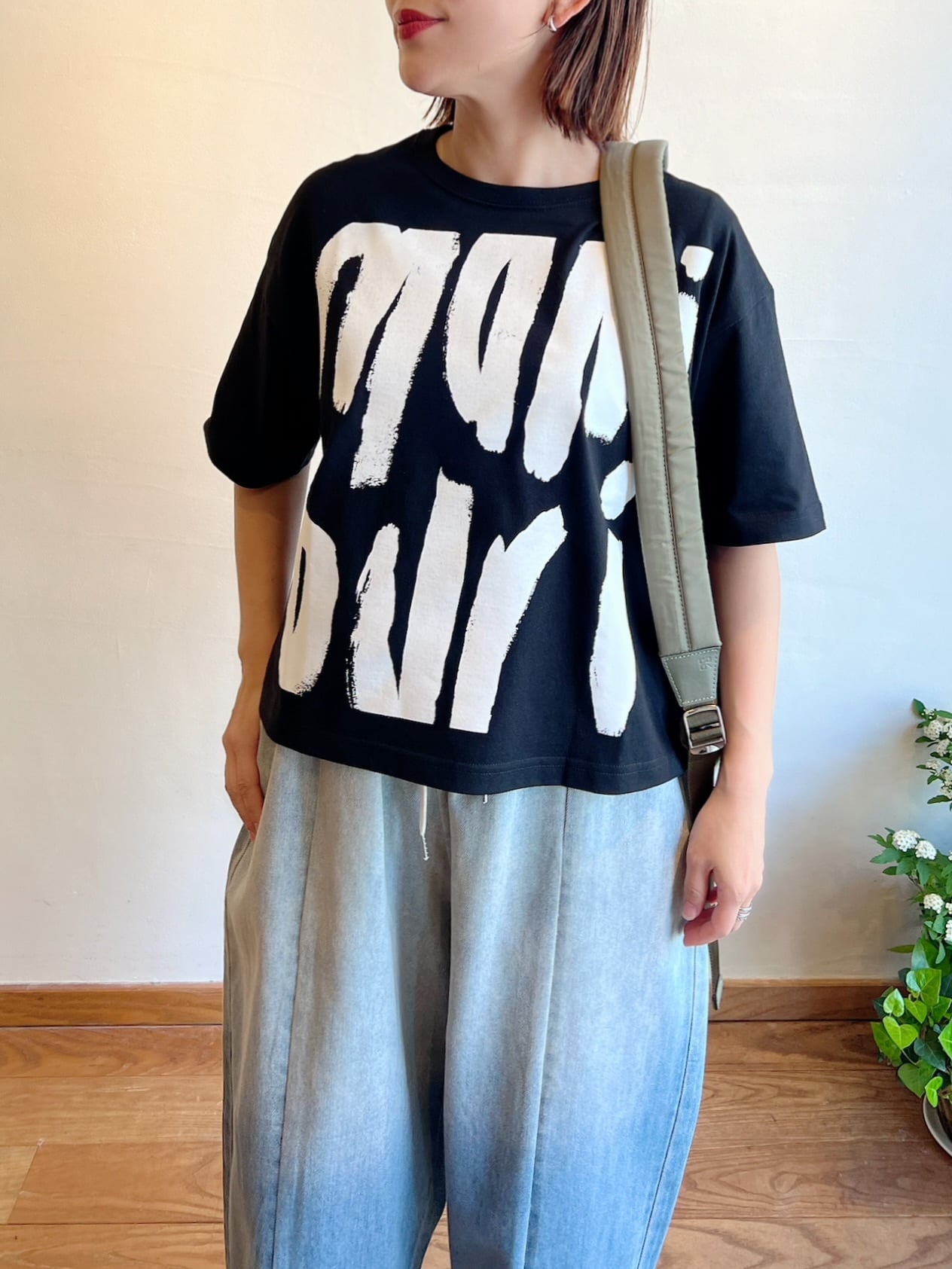ちょっとした遊び心を取り入れたロゴ x 手描きのキュートな絵が今年らしいコンパクトなアートTシャツ。リラックスしたシルエットはさまざまなスタイリングにマッチし、おしゃれな印象を与えてくれます。日常の着こなしからちょっとしたお出かけ、旅行などでも活躍してくれそう。ショート丈Tシャツは着るだけでスタイルアップ間違いなし。