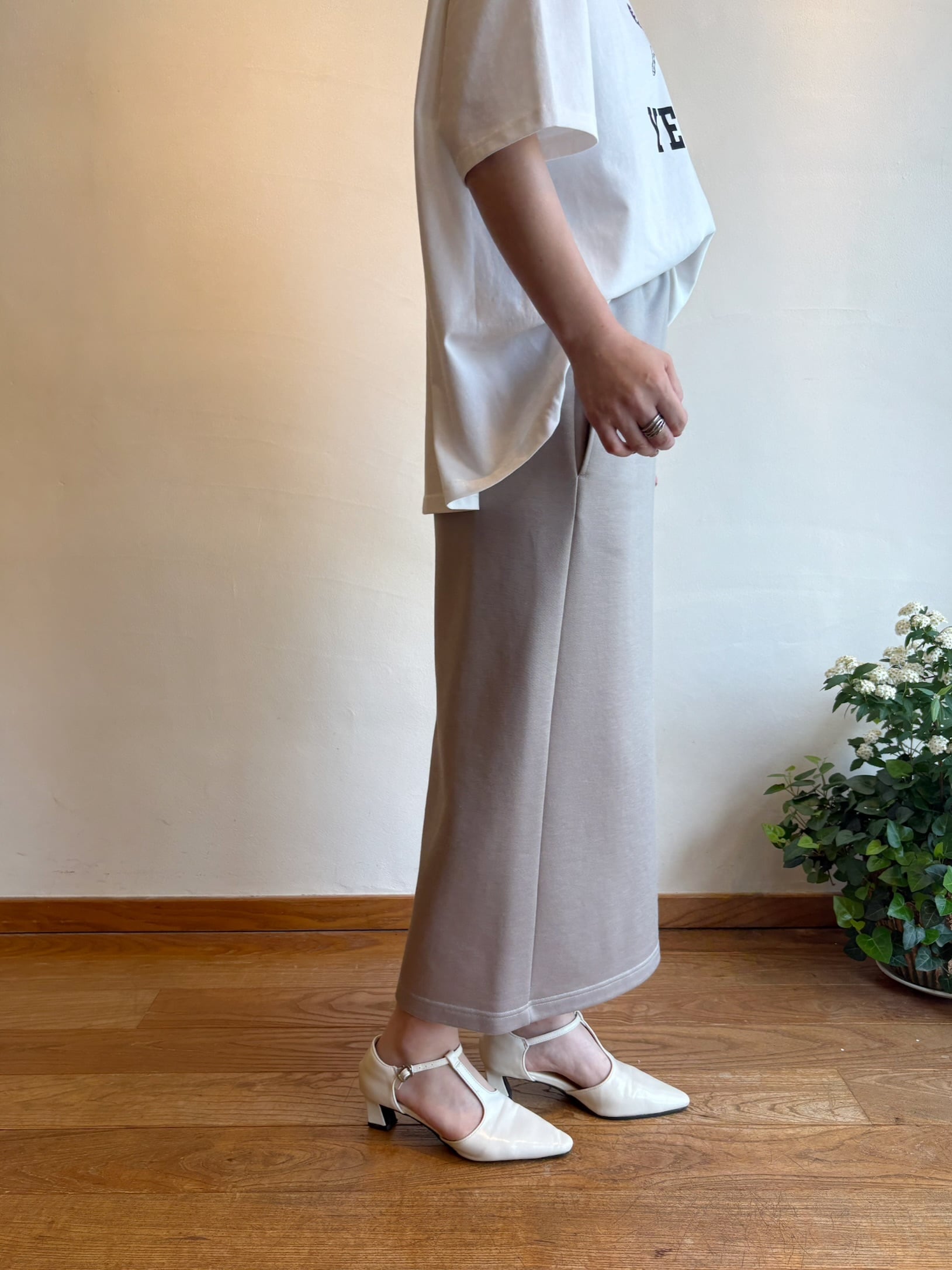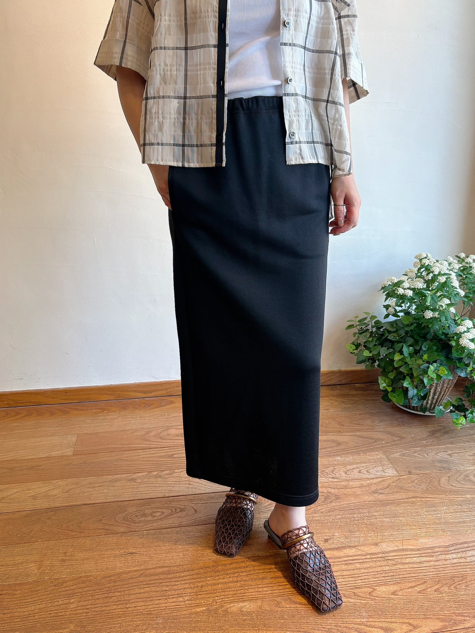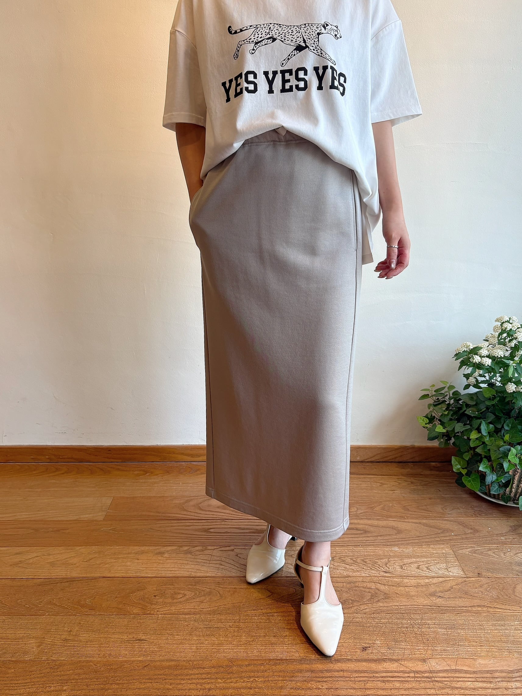 上品な光沢感が魅力の、スウェット素材タイトスカート。ラフな着心地でありながら、きれいめな印象に仕上がる一枚です。ポリエステル57%、綿43%のバランスの良い素材で、程よいハリとやわらかさを兼ね備え、シルエットをきれいにキープ。伸びのある生地で動きやすく、デイリー使いにもストレスフリー◎すっきりとしたラインが縦の印象を強調し、スタイルアップも叶えます。カジュアルにもきれいめにも馴染む、着回し力の高いアイテムです。