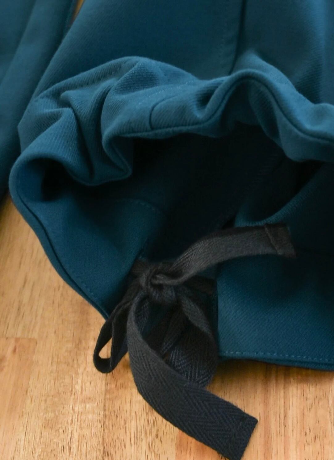 きれいめカーブパンツでスタイリッシュな着こなしもよし、裾内側のリボンを結んで、丸みのあるシルエットで履くのもトレンド感抜群。裾のリボンを結べば2styleで楽しめます。脚長&スッキリ細見え効果も◎シワになりにくく、膨らみのある上品な素材でヒールを合わせてキレイめスタイルもおすすめです。