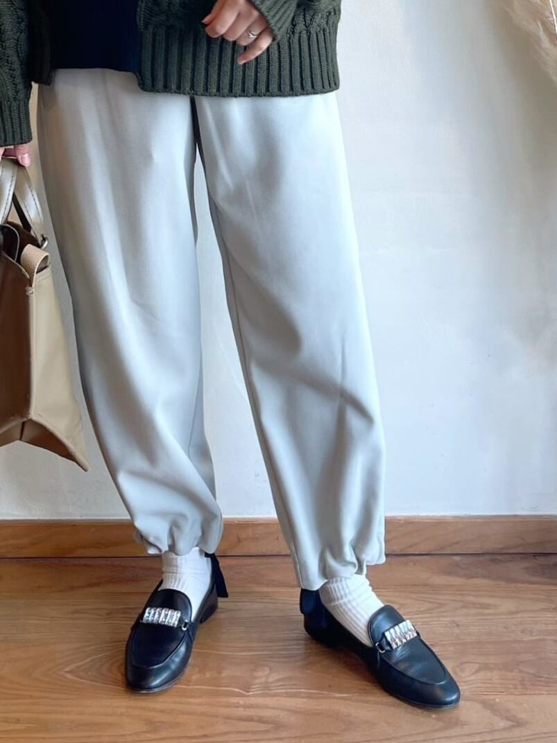 ストレッチのある程よい肉感のツイルを使用したコクーンシルエットパンツ。
