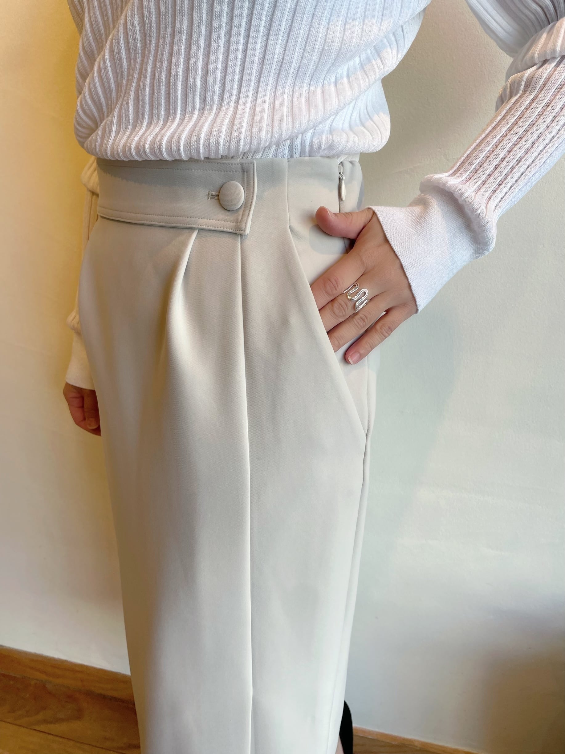 しわになりづらくウォッシャブルで2WAYストレッチなのも嬉しいポイントです。