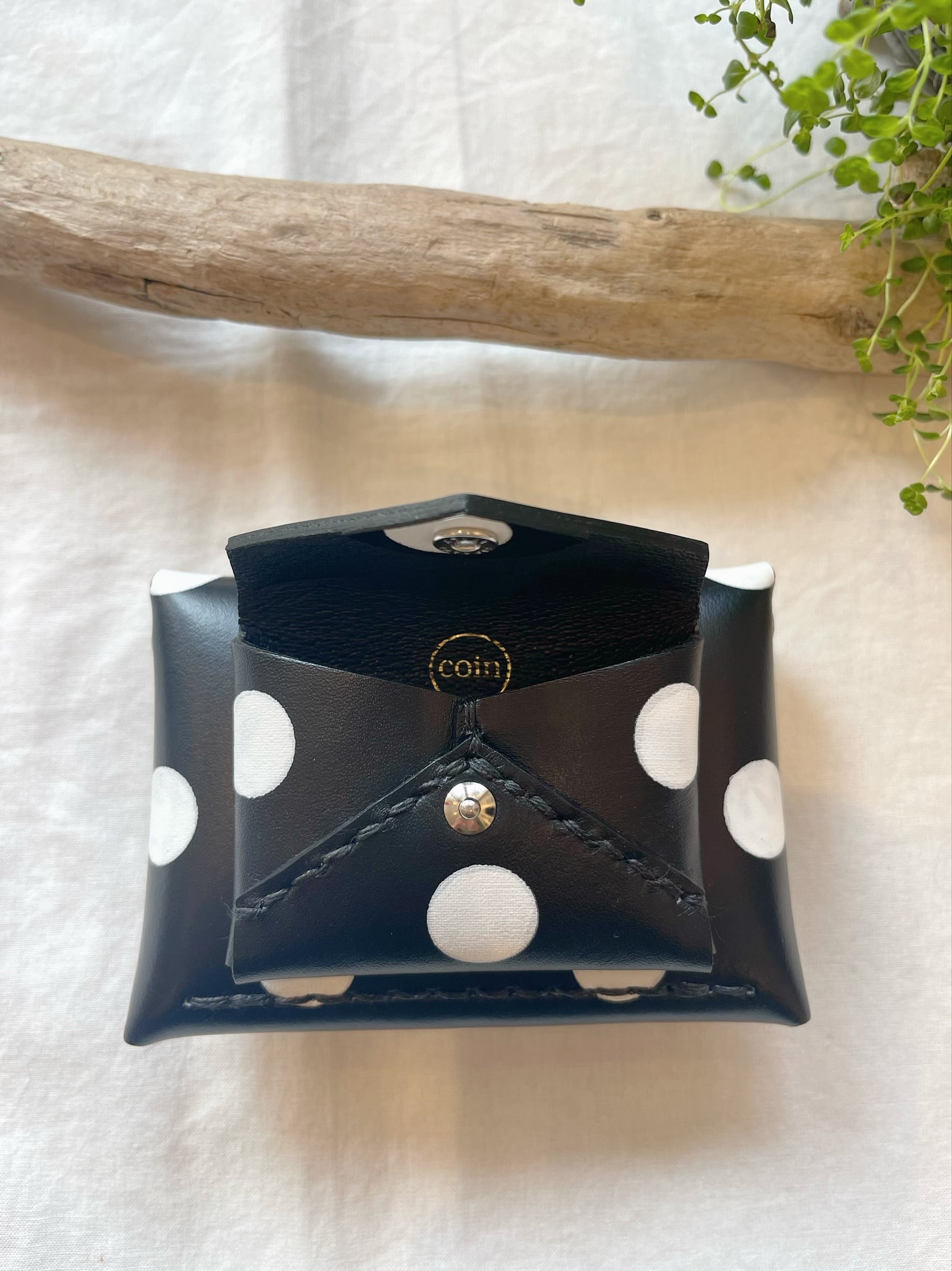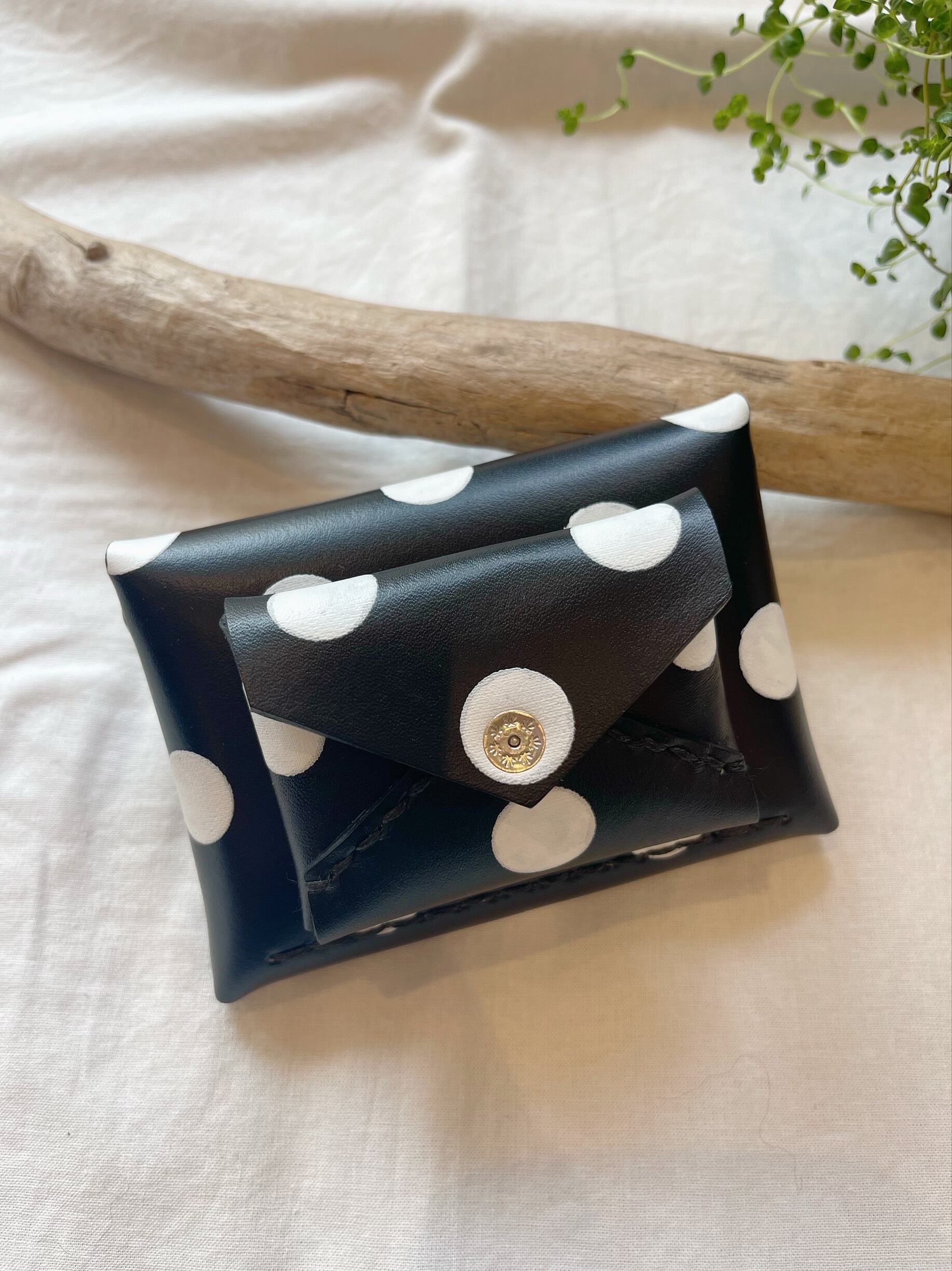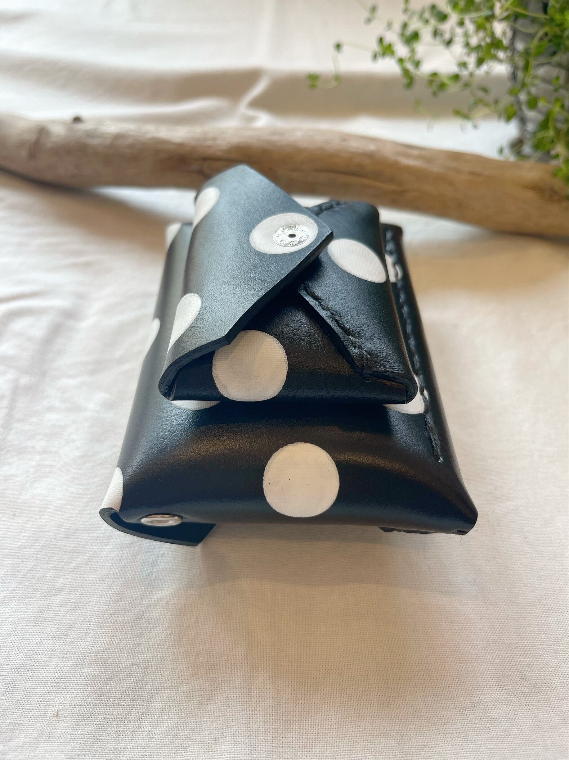 SOLD OUT 黒の牛革に白の水玉を際立たせた革になります。