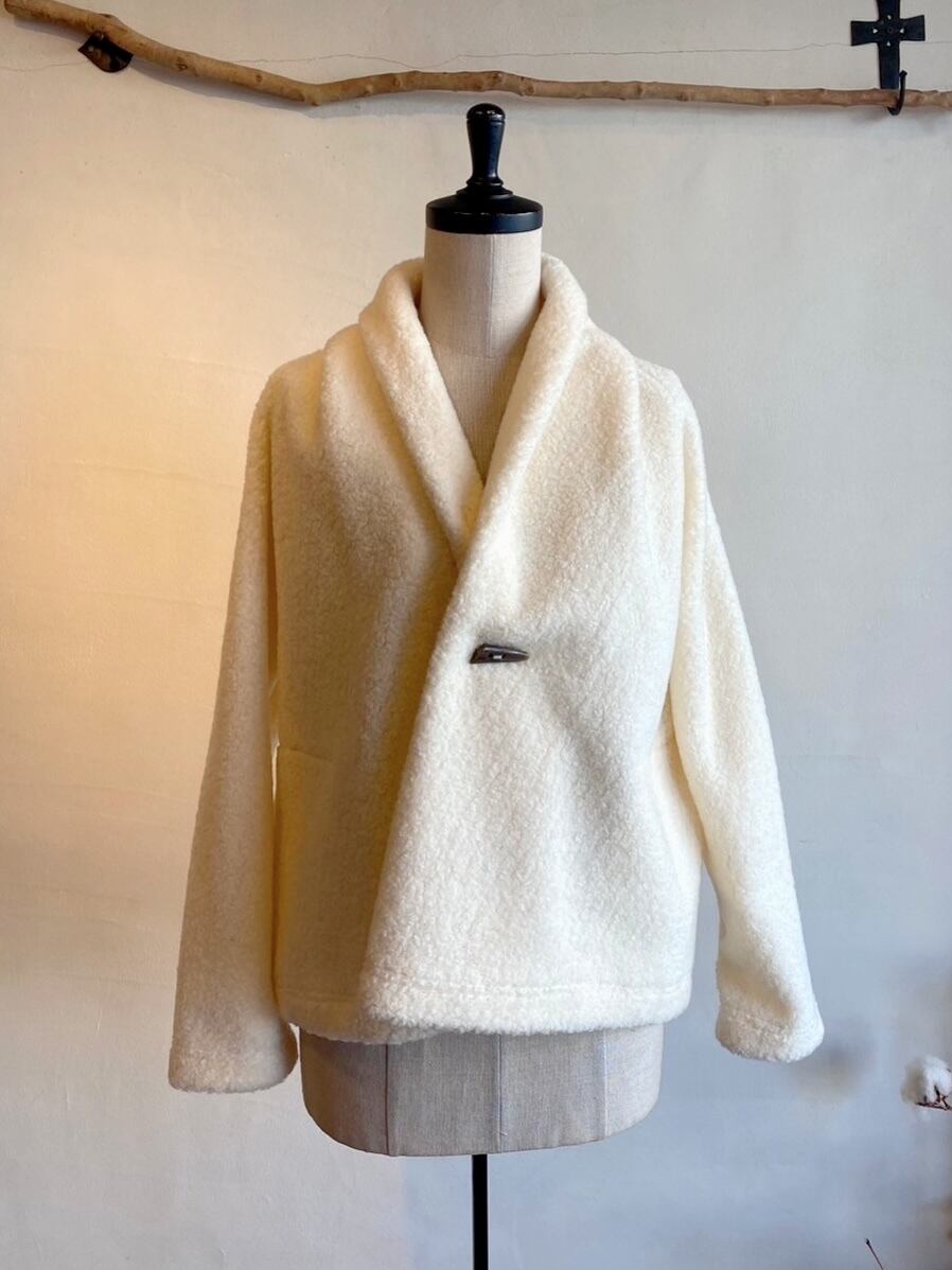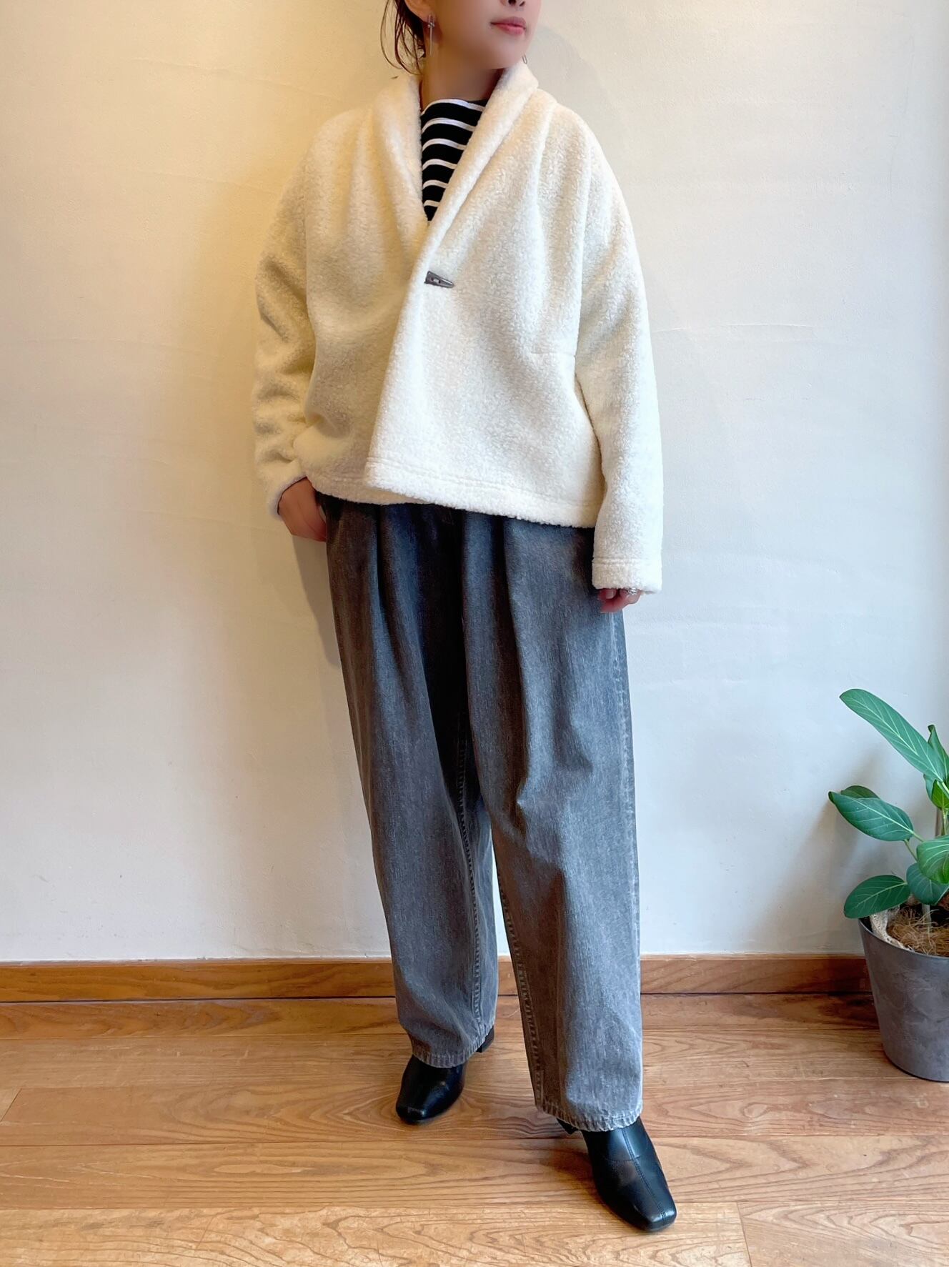 昨年も好評でした、SI-HIRAI(スーヒライ)ウールショートローブが再登場!昨年にくらべ、生地感がボリュームアップしてより暖かさを感じて頂けます。ふわふわもこもこのウール素材を大人っぽいジレに仕立て、コーディネートにアクセントをプラス。ほどよいバランス感覚で季節を遊ぶ、遊び心あふれるアイテムになっています。ダッフルコートなどでよく見かけるトグルボタンが付き、雰囲気たっぷりのあしらいに。ゆったりサイズでさりげなく身体をあたためてくれます。アウターとしても、軽い羽織りとしても、インナージャケットとしても着用可能です。