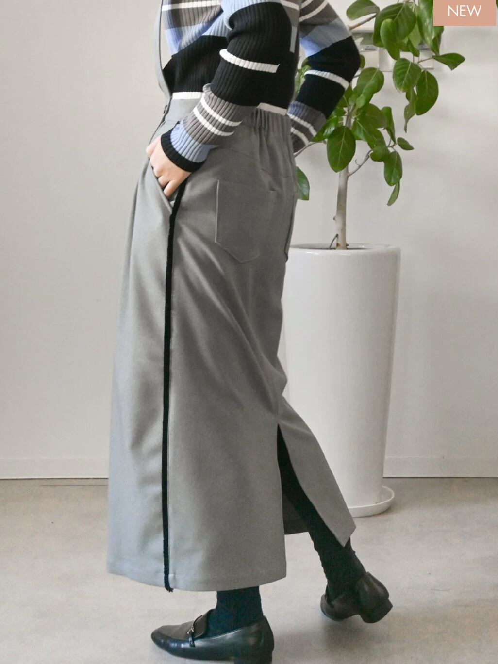 サイドのフリンジのラインがアクセントとなるので、大人カジュアルに着ていただけます。2WAY仕様なので、トップスのアイテム次第で様々なコーデを組める優秀アイテムです。