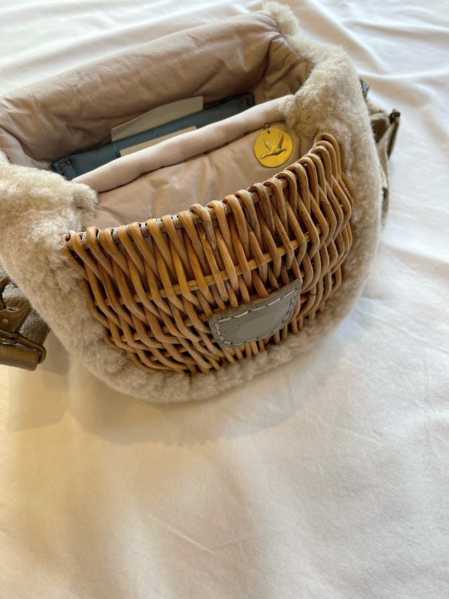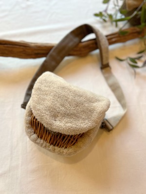 毛100%ボアを紅籐と組み合わせました。科学染料を一切使用していない自然環境に配慮した天然色です。持っているだけで、暖かくなる短めのボディバッグです。